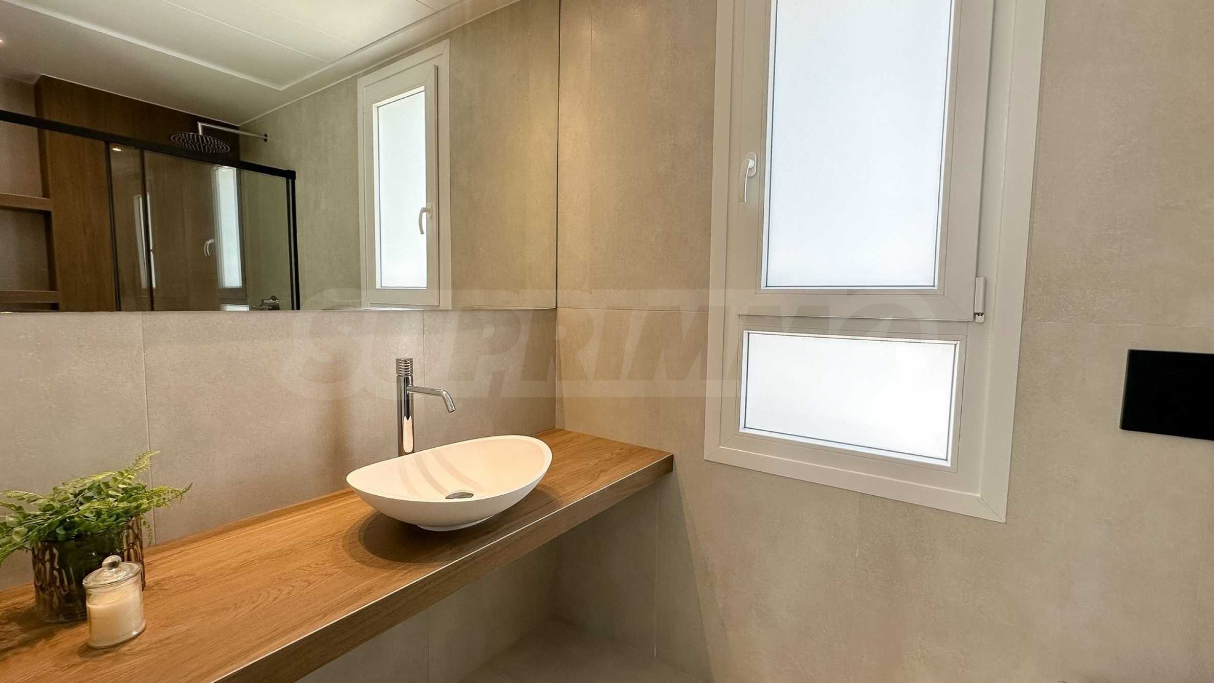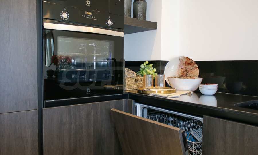 Nieruchomość jest oddawana w pełni „pod klucz” – zamontowano drzwi wejściowe i wewnętrzne, podłogi, stolarkę PCV, wyposażoną kuchnię i łazienki. Przestrzeń kuchenna wypełniona jest ciemnym drewnem, a sprzęt AGD w kolorze czarnym – eleganckie połączenie, które pozwala na łatwą personalizację wnętrza. Łazienki zaprojektowano jako osobistą oazę relaksu – z kabinami prysznicowymi oddzielonymi szklanymi ściankami działowymi, dekoracyjnymi, tłoczonymi płytkami i nowoczesnymi umywalkami, które tworzą wrażenie finezji i harmonii.