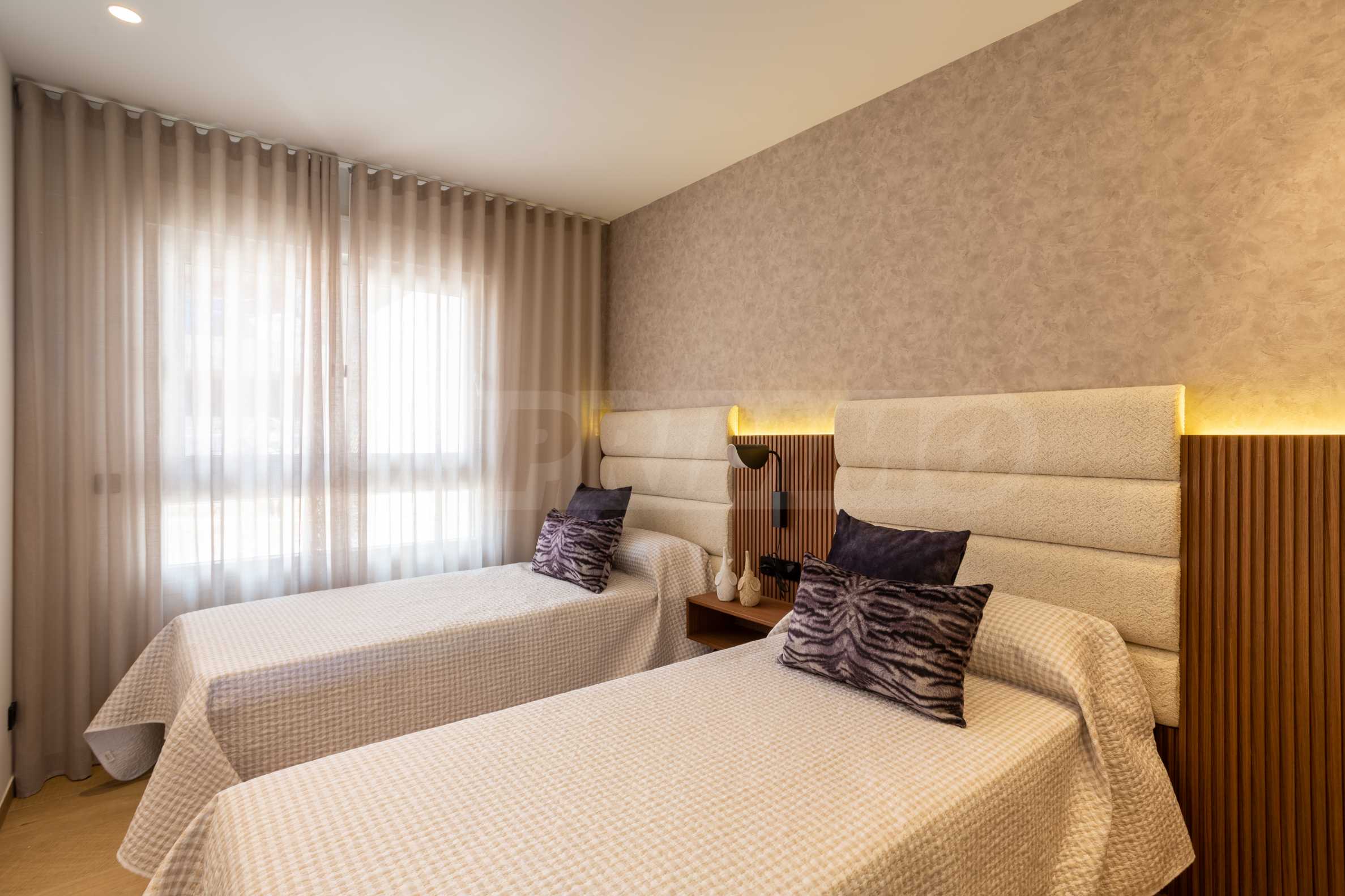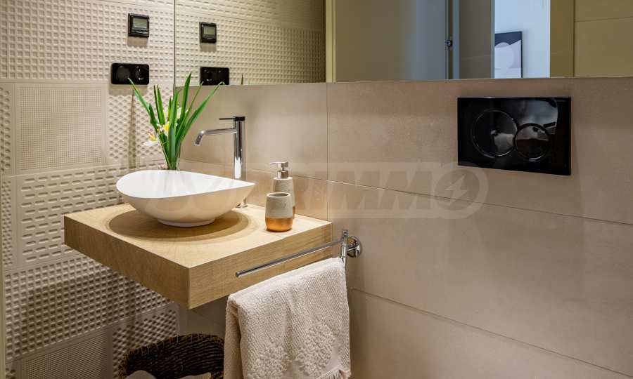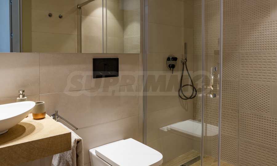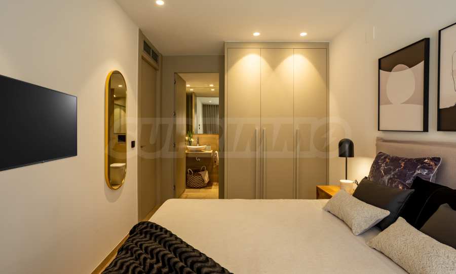 Sypialnie wyposażone są w zabudowane szafy, zapewniające łatwą organizację i wygodę, a łazienki wykończone są w najdrobniejszych szczegółach – eleganckie umywalki, lustra, kabiny prysznicowe i ogrzewanie podłogowe dla większego komfortu. Apartament jest również wyposażony w klimatyzację we wszystkich pomieszczeniach.