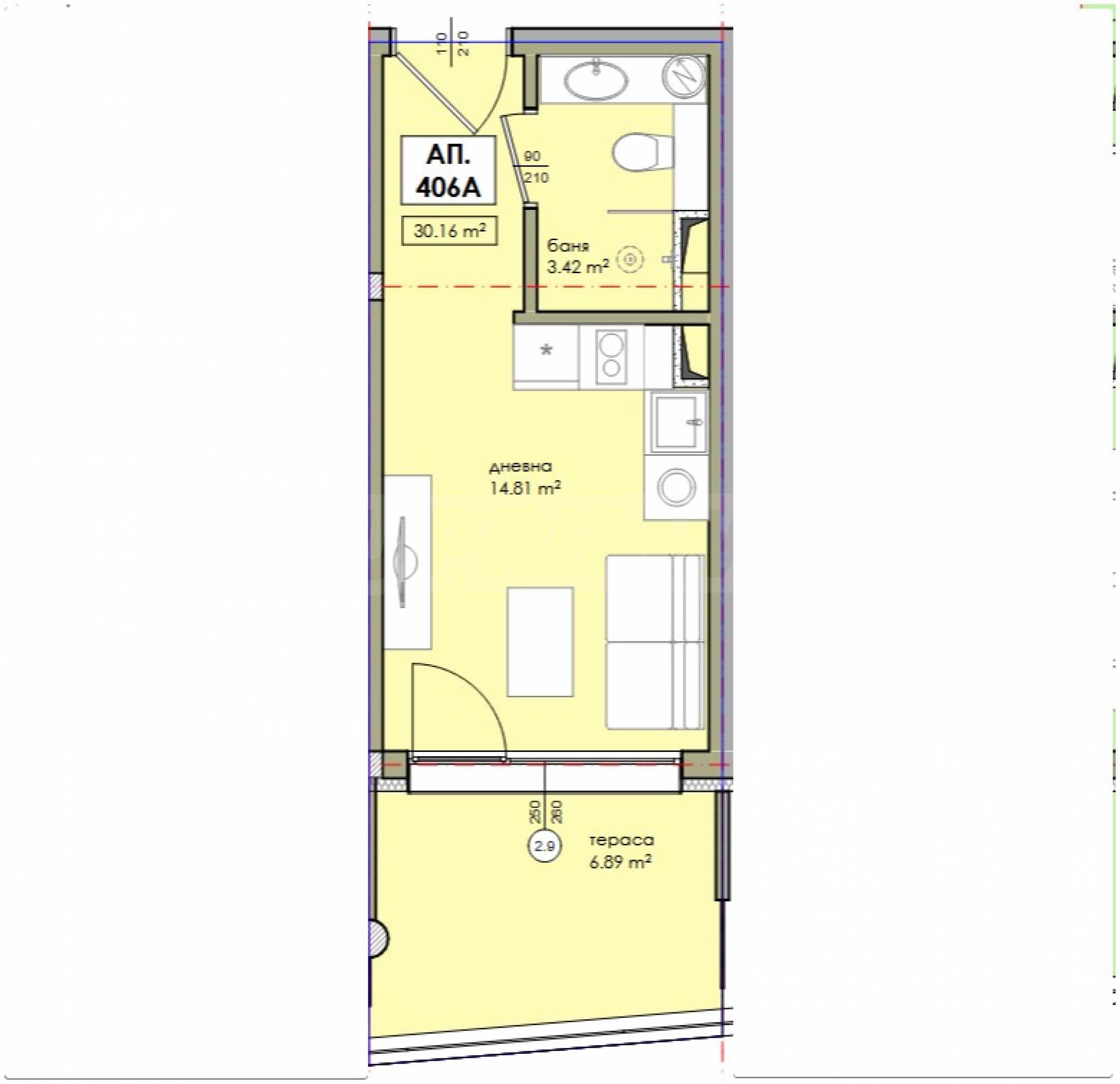 Oferujemy do sprzedaży mieszkanie jednopokojowe o powierzchni 34,57 mkw., będące częścią nowego, nowoczesnego kompleksu mieszkaniowego, zlokalizowanego w pierwszej linii brzegowej od Plaży Południowej w Nesebyrze.