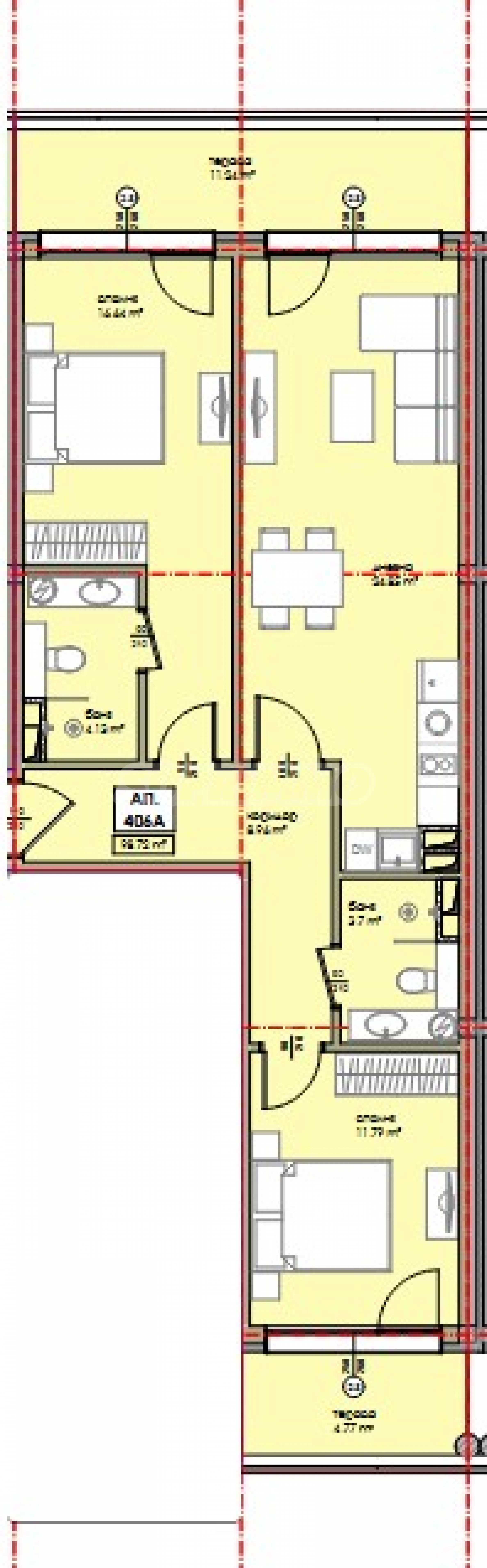 Nieruchomość o powierzchni 113,16 mkw. będzie zlokalizowana na 4 piętrze i będzie miała następujący układ: