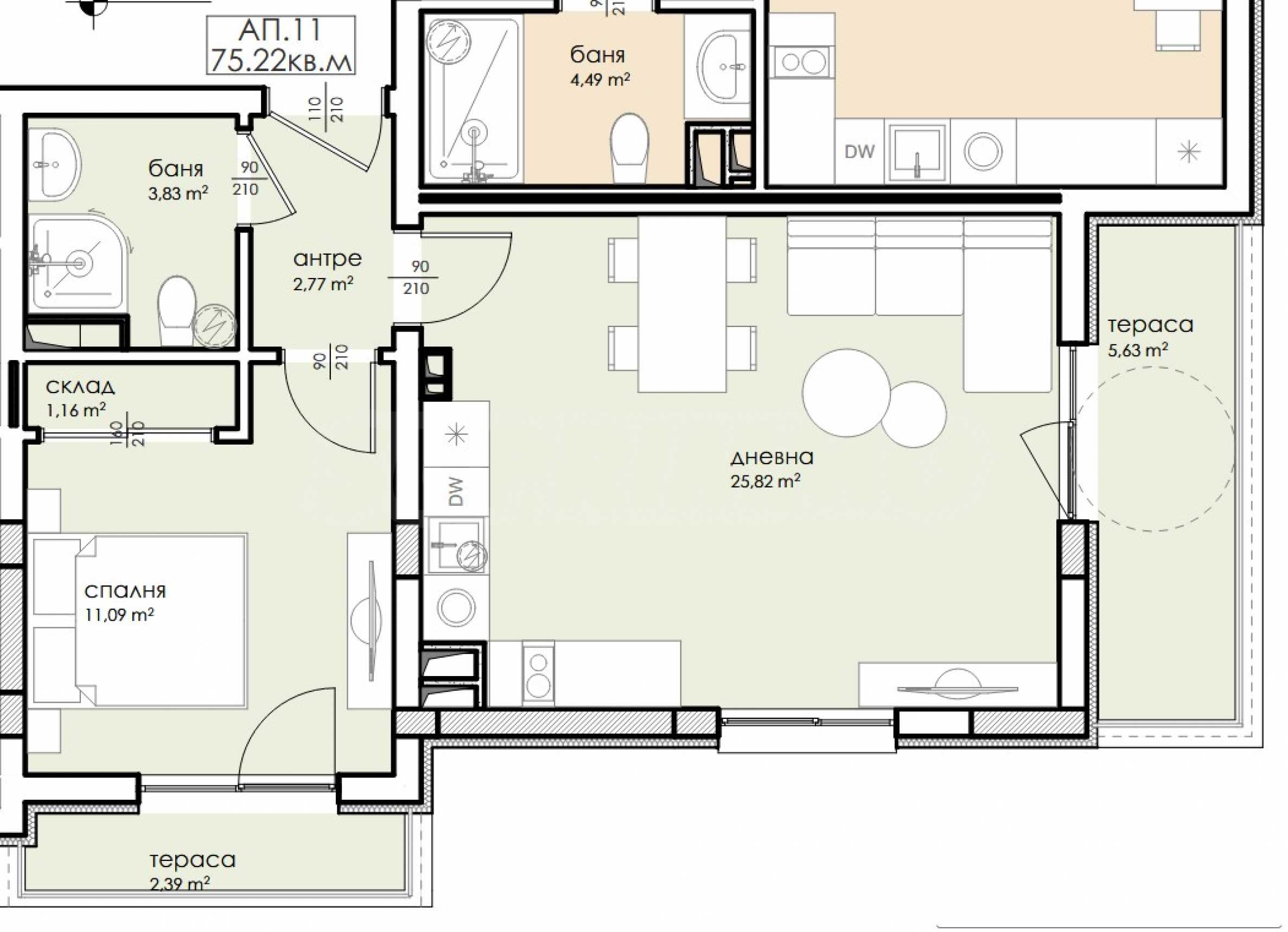 Mieszkanie wynajmowane jest w następującym stopniu wykończenia zgodnie z bułgarskim kodeksem cywilnym: