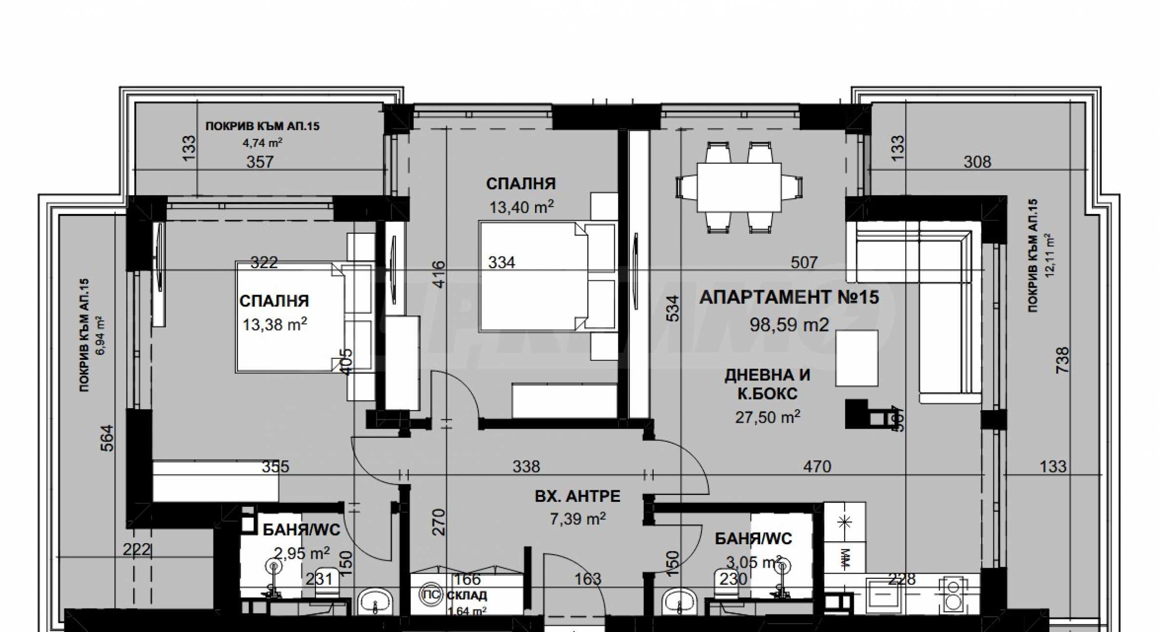 Mieszkanie jest oferowane w stanie deweloperskim zgodnym z bułgarskimi standardami budowlanymi, z tynkiem i wylewką z wysokiej jakości materiałów, ale istnieje możliwość wykończenia „pod klucz”. Nadaje się do całorocznego zamieszkania, użytku osobistego lub jako inwestycja pod wynajem.