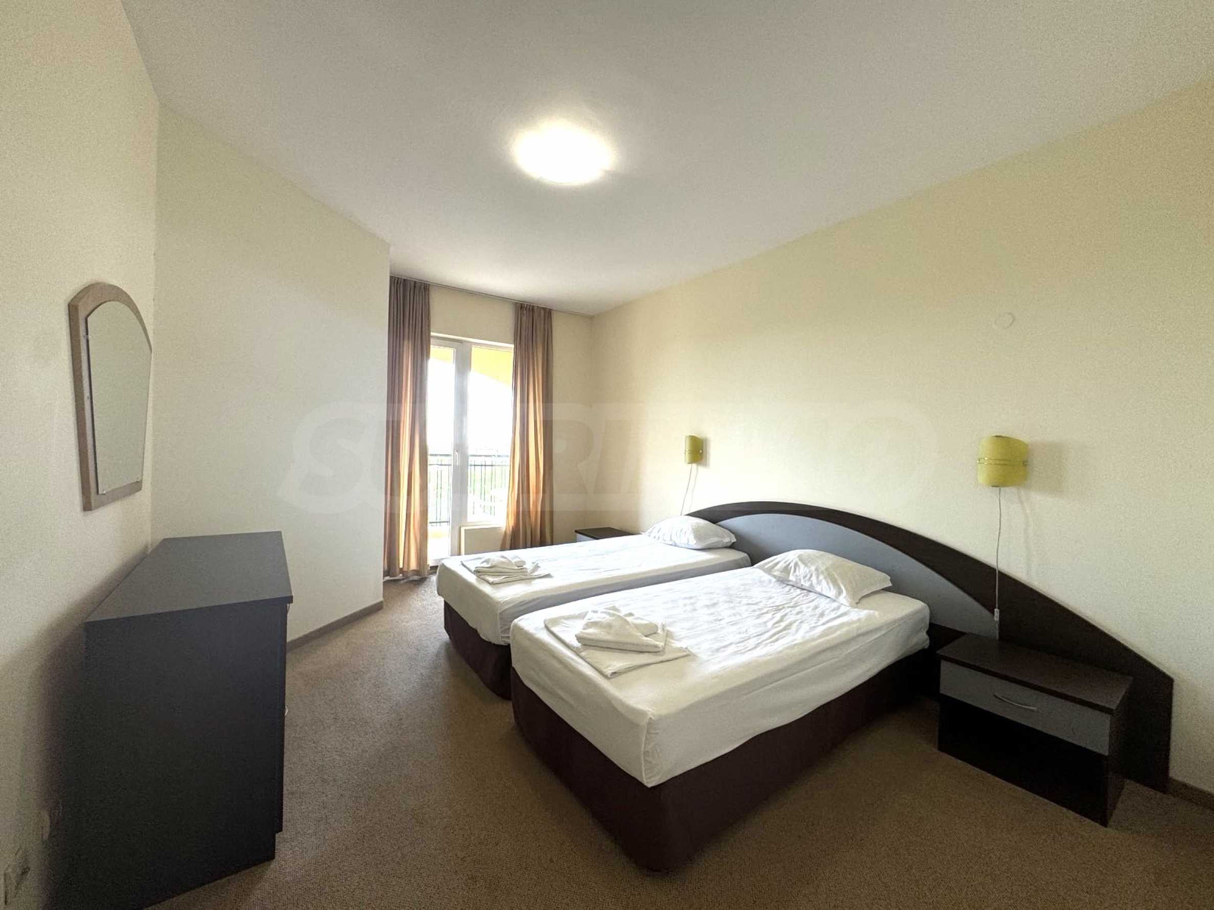 Oferujemy na sprzedaż apartament z jedną sypialnią i widokiem na morze na zamkniętym osiedlu, położonym wśród zieleni parku w Złotych Piaskach. Doskonała lokalizacja w pobliżu przystanku autobusowego, z bardzo szybkim dojazdem do głównej drogi do Warny i około 15 minut spacerem do plaży kurortu.