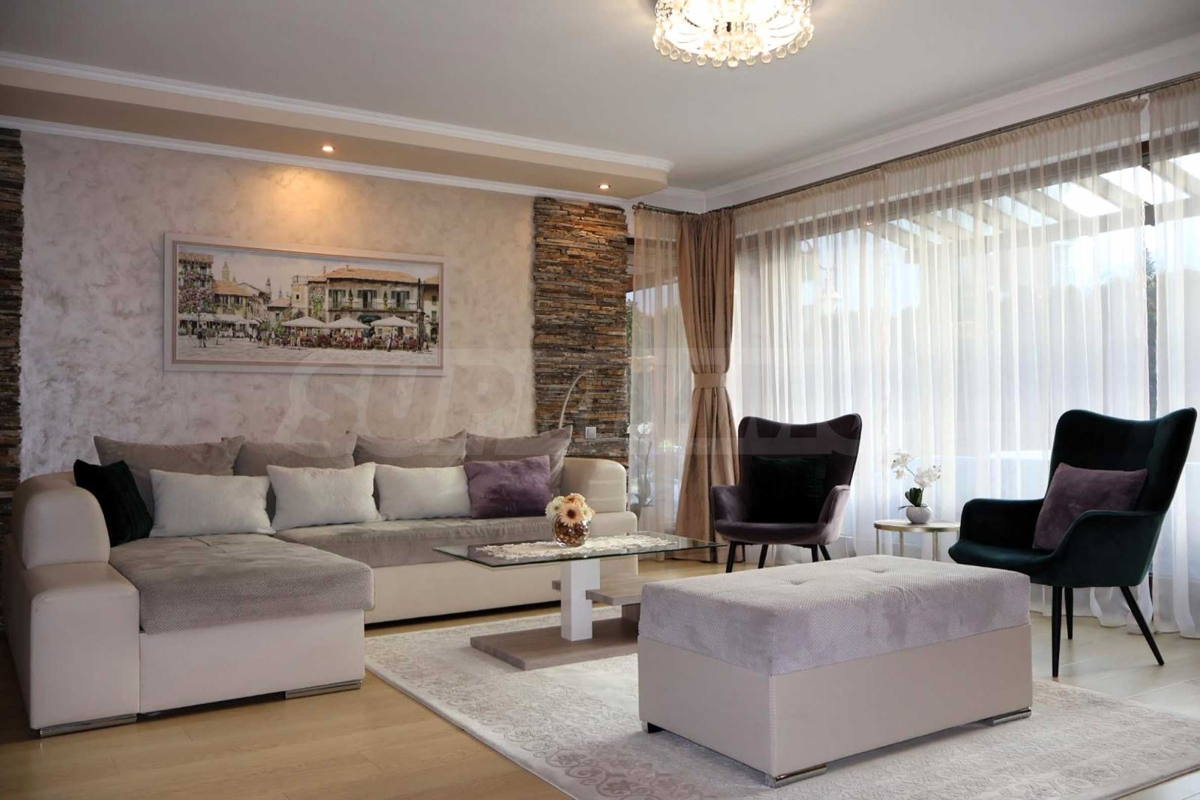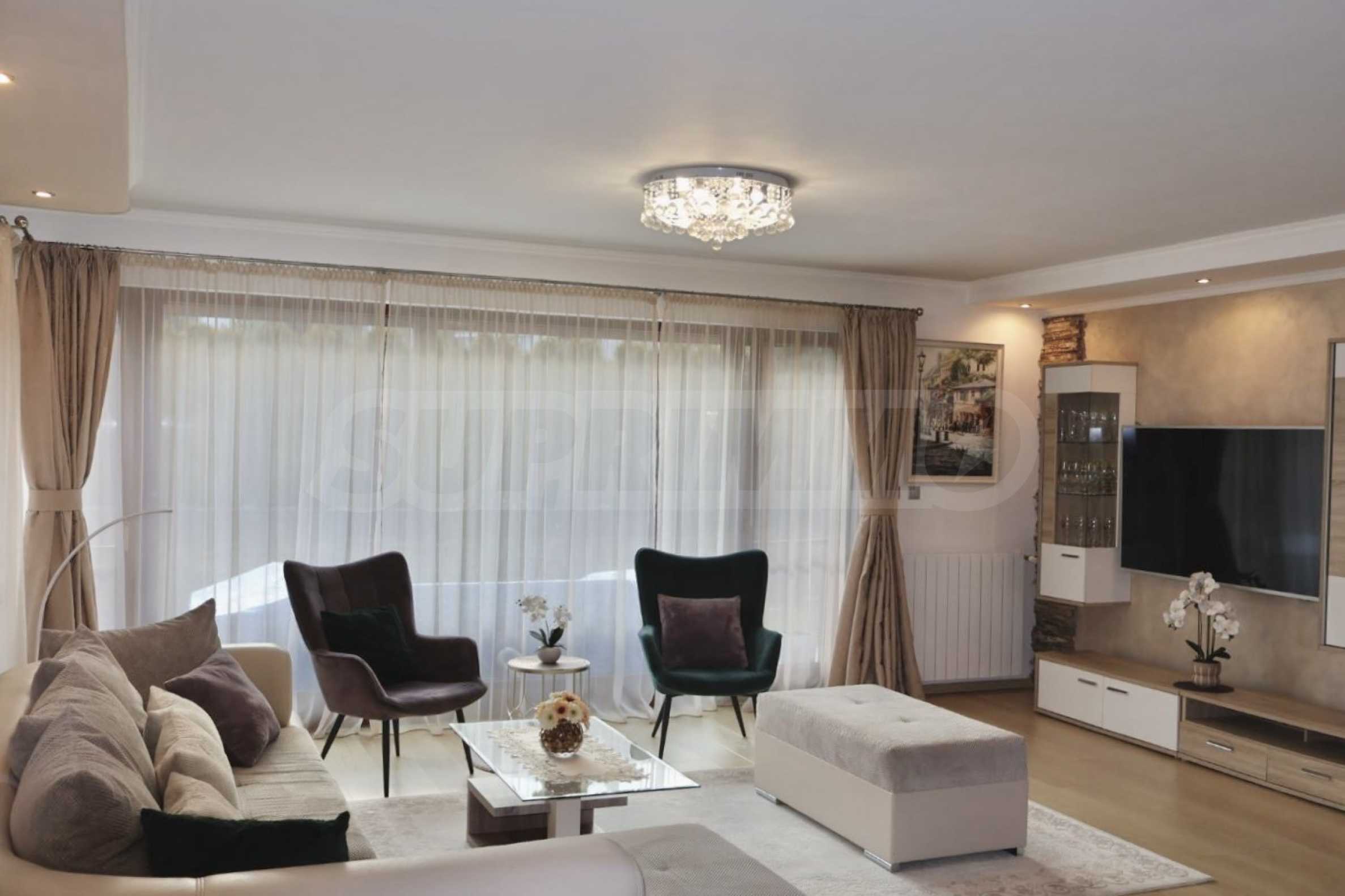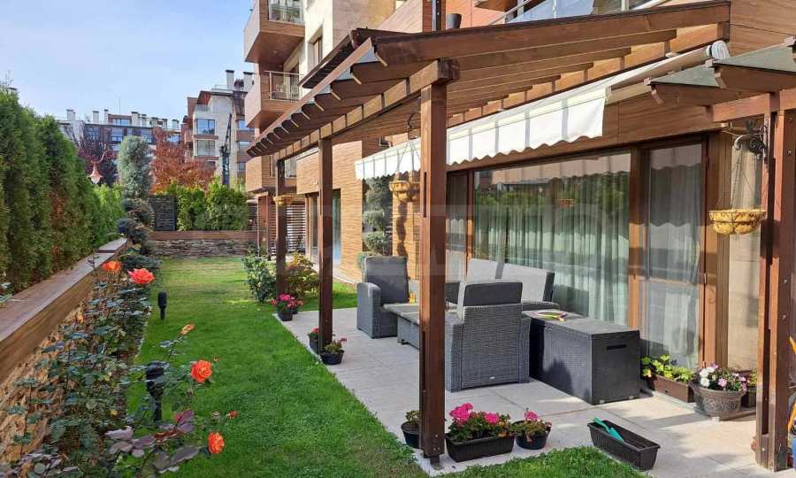 Prezentujemy elegancki, czteropokojowy apartament z własnym ogródkiem w jednym z najbardziej pożądanych, strzeżonych osiedli w południowej części Sofii – Flora Park 1. Nieruchomość znajduje się na parterze i oferuje wyjątkowe połączenie miejskiego komfortu, spokoju i mnóstwa zieleni. Dwa prywatne ogródki o łącznej powierzchni 95 m² sprawiają, że apartament staje się prawdziwym domem – idealnym dla rodzin, osób prowadzących aktywny tryb życia lub dla wszystkich ceniących otwartą przestrzeń. Apartament jest w pełni umeblowany, z wysokiej klasy meblami i sprzętem AGD, i gotowy do zamieszkania – bez dodatkowych nakładów finansowych ze strony przyszłego właściciela.
