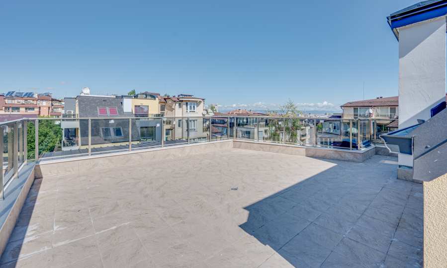 Apartament o powierzchni całkowitej 146,93 m² znajduje się na piątym, ostatnim piętrze. Jest wynajmowany zgodnie z bułgarskim kodeksem budowlanym – na gładzi i jastrychu, gotowy do wykończenia według gustu przyszłych właścicieli. To nieruchomość, w której przestrzeń, światło i widoki z zewnątrz stają się częścią codziennego życia. Duże tarasy dają możliwość stworzenia przytulnych stref relaksu pod gołym niebem – miejsca na poranną kawę, wspólne wieczory z bliskimi lub po prostu na chwile ciszy z widokiem na góry.