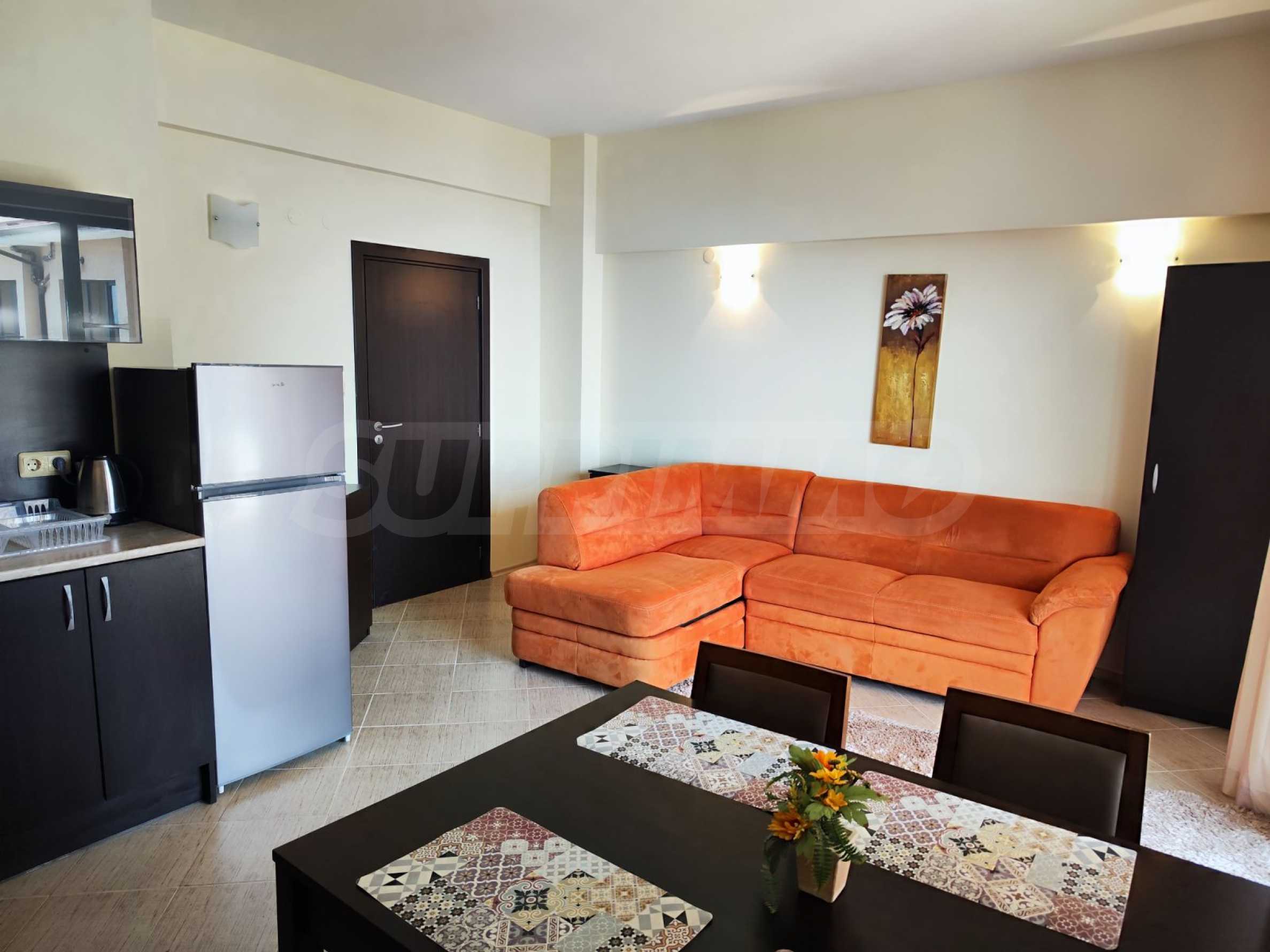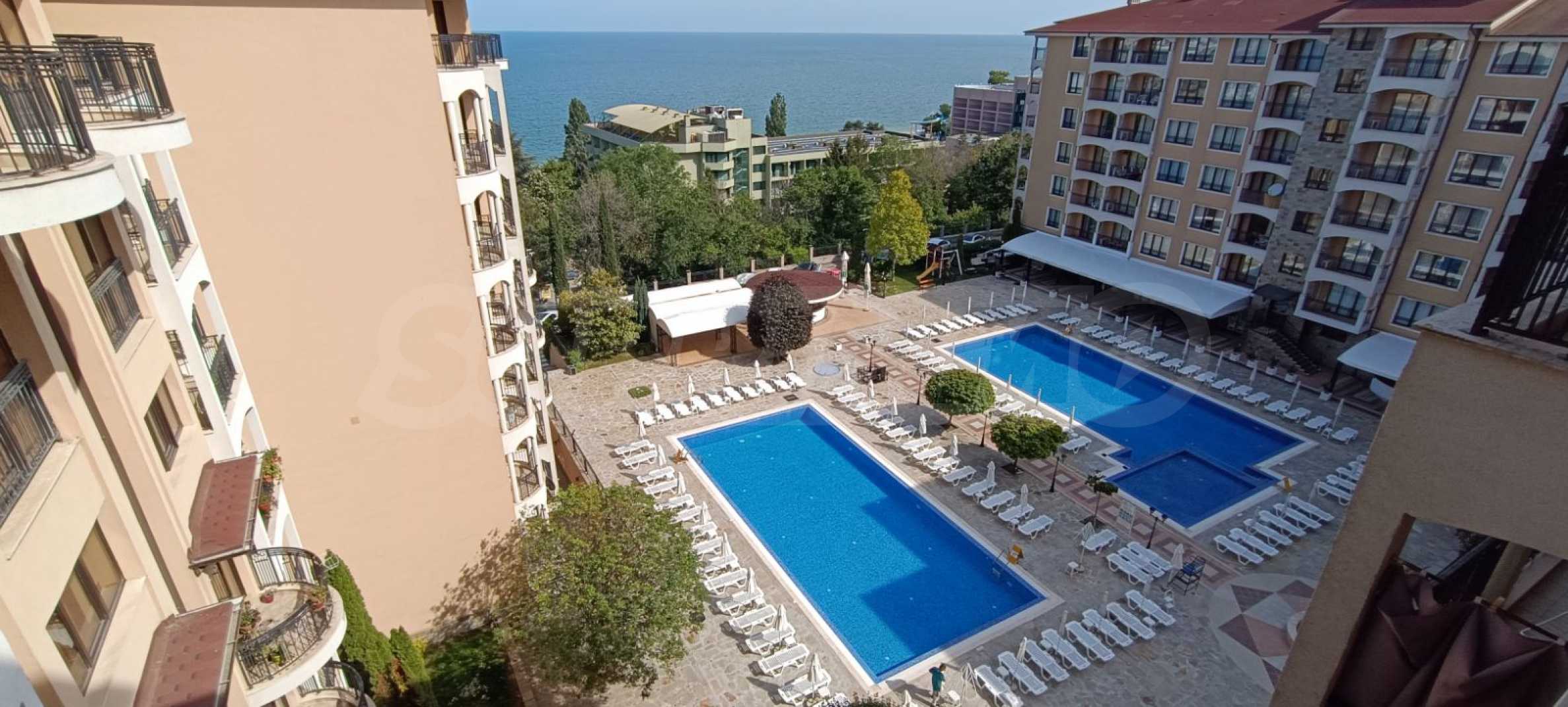Oferujemy na sprzedaż umeblowane mieszkanie jednopokojowe w elitarnym, strzeżonym kompleksie z basenem w kurorcie Złote Piaski.