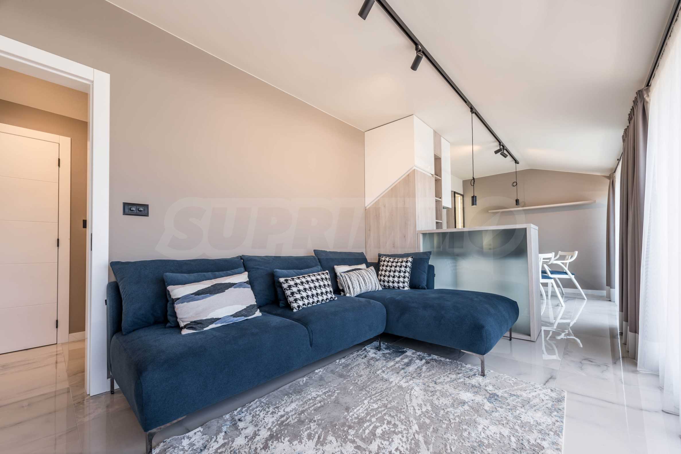 Apartament zachwyca niesamowitym widokiem na morze z każdego pokoju i stylowym wnętrzem, wykończonym według projektu architektonicznego z dbałością o każdy szczegół.