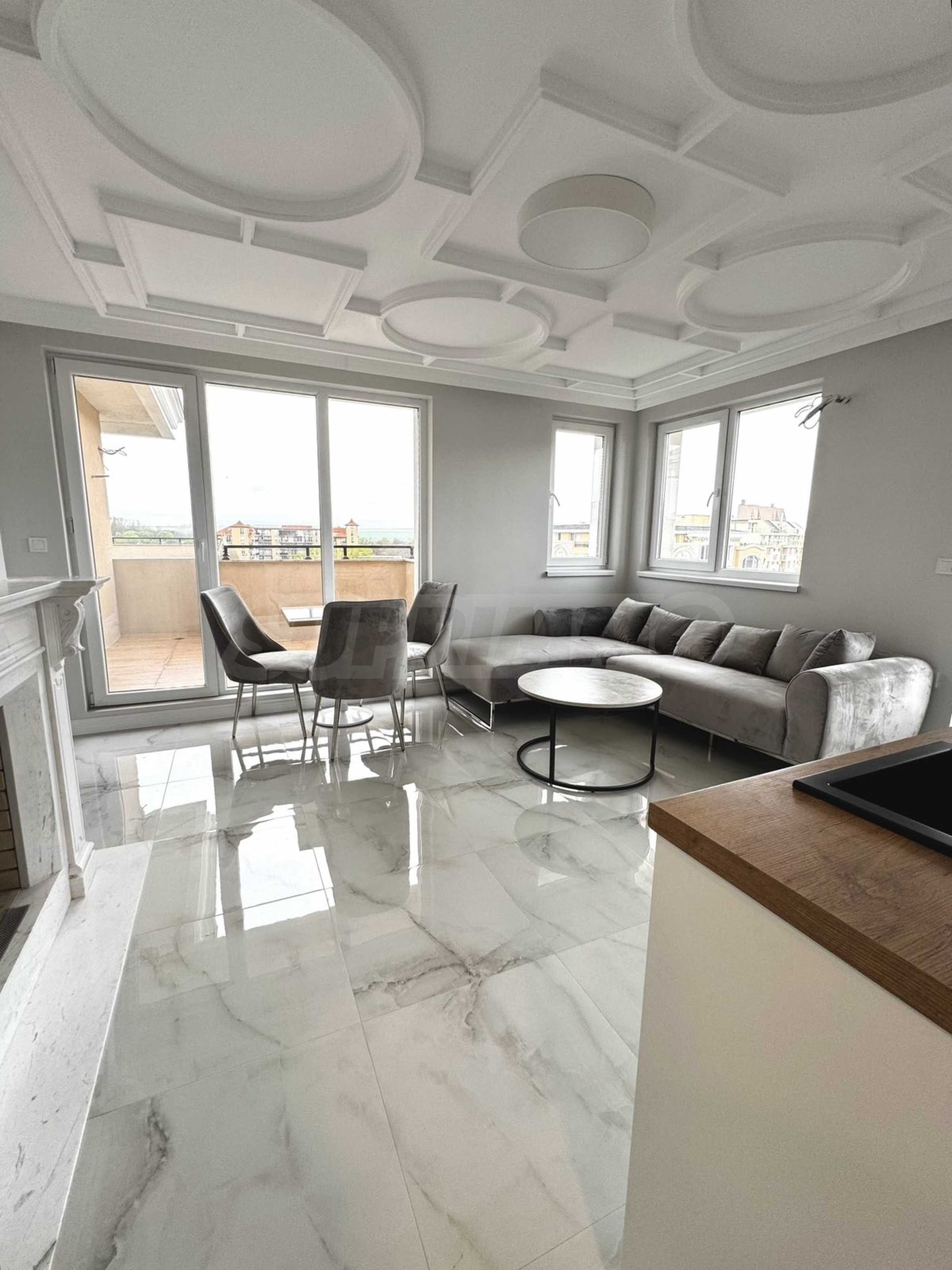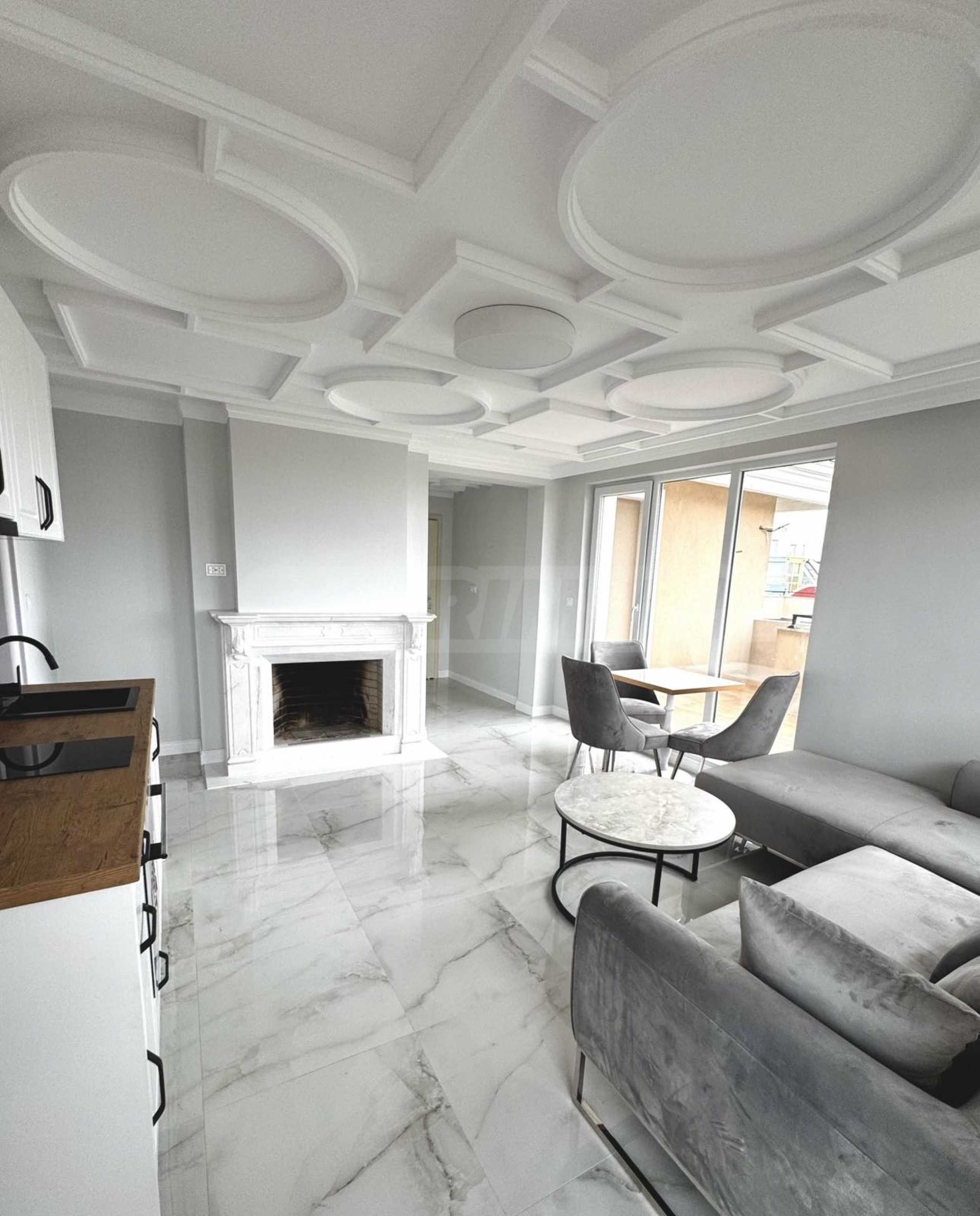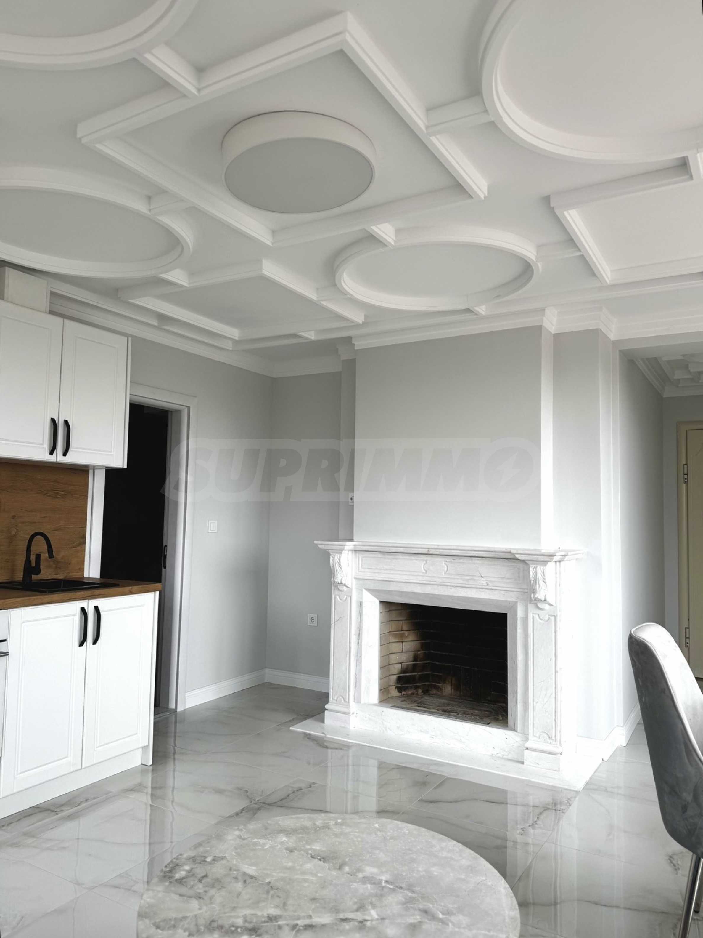 Apartament został całkowicie odnowiony i wyposażony w nowoczesne meble oraz kominek z naturalnego marmuru, który tworzy wyjątkową atmosferę i przytulność. Przestronny salon z dużymi oknami zapewnia mnóstwo światła przez cały dzień.