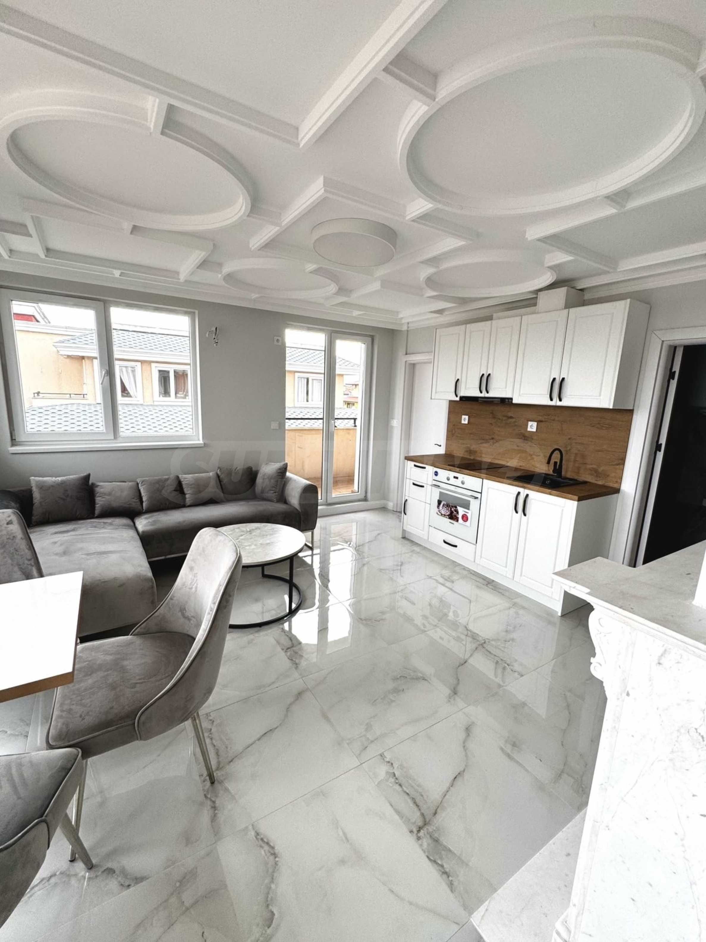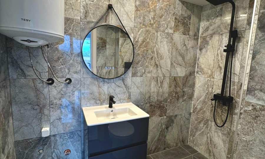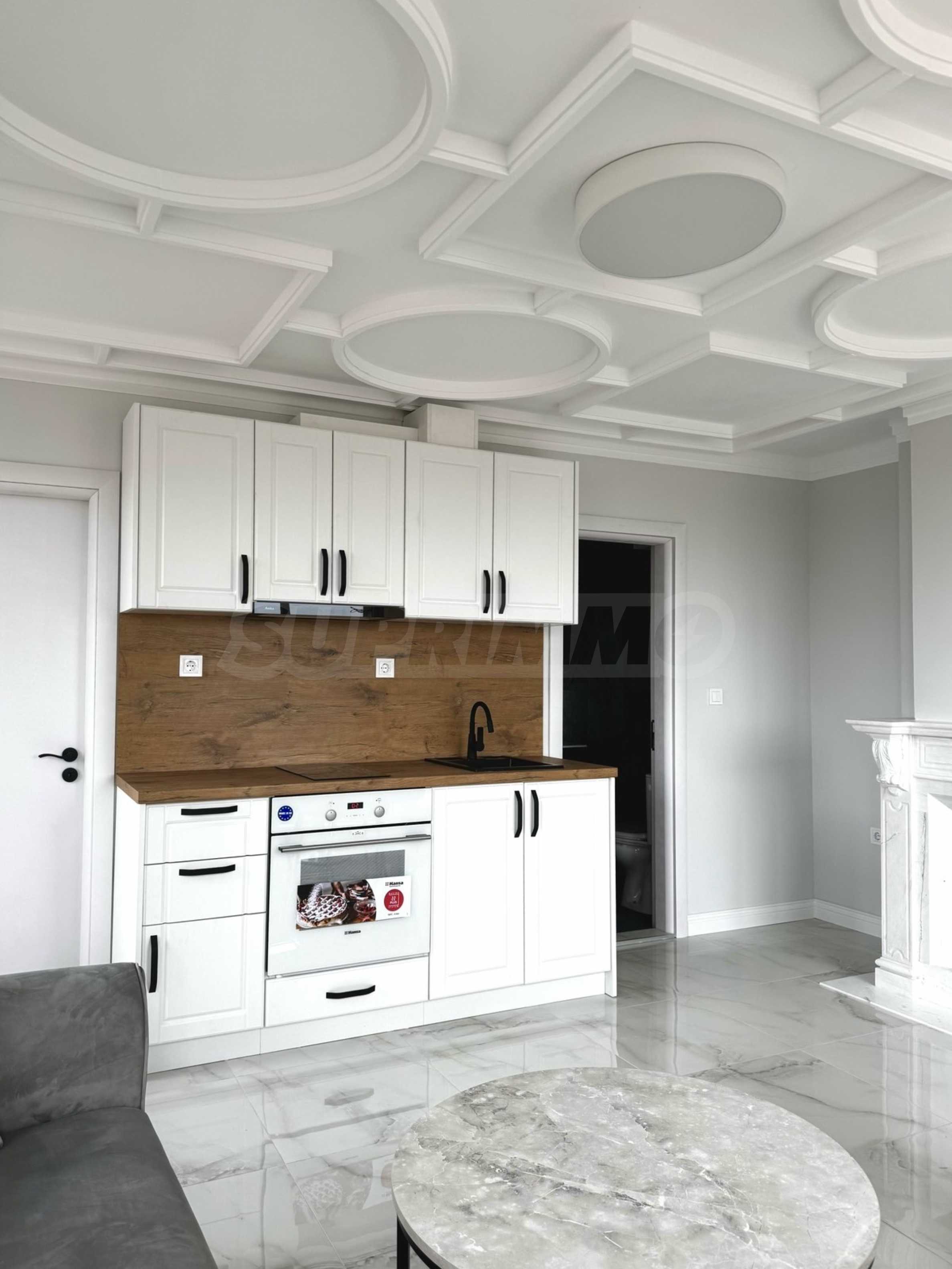 Apartament został całkowicie odnowiony i wyposażony w nowoczesne meble oraz kominek z naturalnego marmuru, który tworzy wyjątkową atmosferę i przytulność. Przestronny salon z dużymi oknami zapewnia mnóstwo światła przez cały dzień.