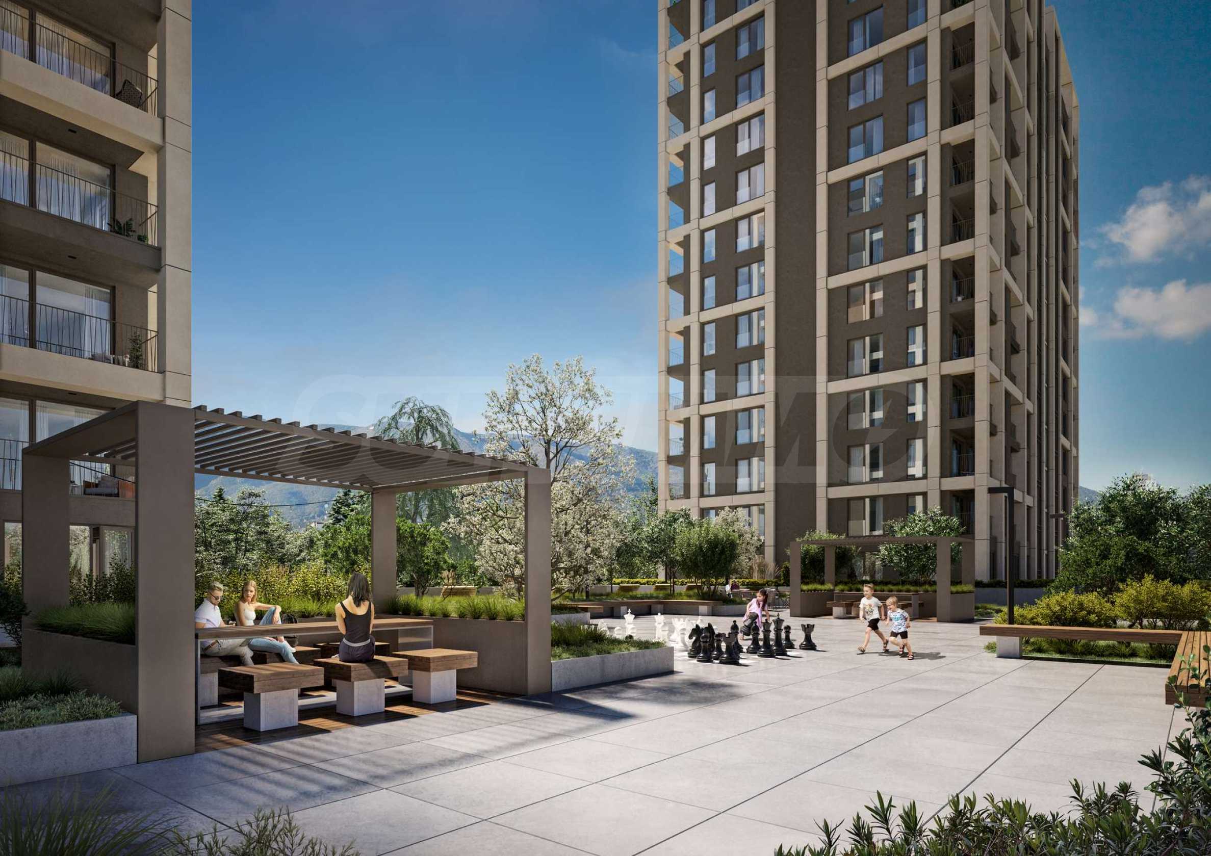 Ideą projektu jest zapewnienie przyszłym mieszkańcom spokojnego i komfortowego środowiska życia w jednej z preferowanych dzielnic stolicy. Oba budynki zaprojektowano z połączonymi ze sobą parkami-tarasami, co tworzy poczucie harmonii i naturalnego otoczenia z dużą ilością zieleni. Park będzie oferował tereny rekreacyjne, obiekty sportowe i place zabaw dla dzieci, aby zaspokoić potrzeby zarówno rodzin, jak i osób prowadzących aktywny tryb życia. Dziedziniec między budynkami tworzy naturalny filtr i pomaga osiedlu lepiej wkomponować się w otoczenie. 40% powierzchni osiedla zajmują trawniki, żywopłoty, nasadzenia krzewów zimozielonych i liściastych oraz wysokich gatunków drzew liściastych i iglastych.