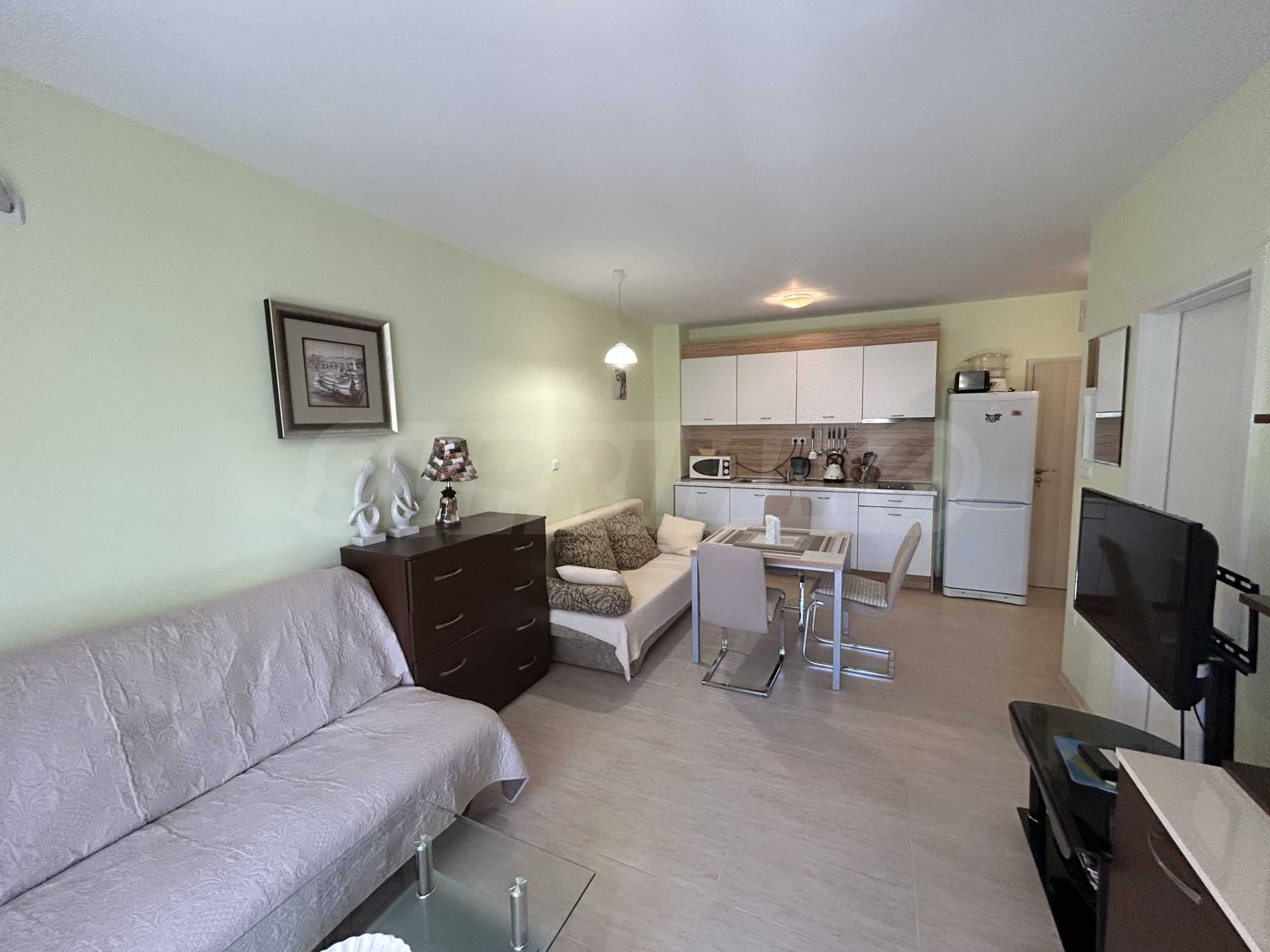 Oferujemy na sprzedaż mieszkanie jednopokojowe o powierzchni 60 m kw., w prestiżowym kompleksie z wieloma udogodnieniami, położonym przy plaży Kavatsite, niedaleko miasta Sozopol.