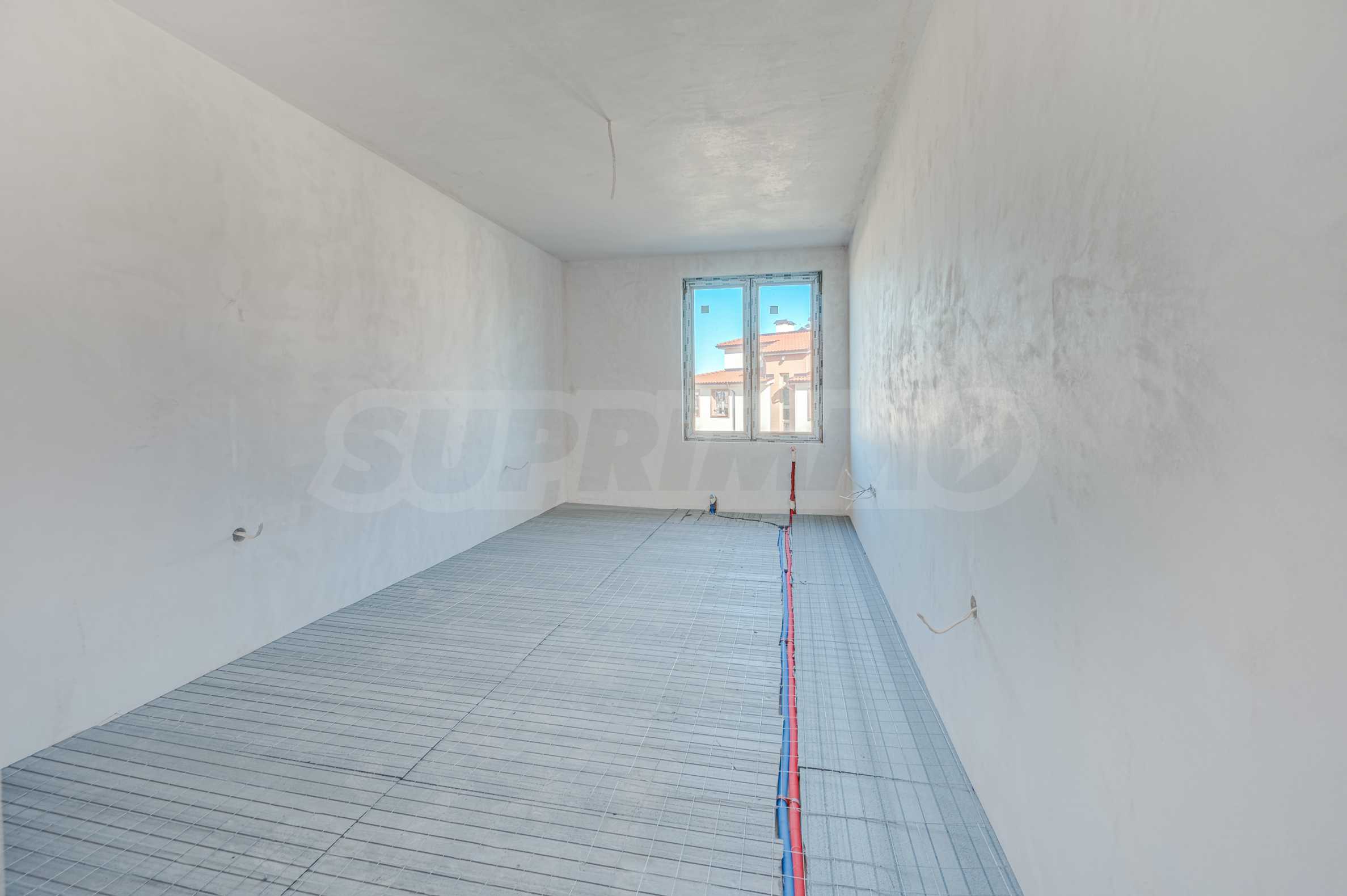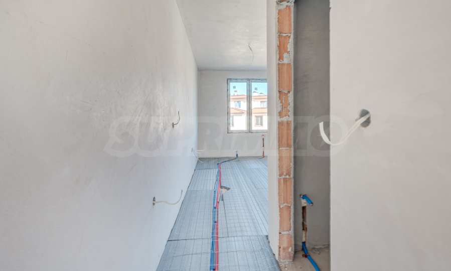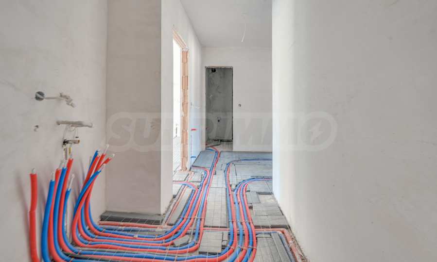 Ogrzewanie gazowe podłogowe. W mieszkaniu znajdują się przyłącza do montażu grzejników. Mieszkanie jest oddawane zgodnie z bułgarskim kodeksem budowlanym – tynki i wylewki.
