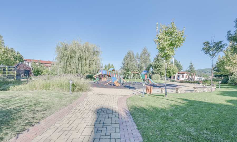 Kompleks oferuje zagospodarowane tereny parkowe, tereny rekreacyjne, boiska sportowe, place zabaw, strefę trampolin, siłownię na świeżym powietrzu, kort tenisowy, boisko do koszykówki, stół do tenisa stołowego i szachy ogrodowe. Wybudowano również park dla zwierząt i małą kapliczkę. Dostępne są miejsca parkingowe podziemne i zewnętrzne.