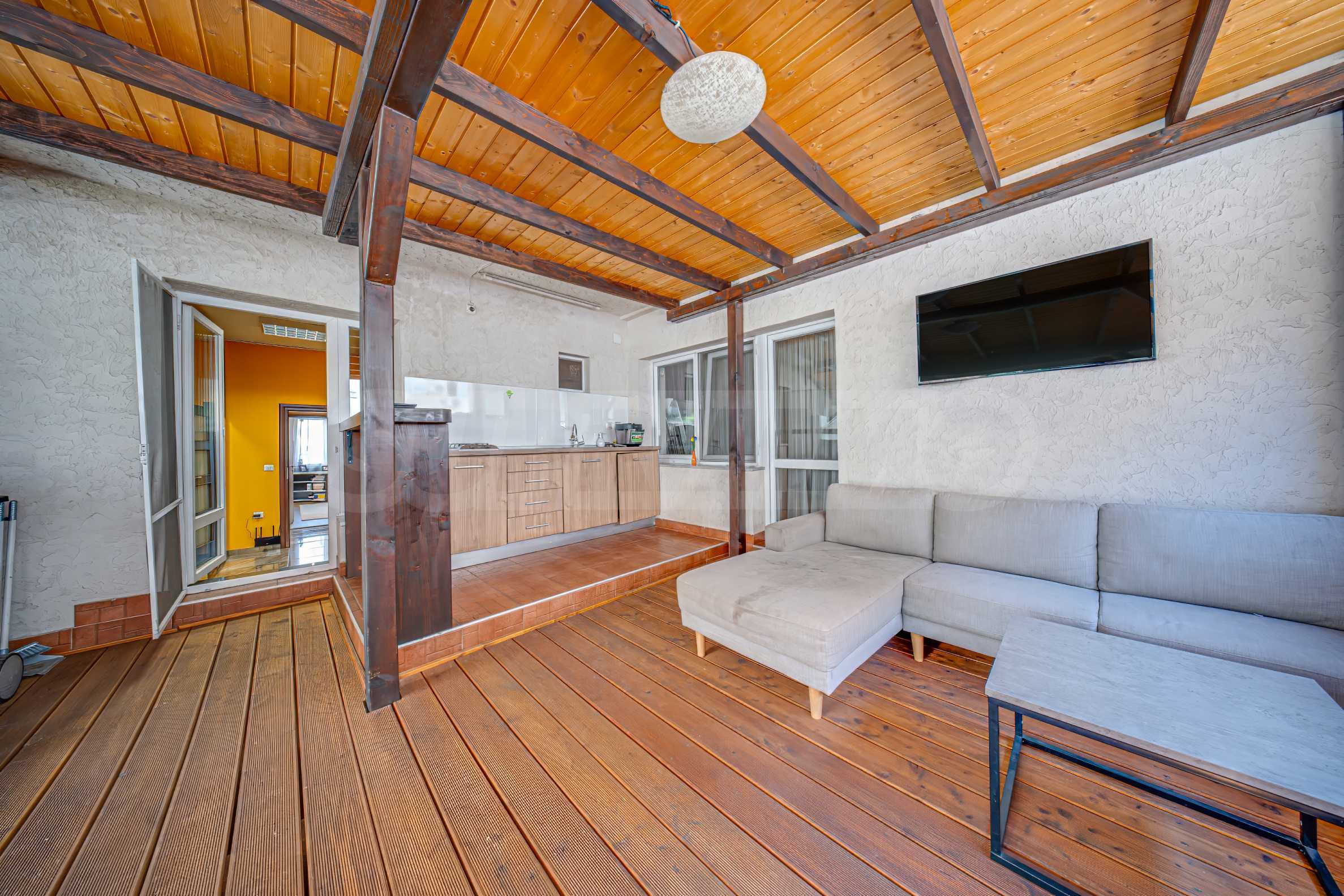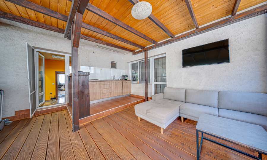 • duży taras z letnią kuchnią, zadaszeniem z sofami i grillem – idealne miejsce na spotkania ze znajomymi i relaks.