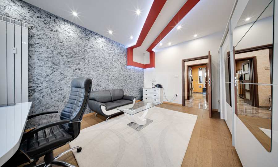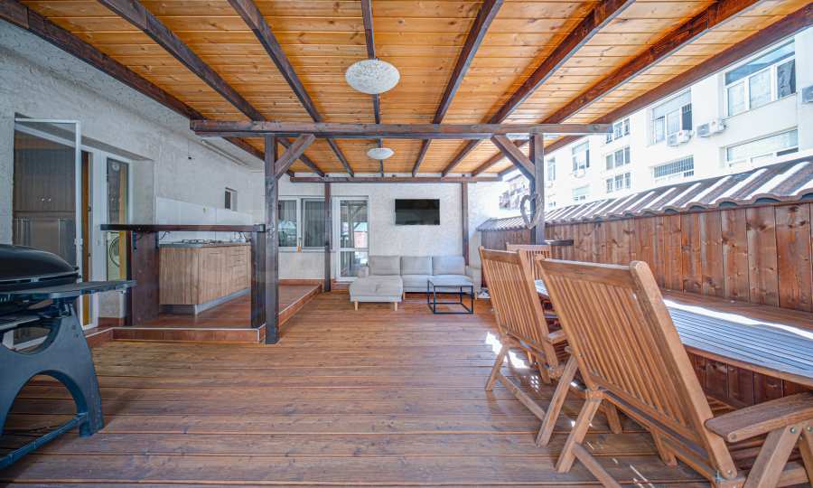 Apartament znajduje się na pierwszym piętrze budynku mieszkalnego nad lokalami handlowymi i zachwyca przestronnością 200 mkw., z czego część stanowi wyjątkowy taras o powierzchni 70 mkw. - prawdziwa oaza w centrum miasta.