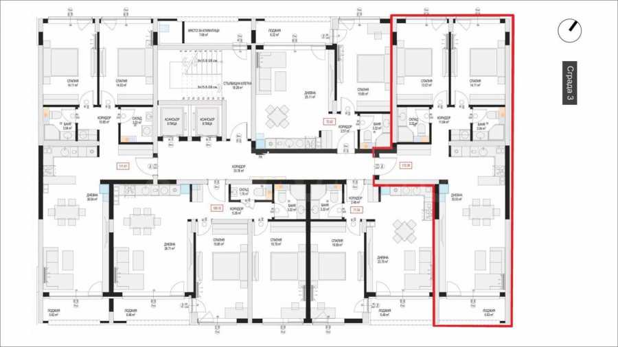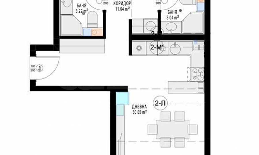 Prezentujemy Państwu przestronny, dwupokojowy apartament o powierzchni całkowitej 112,38 m², zlokalizowany na 4. piętrze apartamentowca. Ekspozycja mieszkania od strony południowo-wschodniej gwarantuje mnóstwo naturalnego światła, a z okien roztacza się imponujący widok na panoramę Gór Witosza. Nieruchomość jest częścią nowego kompleksu w południowej części Sofii, który łączy w sobie nowoczesną architekturę, funkcjonalność i bliskość natury.