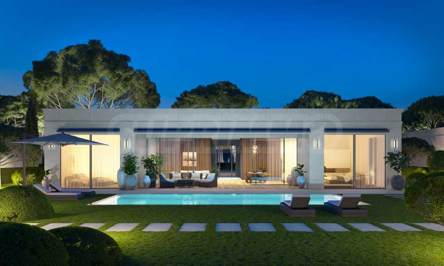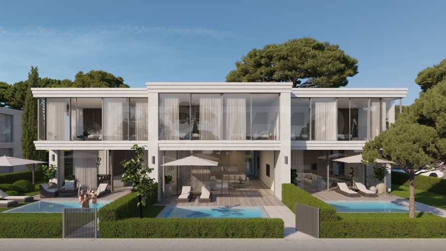 • w pierwszej linii zabudowy - 9 parterowych willi, każda z własnym podwórkiem i możliwością wynajęcia basenu, z 3 miejscami parkingowymi na zewnątrz;