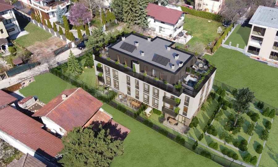 Prezentujemy ekskluzywny apartament w kameralnym, kameralnym budynku, otoczonym zielenią. Znajduje się on w jednej z najchętniej wybieranych lokalizacji, z szybkim dostępem do Business Parku Sofia, Parku Kambanite i renomowanych strzeżonych osiedli. Okolica jest w całości zabudowana domami jednorodzinnymi.