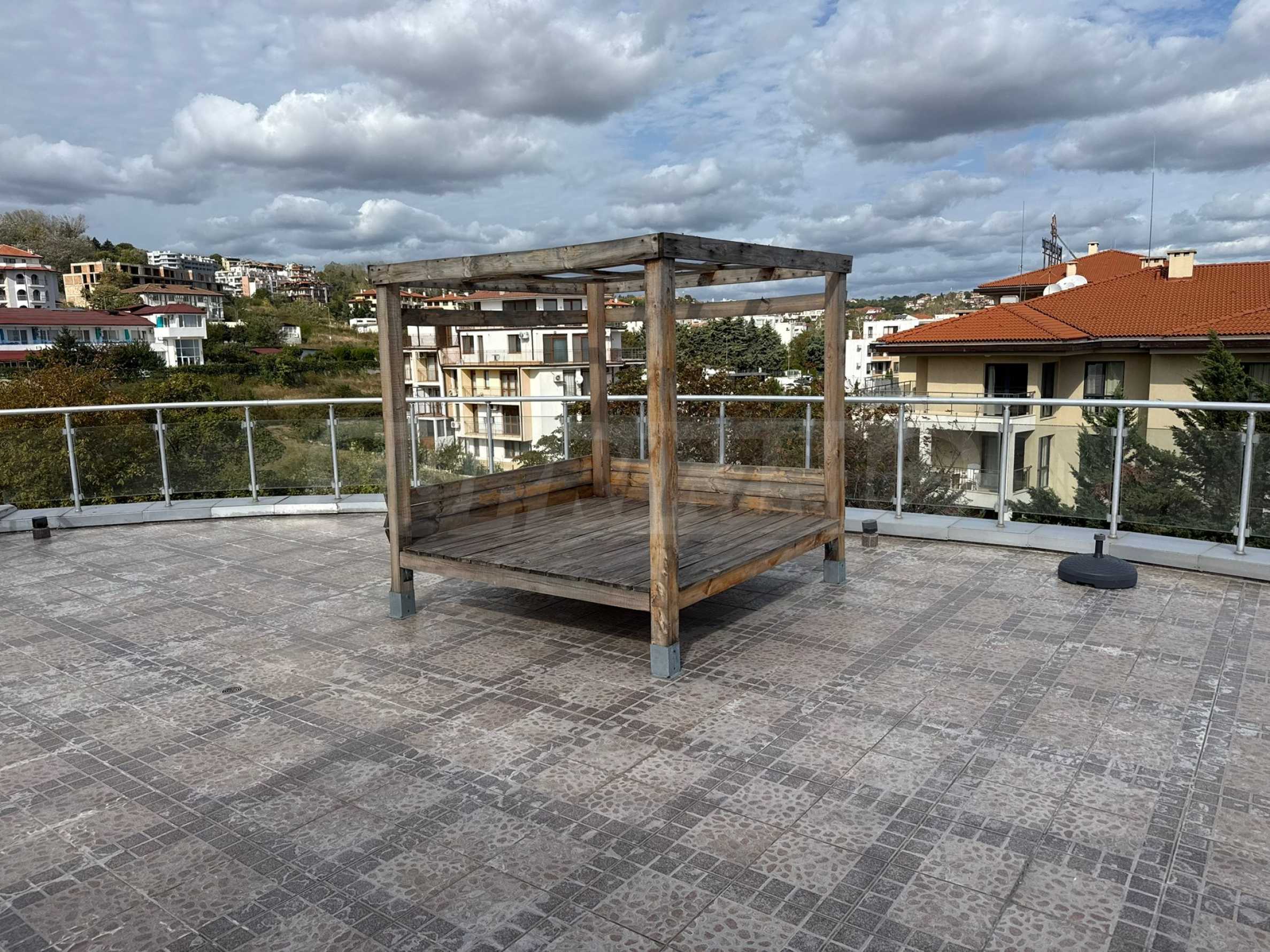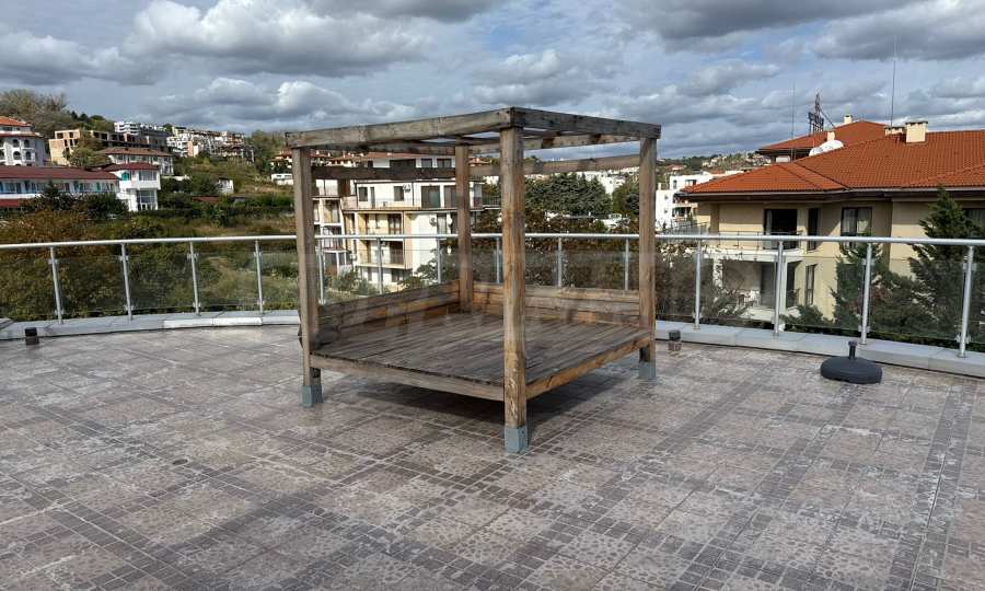 • ogromny taras widokowy z widokiem na morze, altaną grillową, huśtawką i miejscem do wypoczynku;