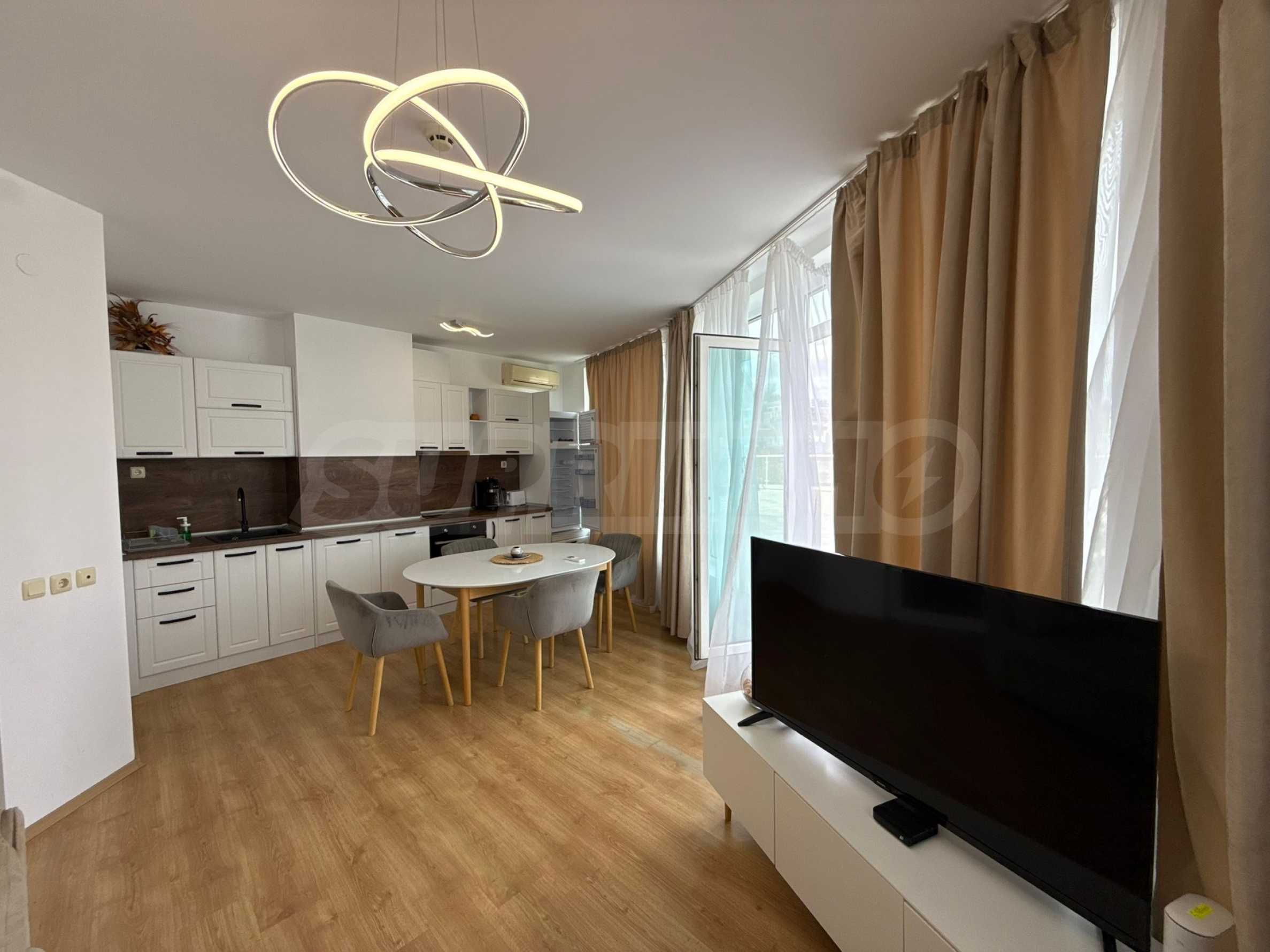 Do apartamentu przynależy 90-metrowa działka, na której znajduje się kompleks. Apartament jest w pełni umeblowany i wyposażony we wszystko, co niezbędne do życia, takie jak meble i sprzęt AGD.