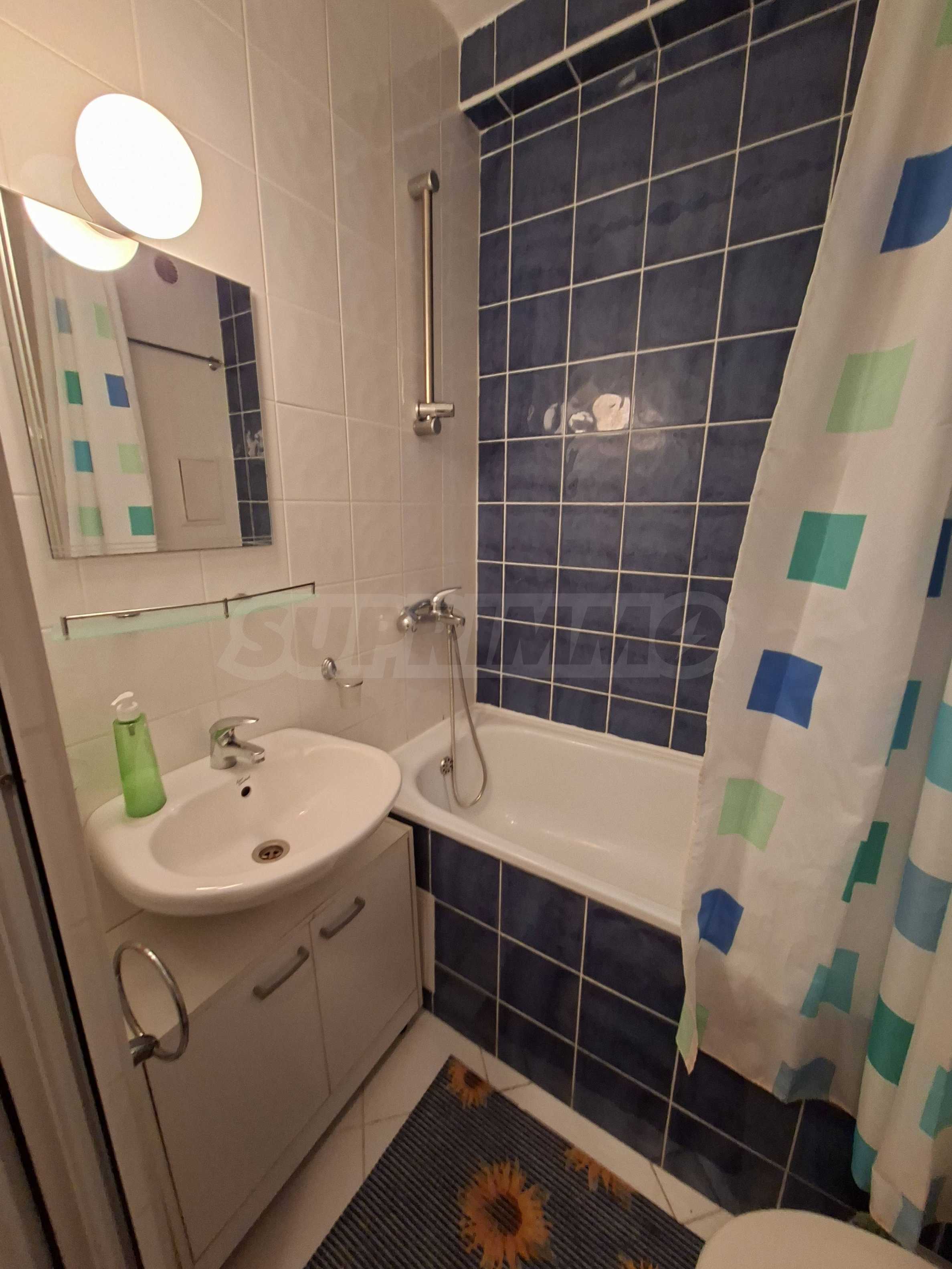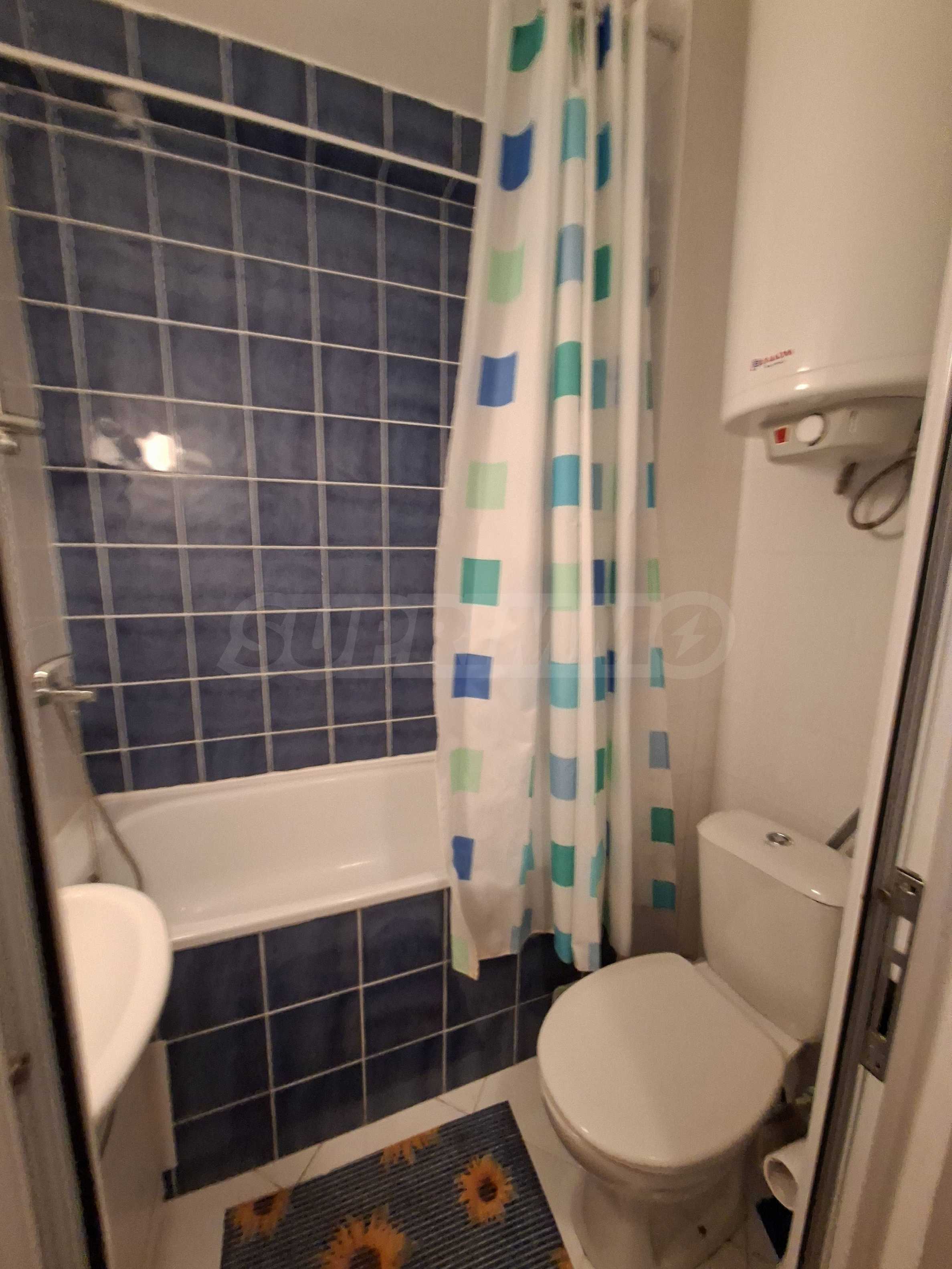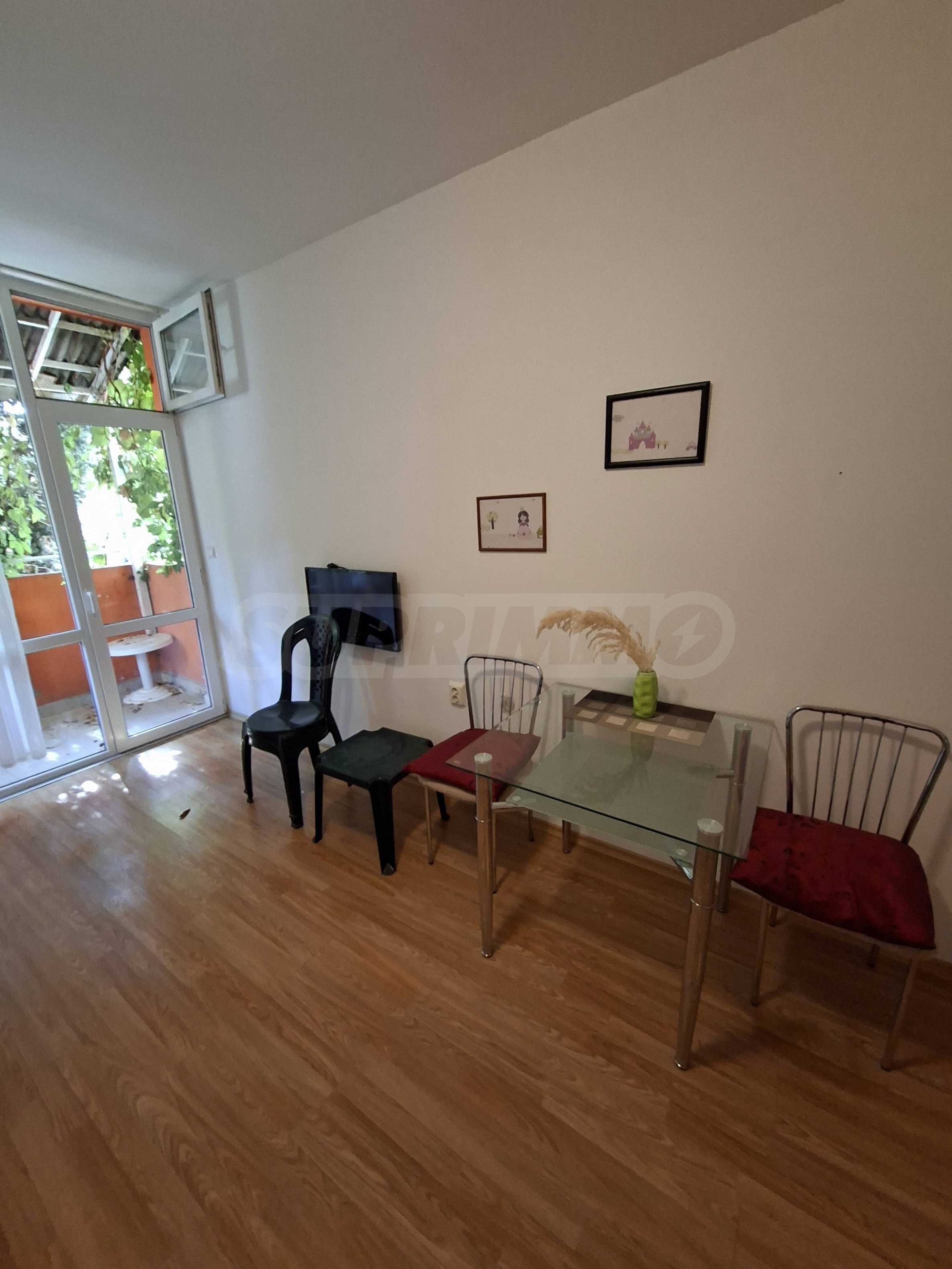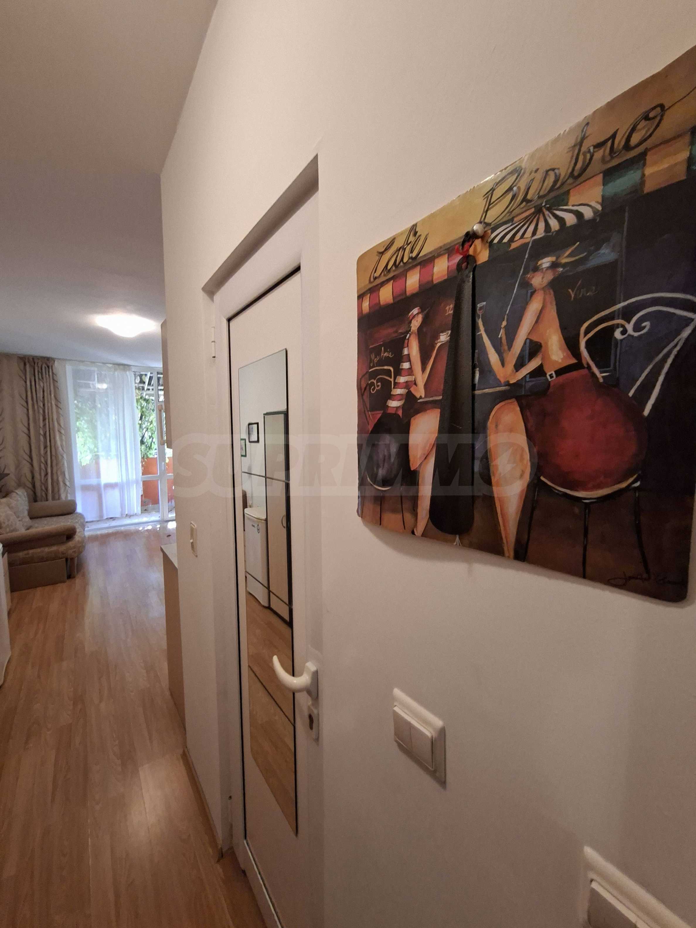 Oferujemy do sprzedaży mieszkanie jednopokojowe w strzeżonym kompleksie z basenem w Słonecznym Brzegu. Znajduje się ono 200 metrów od supermarketu „Mladost”, w okolicy z licznymi punktami handlowymi, w dogodnej lokalizacji, w odległości spaceru od morza.