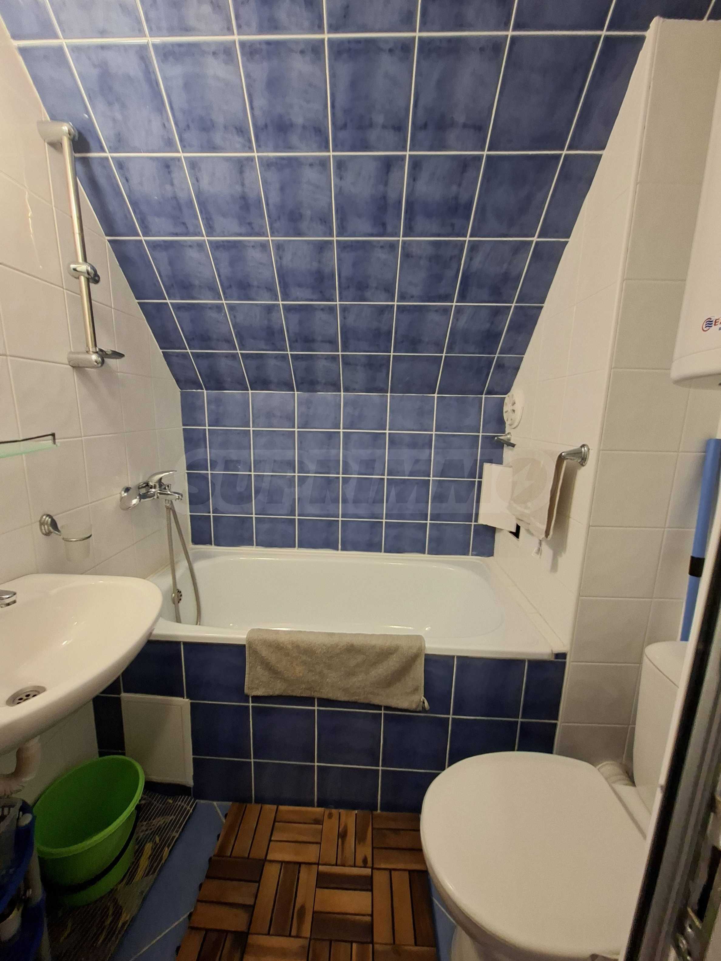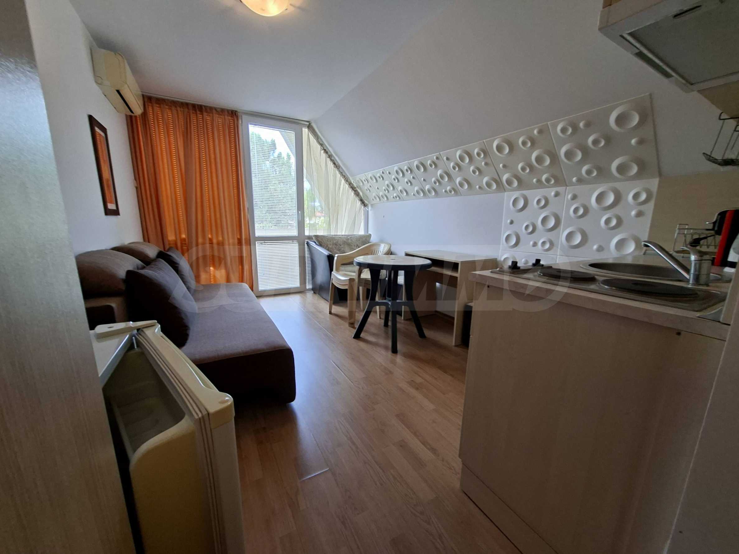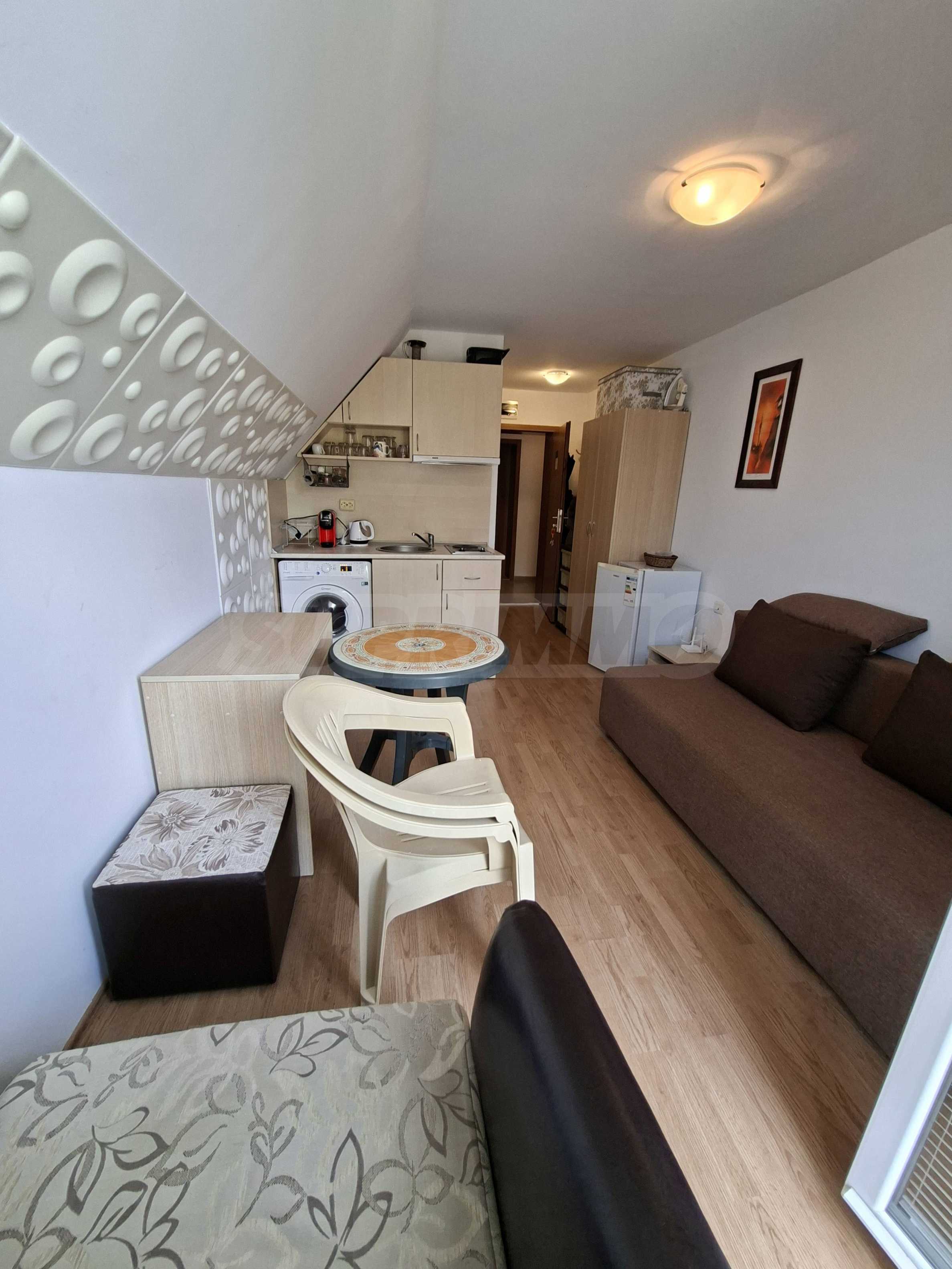Oferujemy do sprzedaży zadbane mieszkanie jednopokojowe w strzeżonym kompleksie z basenem w Słonecznym Brzegu. Położone jest 200 metrów od supermarketu „Mladost”, w okolicy z licznymi punktami handlowymi, w dogodnej lokalizacji, w odległości spaceru od morza.