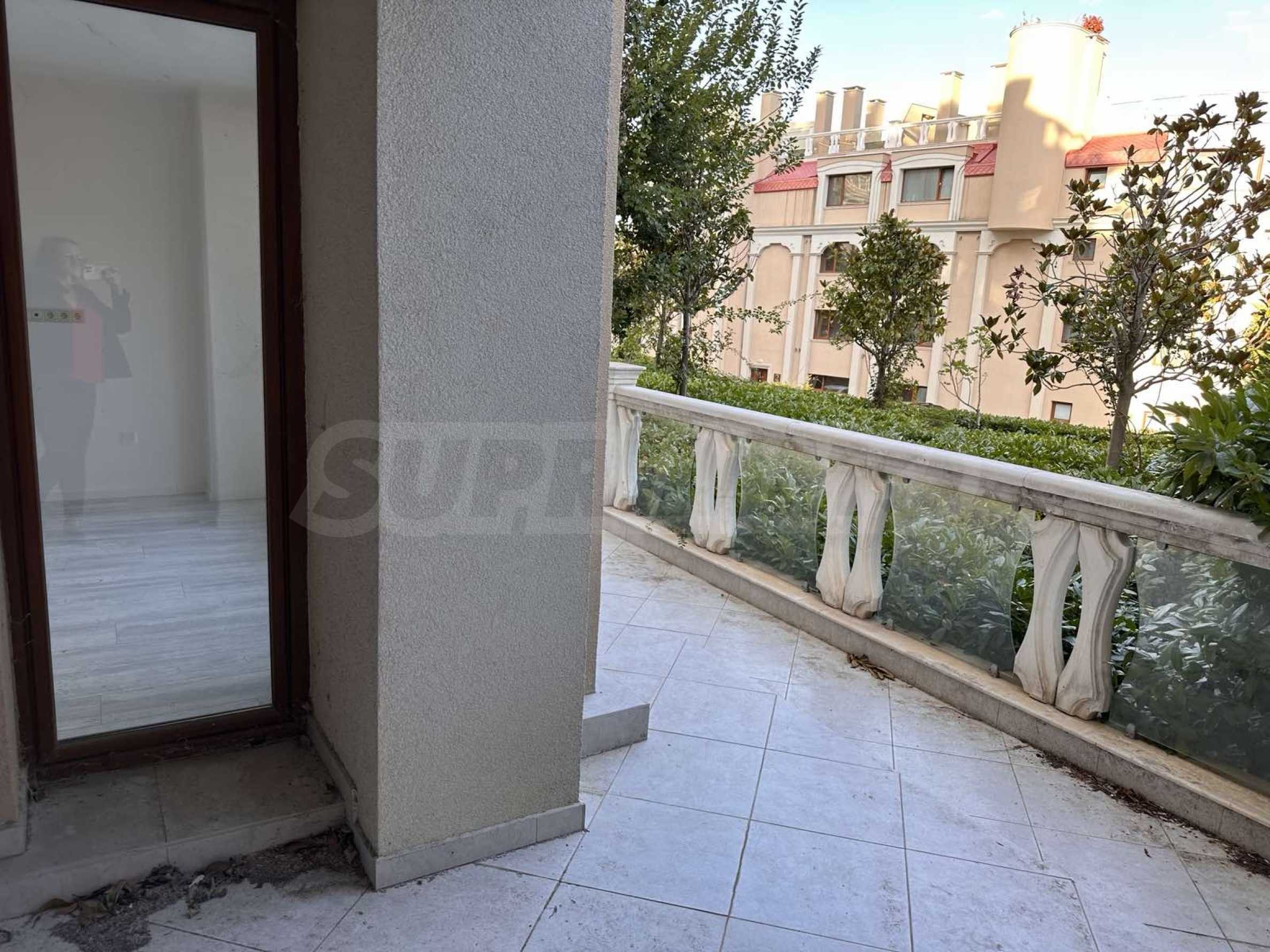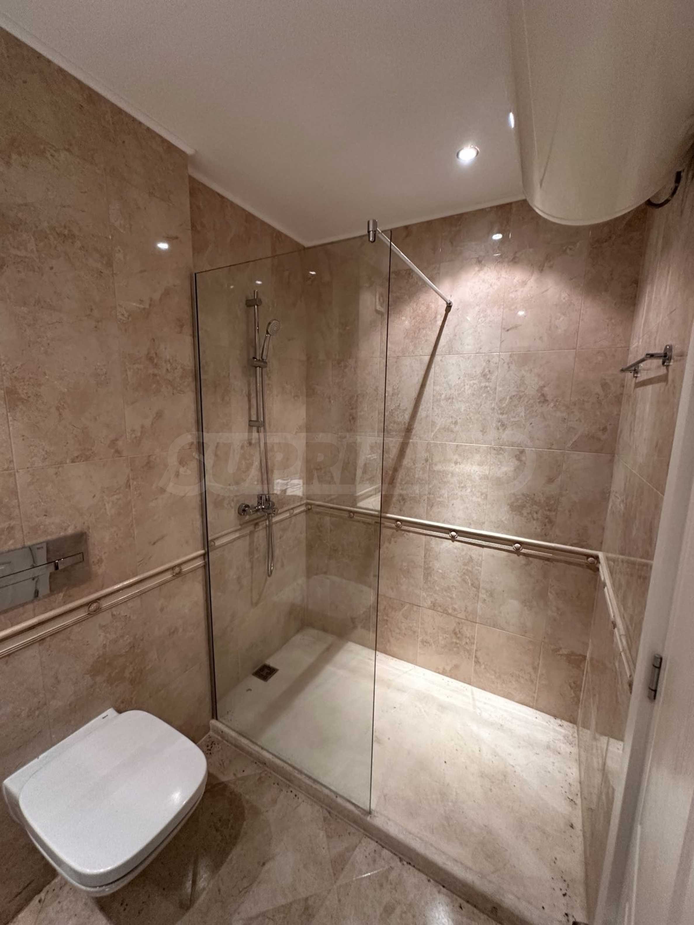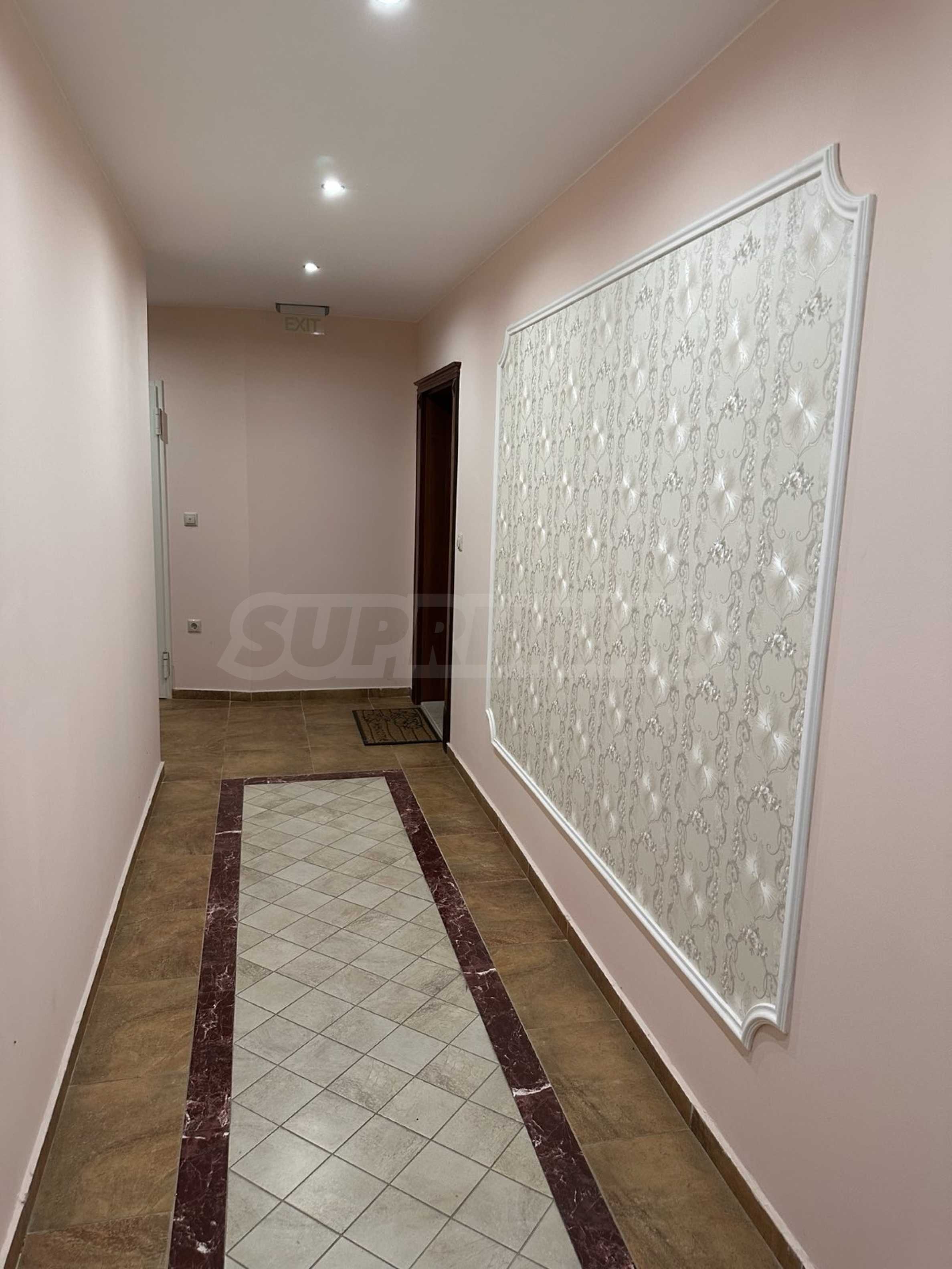 Mieszkanie o powierzchni całkowitej 142 mkw. znajduje się na -1 piętrze w 5-piętrowym bloku. Mieszkanie jest wykończone „pod klucz”, z podłogami, sprzedawane jest bez mebli, z wyposażoną kuchnią i łazienkami, w pokojach zainstalowano klimatyzację.