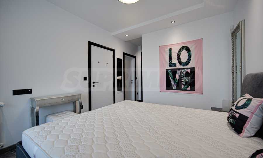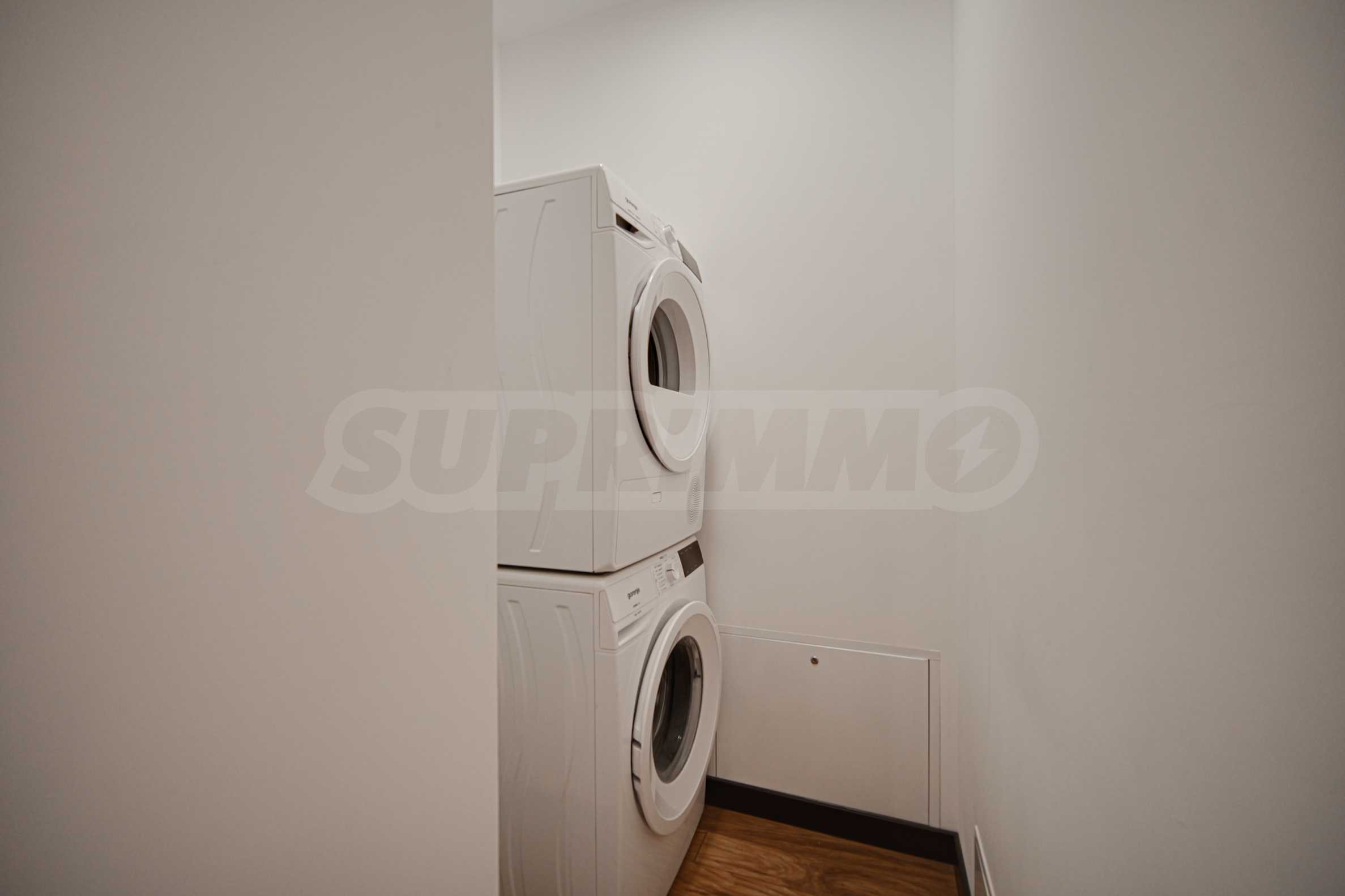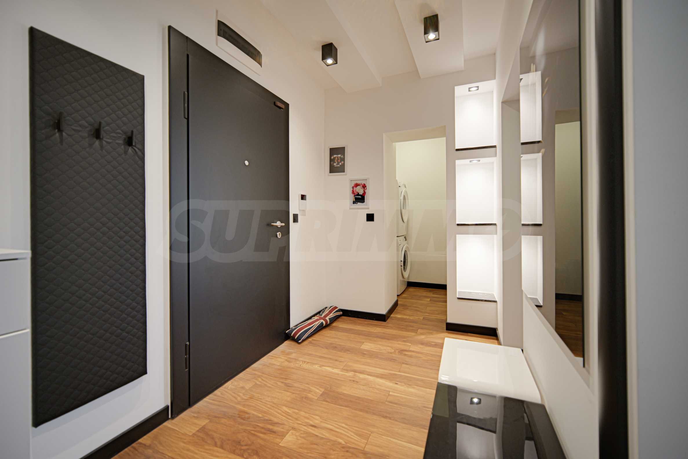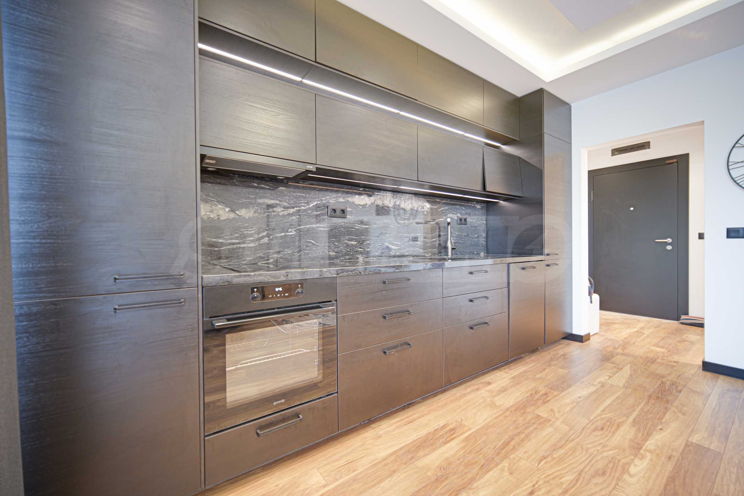 Apartament wykończony jest materiałami wysokiej jakości i umeblowany stylowymi meblami.