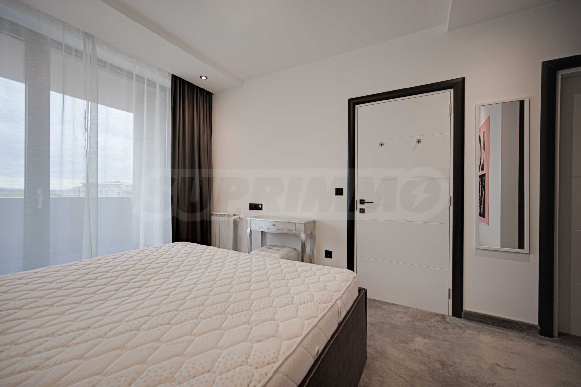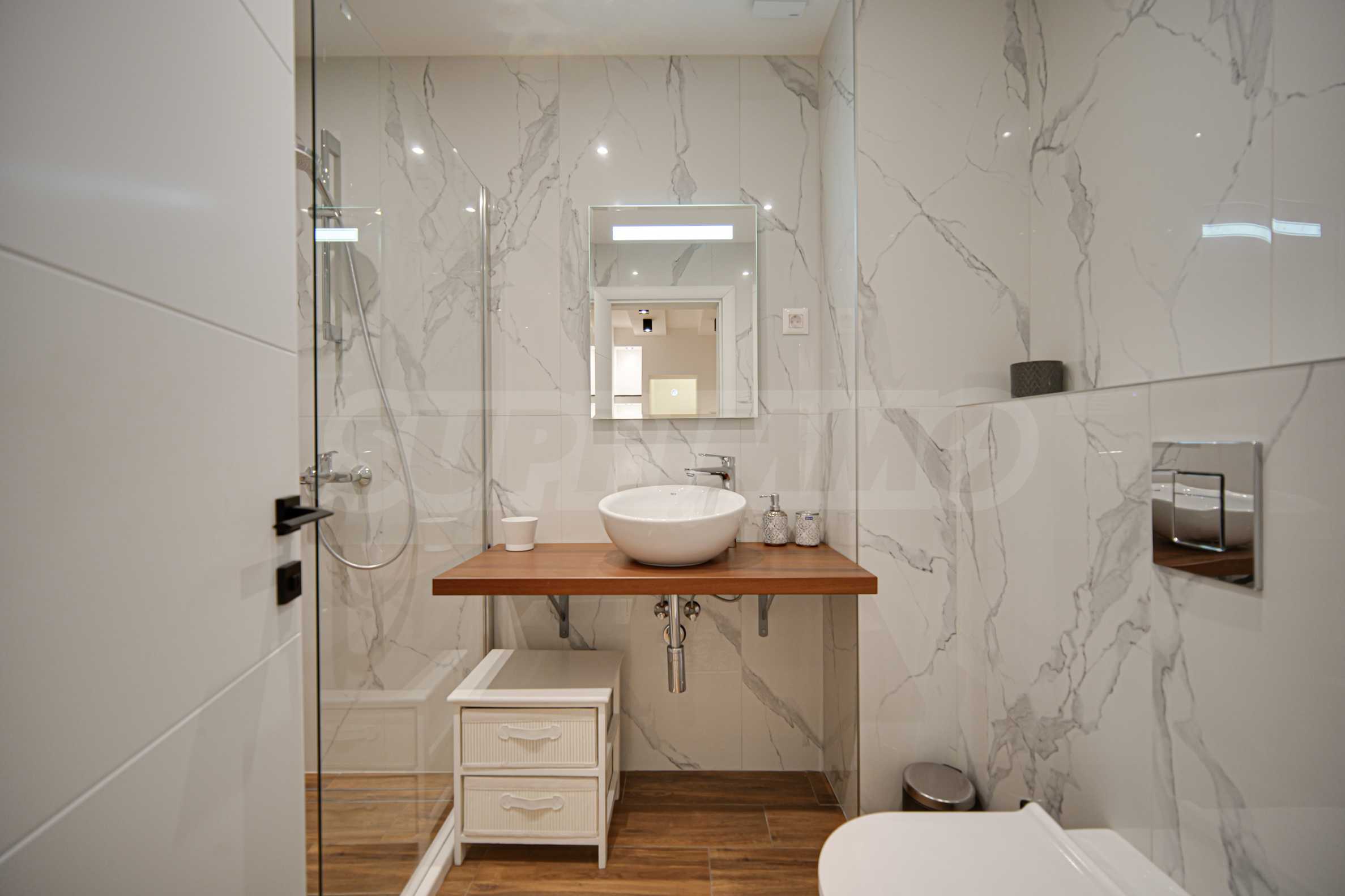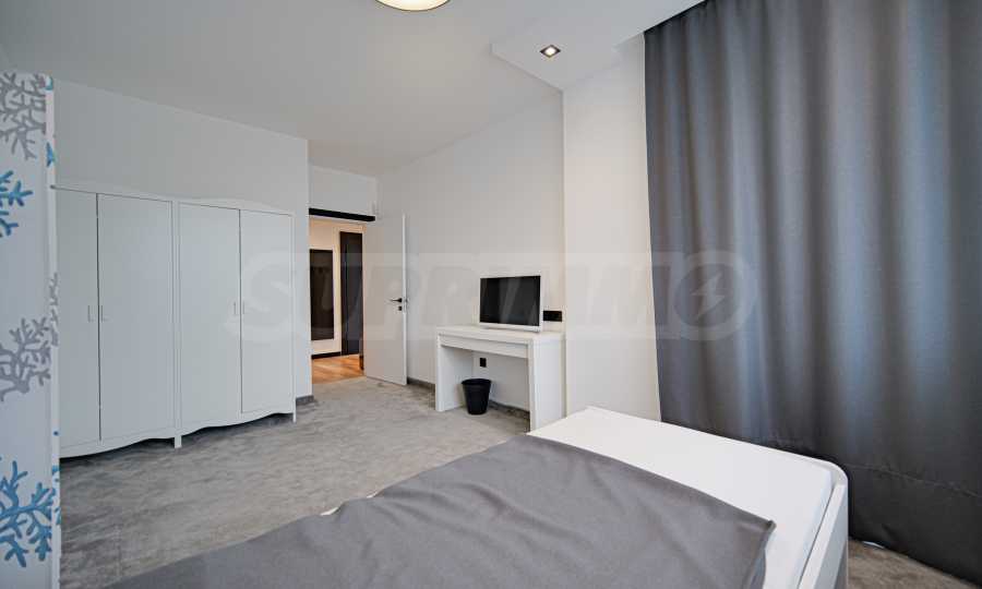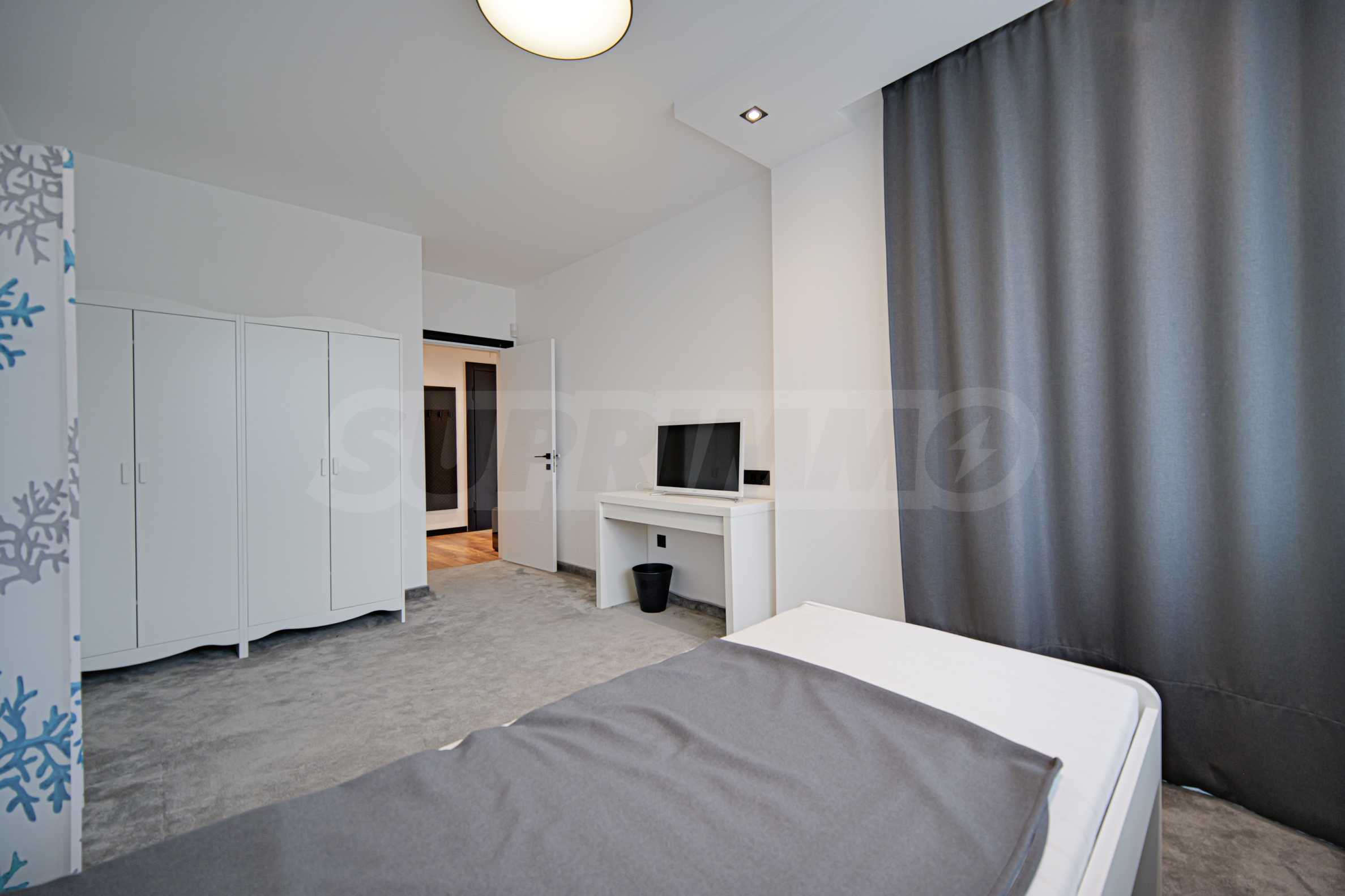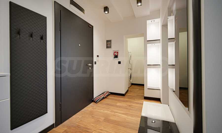 Apartament wykończony jest materiałami wysokiej jakości i umeblowany stylowymi meblami.