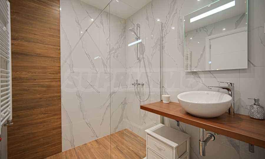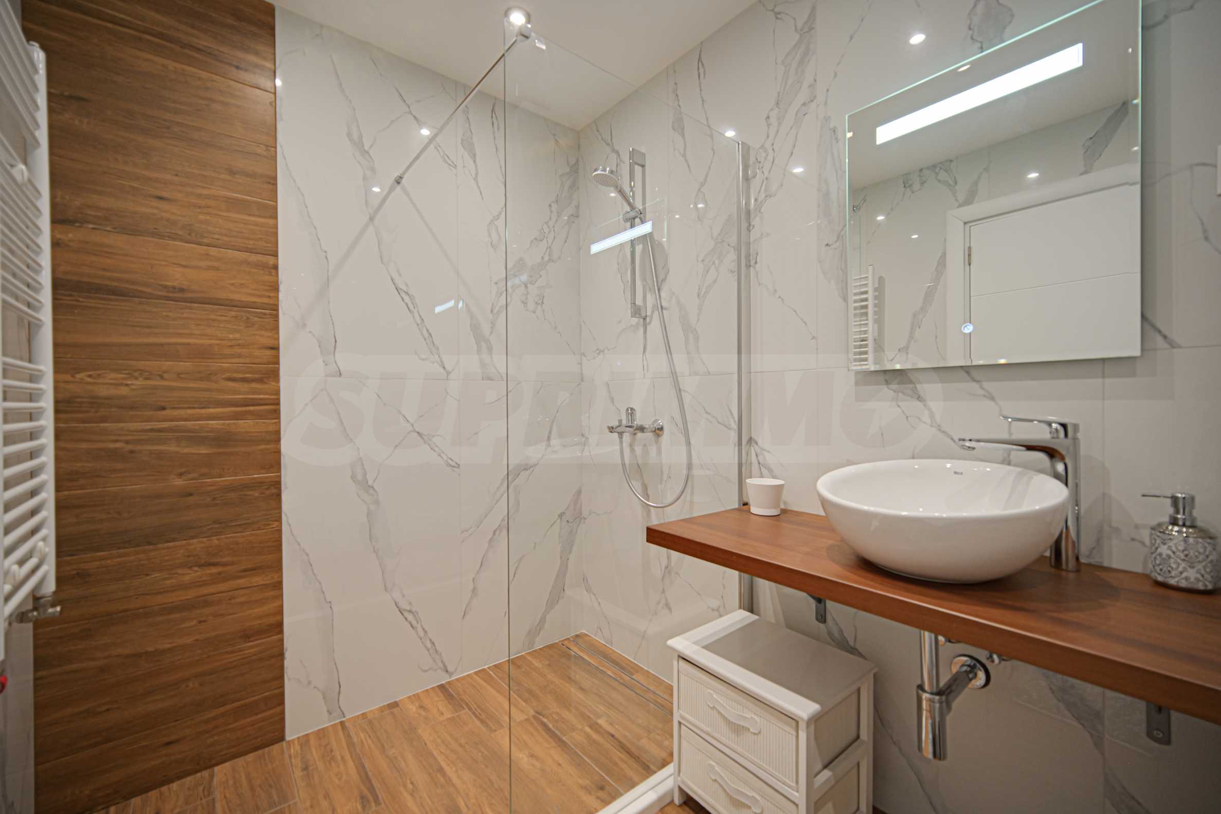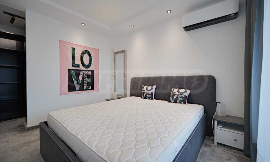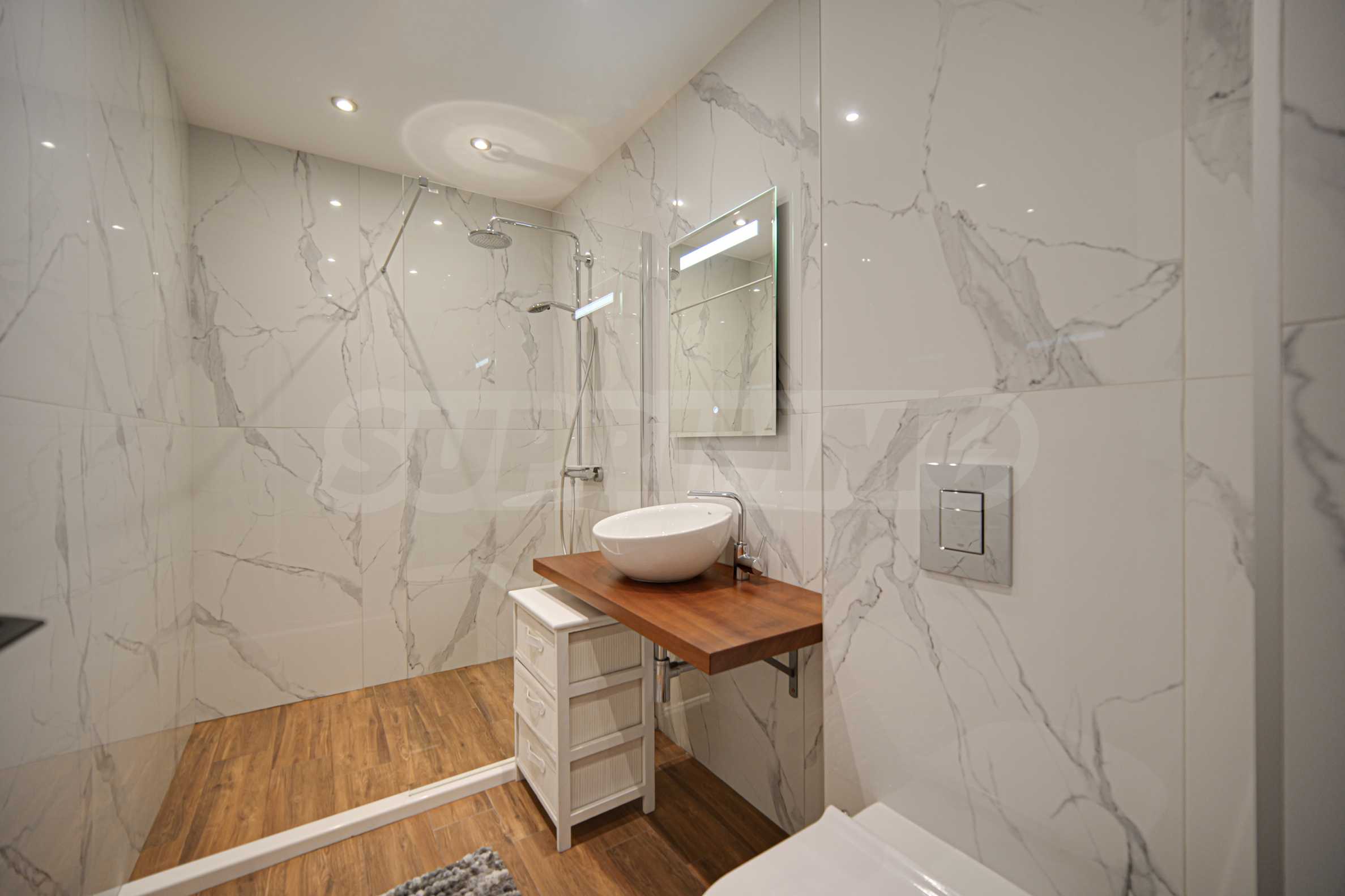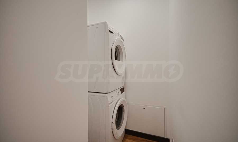 Apartament wykończony jest materiałami wysokiej jakości i umeblowany stylowymi meblami.
