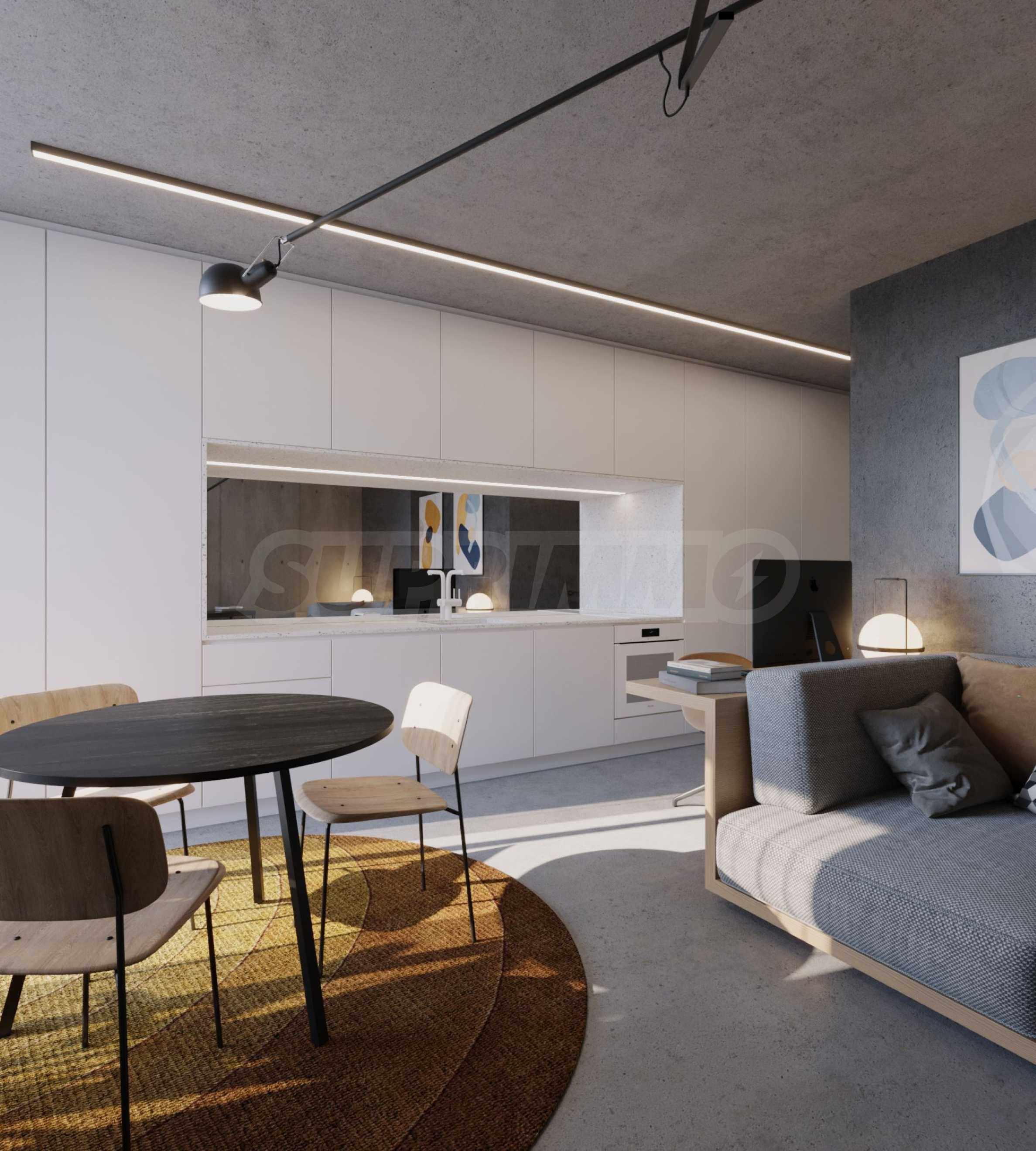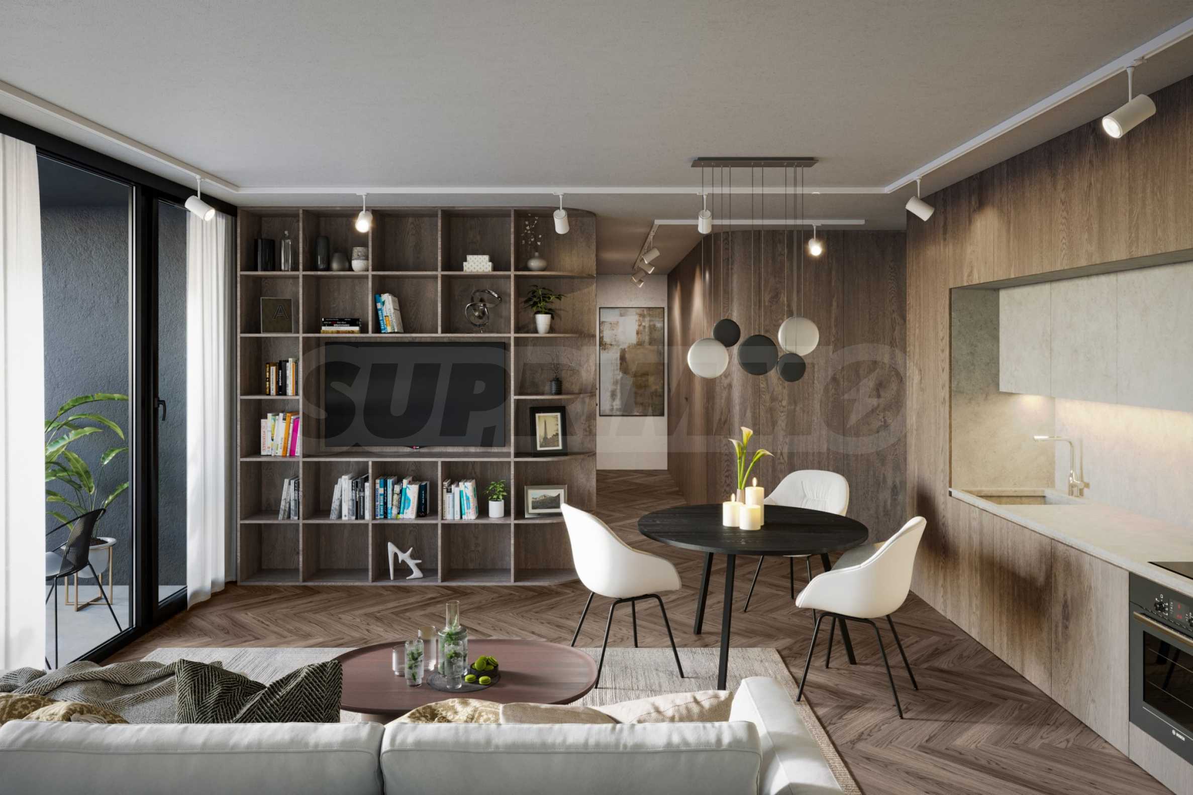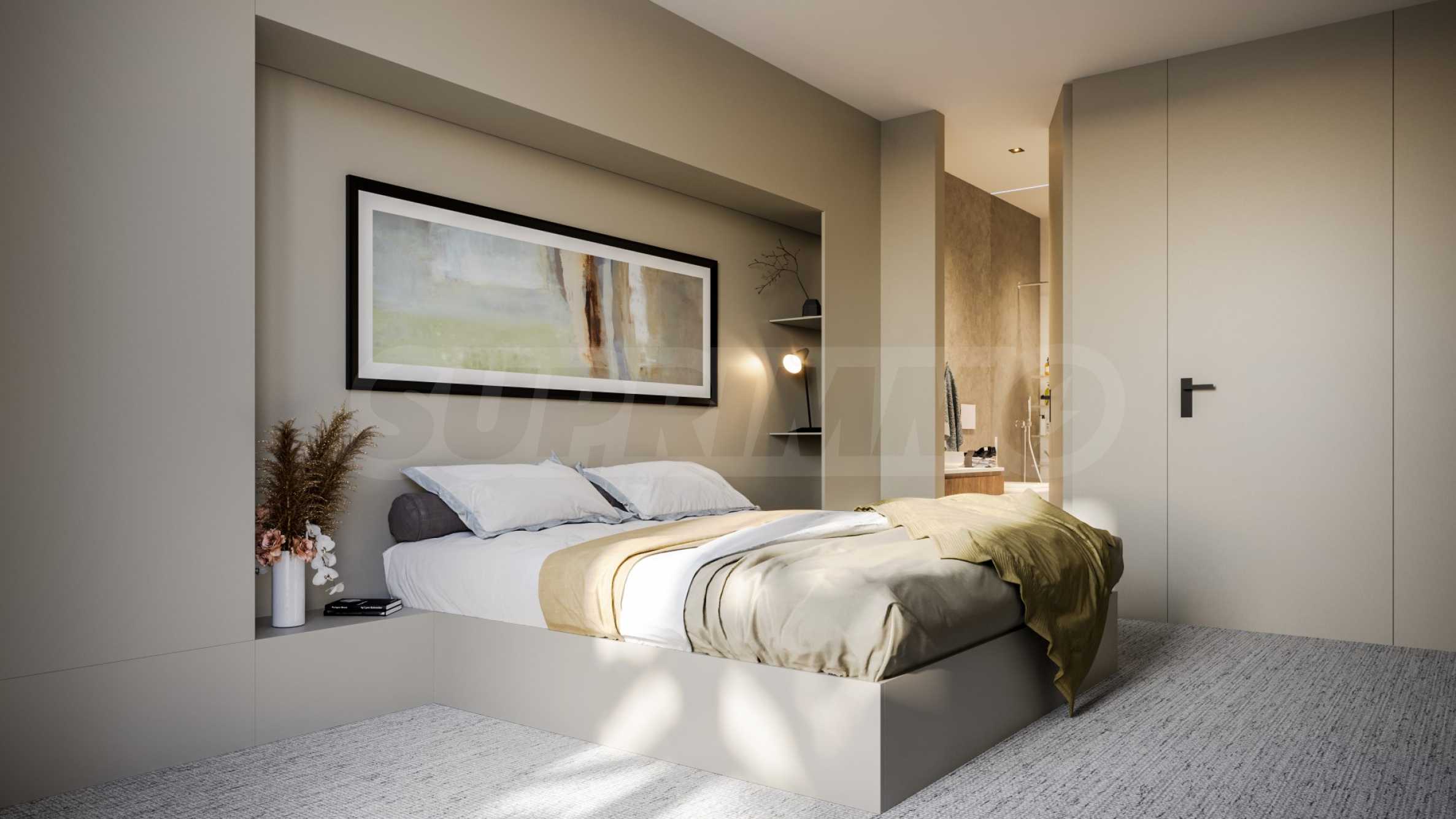 Prezentujemy Państwu na sprzedaż trzypokojowe mieszkanie o powierzchni całkowitej 111,77 m² (powierzchnia zabudowy – 92,20 m²), zlokalizowane na trzecim piętrze z sześciu w nowo wybudowanym budynku mieszkalnym o doskonałej koncepcji architektonicznej i nowoczesnej wizji, zlokalizowanym w dzielnicy „Ovcha Kupel 1”. Funkcjonalny układ mieszkania przedstawia się następująco: salon z aneksem kuchennym o powierzchni 28,25 m², dwie sypialnie o powierzchni 12,99 m² i 14,50 m², dwie łazienki z toaletami (3,72 m² i 3,79 m²), garderoba (2,13 m²), korytarz (4,50 m²) oraz taras (8,96 m²). Mieszkanie ma ekspozycję północno-wschodnią, a ogrzewanie będzie gazowe.