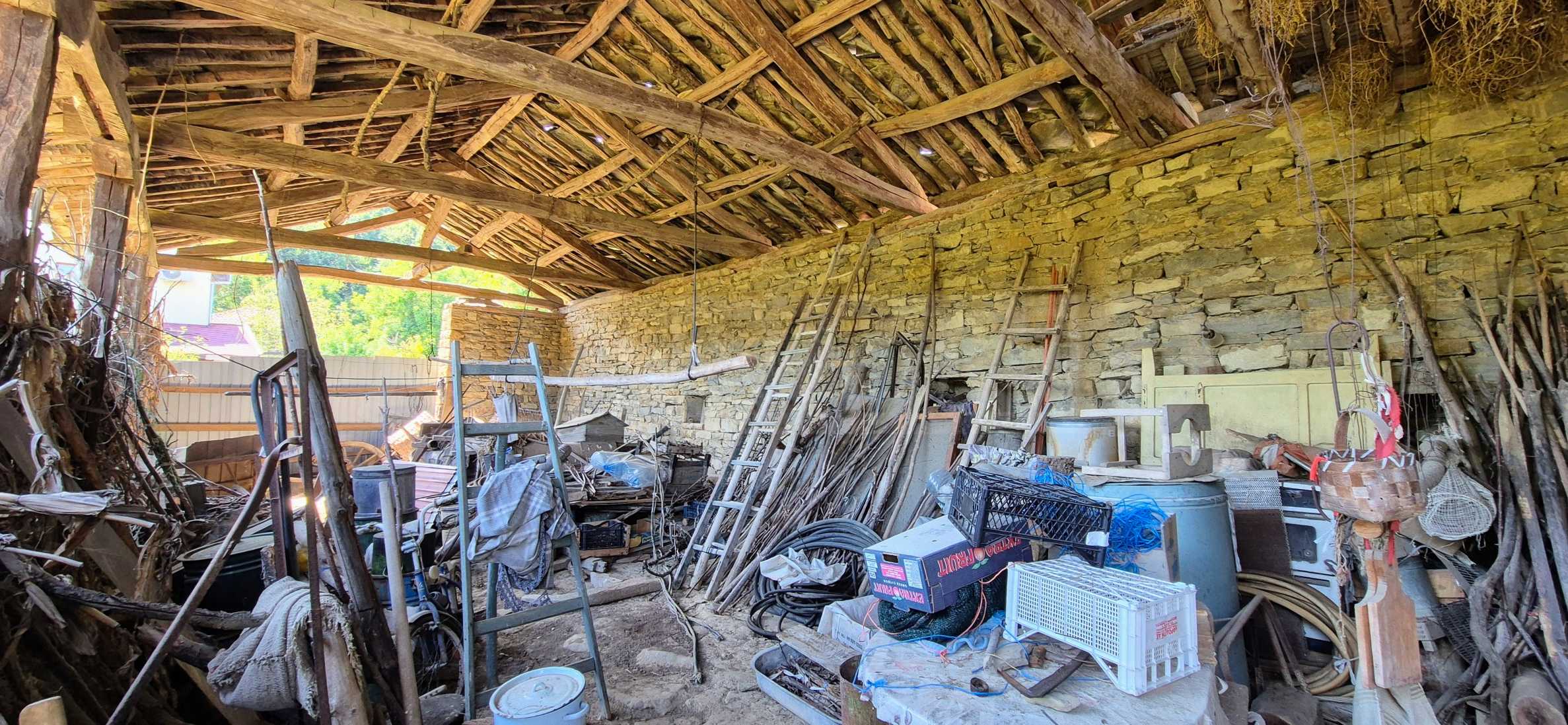 Na podwórku znajduje się masywna, kamienna szopa, idealna na przyszłą letnią kuchnię z jadalnią, miejsce do grillowania lub pracownię twórczą. Do dyspozycji jest studnia z czystą wodą, a także wolne miejsca na ogród, drzewa owocowe lub strefę relaksu.