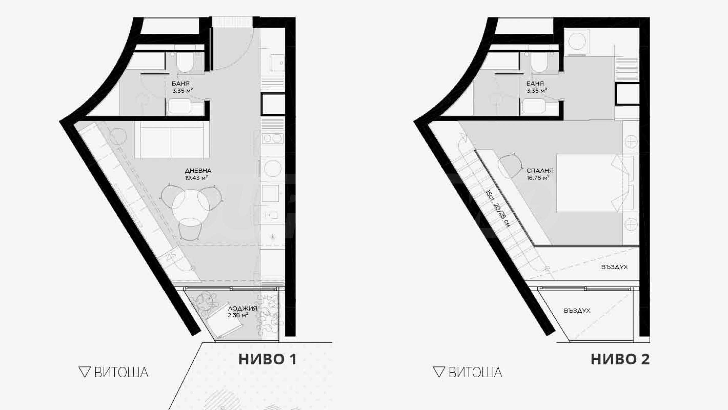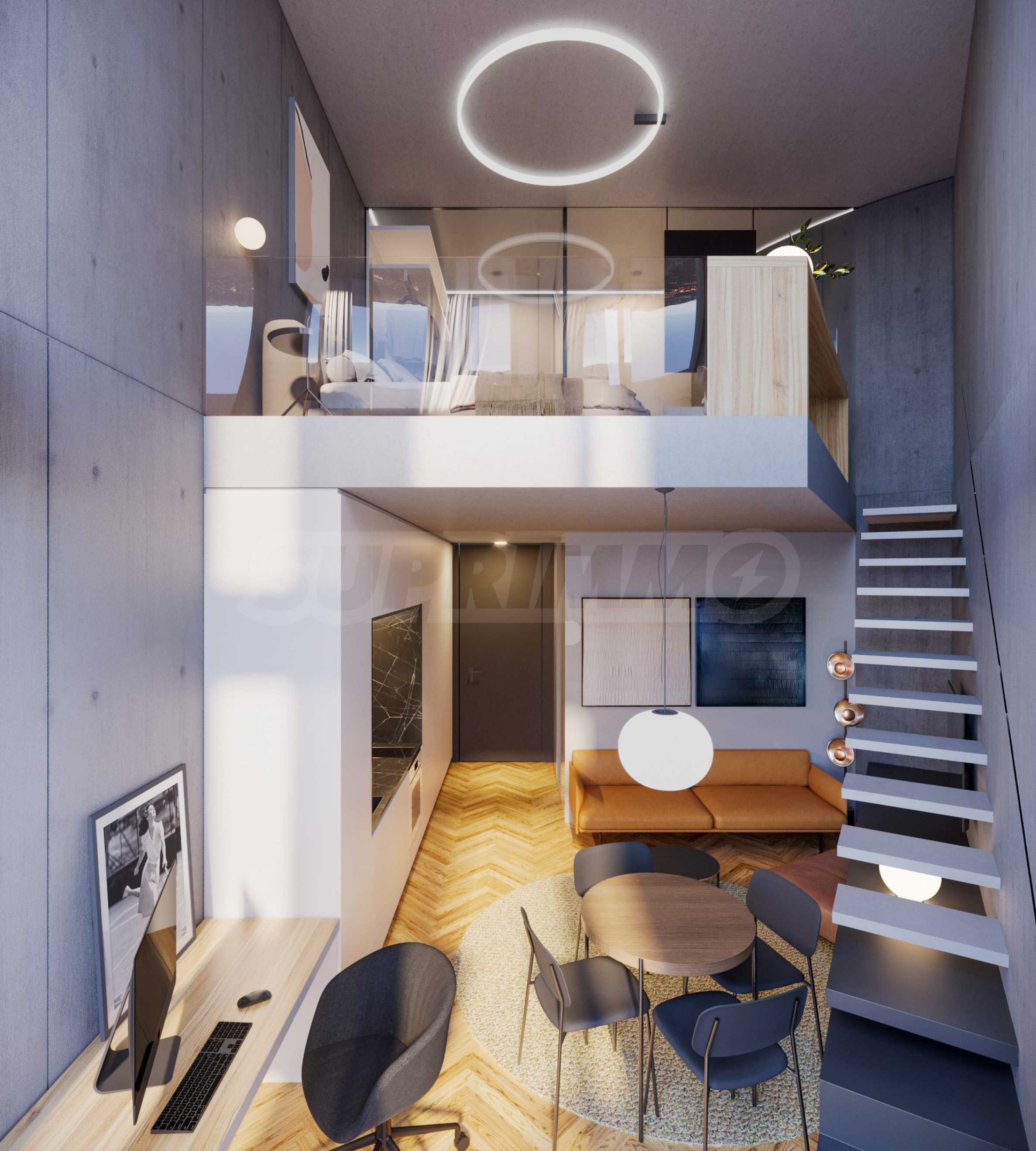 Prezentujemy Państwu na sprzedaż dwupokojowy loft o powierzchni całkowitej 64,29 m² (powierzchnia zabudowy 52,76 m²), zlokalizowany na pierwszym i drugim piętrze sześciopiętrowego, nowo wybudowanego budynku mieszkalnego w dzielnicy „Ovcha Kupel 1”. Układ funkcjonalny obejmuje: