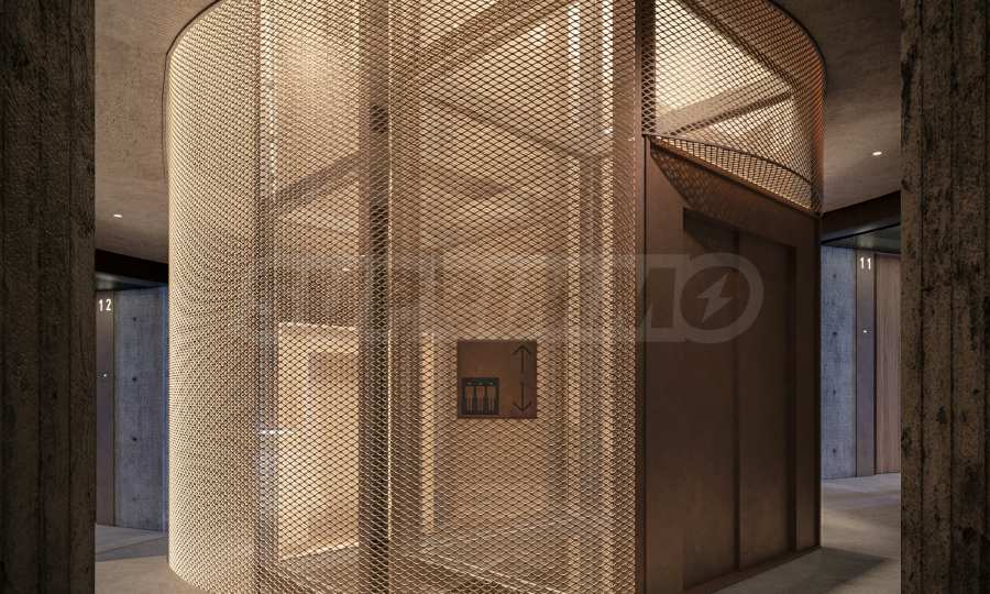 Budynek zachwyca wizją i nowoczesnymi rozwiązaniami. Na parterze znajdują się lokale usługowe i restauracja. Przestrzenie wspólne utrzymane są w industrialnym stylu z odsłoniętym betonem, Cortenem, designerskimi lampami i autorskimi plakatami, tworząc wrażenie muzeum sztuki nowoczesnej. Centralne, cylindryczne schody oświetlone są naturalnym światłem wpadającym z dachu.