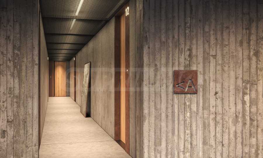 Budynek zachwyca wizją i nowoczesnymi rozwiązaniami. Na parterze znajdują się lokale usługowe i restauracja. Przestrzenie wspólne utrzymane są w industrialnym stylu z odsłoniętym betonem, Cortenem, designerskimi lampami i autorskimi plakatami, tworząc wrażenie muzeum sztuki nowoczesnej. Centralne, cylindryczne schody oświetlone są naturalnym światłem wpadającym z dachu.