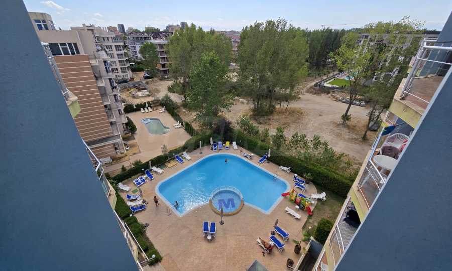 Oferujemy na sprzedaż przestronne mieszkanie jednopokojowe, w kompleksie z basenem, zaledwie 500 metrów od plaży w Słonecznym Brzegu.