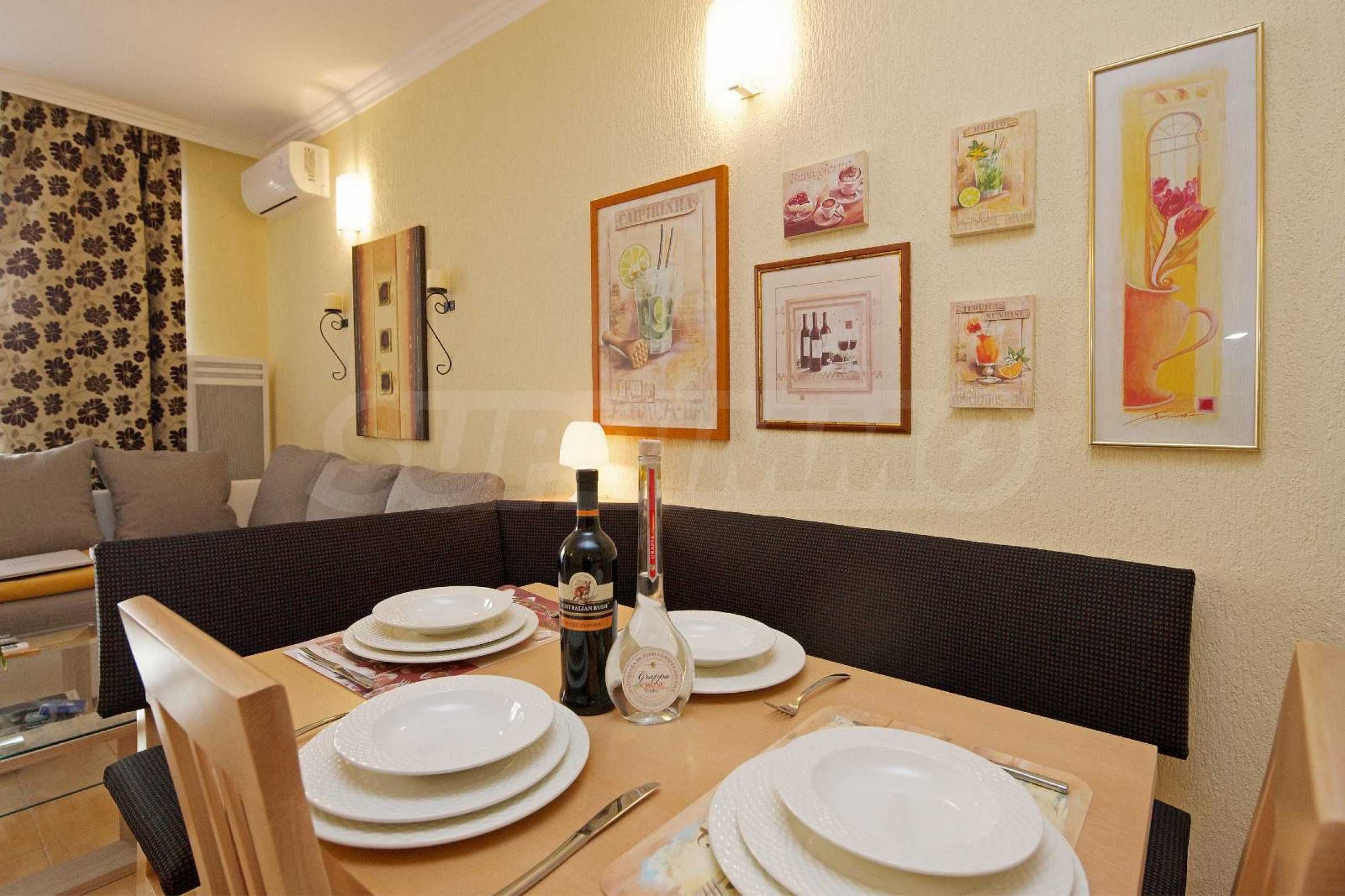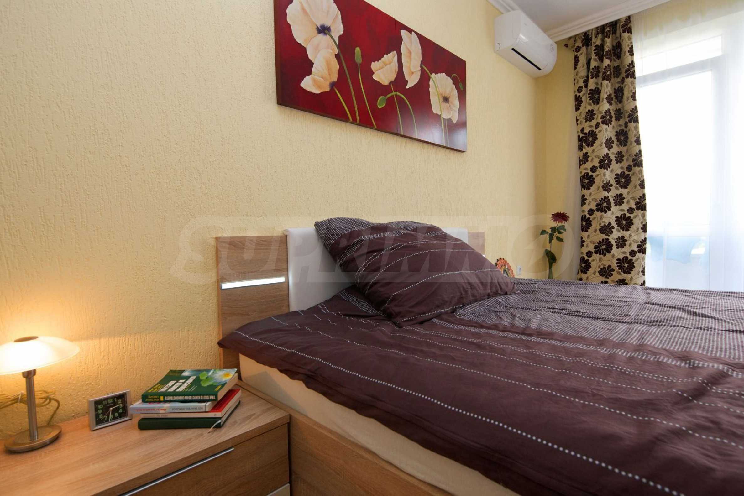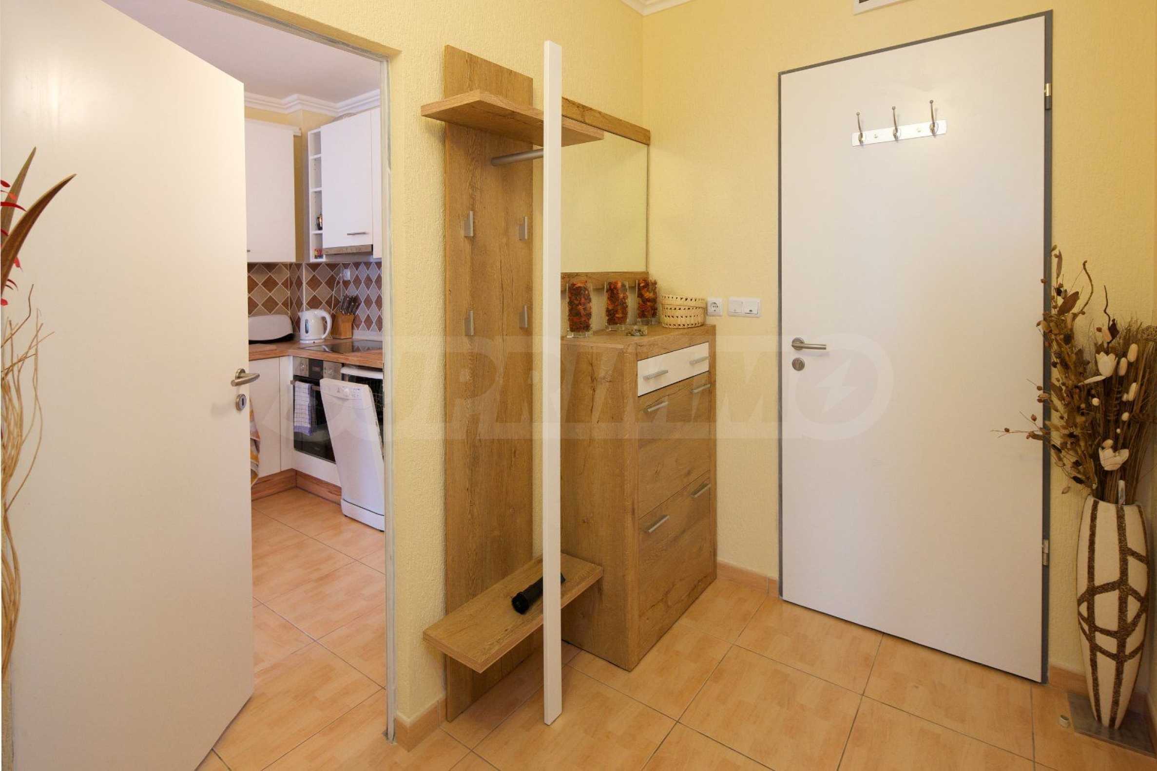 Oferujemy do sprzedaży schludne, przytulne mieszkanie jednopokojowe w kompleksie z basenem, 200 m od centrum Słonecznego Brzegu, w cichej i spokojnej części kurortu, w pobliżu sklepu „Janet 4”.