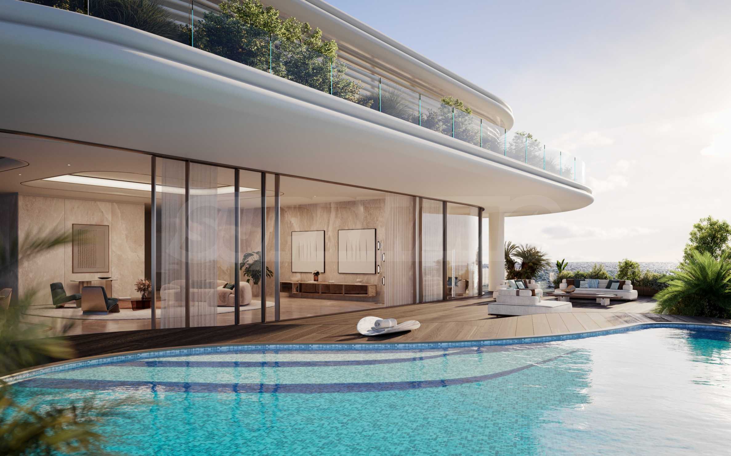 Przestrzenie zewnętrzne stanowią przedłużenie luksusu wewnątrz – przestronne tarasy, prywatny dziedziniec i prywatny basen oraz widoki na kanał tworzą idealną równowagę między prywatnością a przyjemnością.