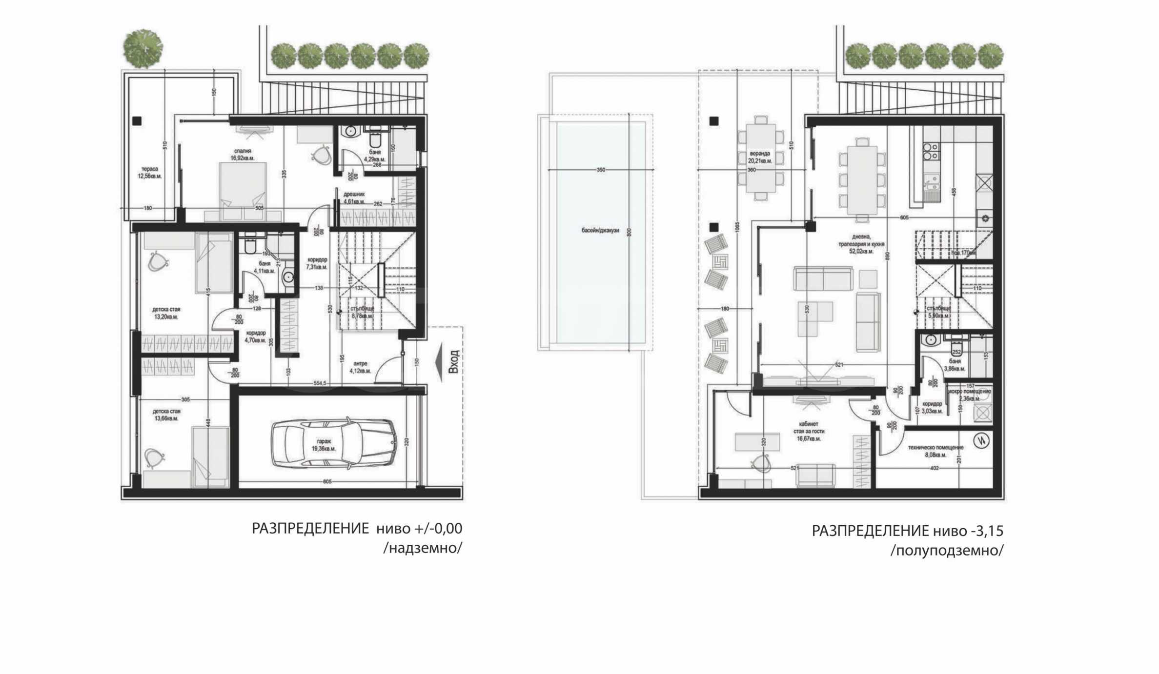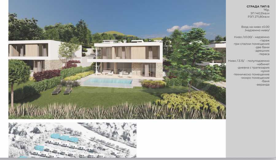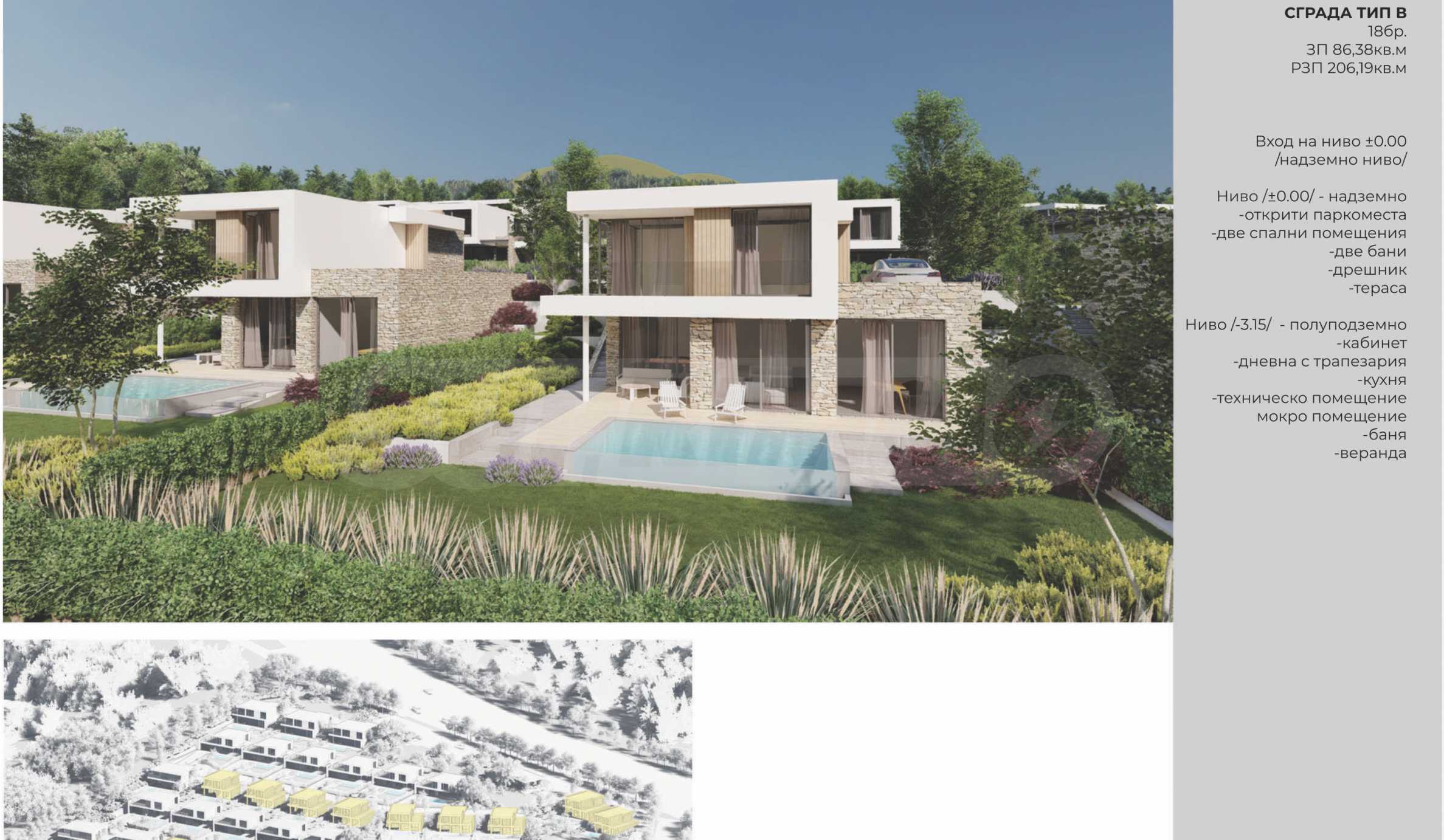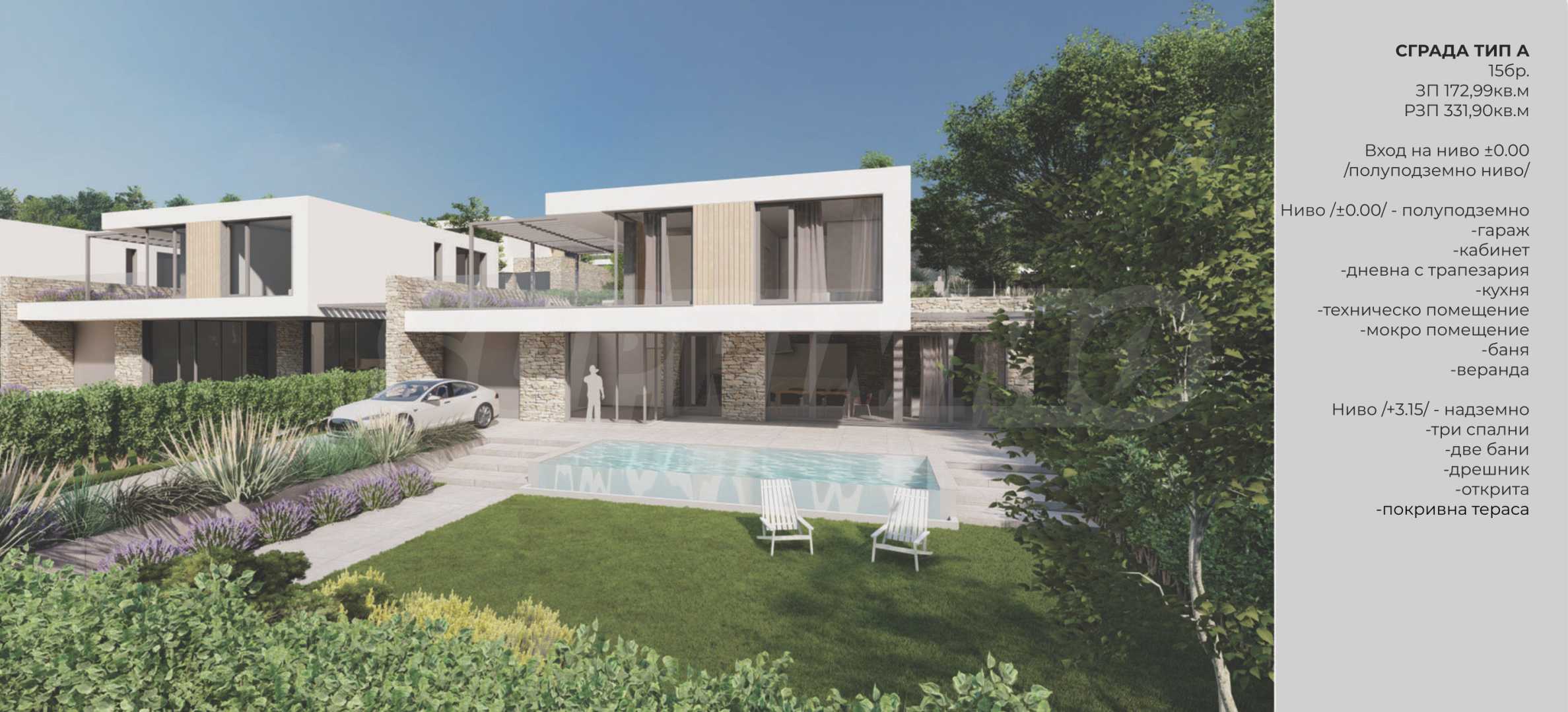 Projekt został opracowany z dbałością o środowisko naturalne, harmonię architektoniczną i komfort przyszłych mieszkańców. Każdy dom posiada ogród, werandę, taras widokowy i własny basen.