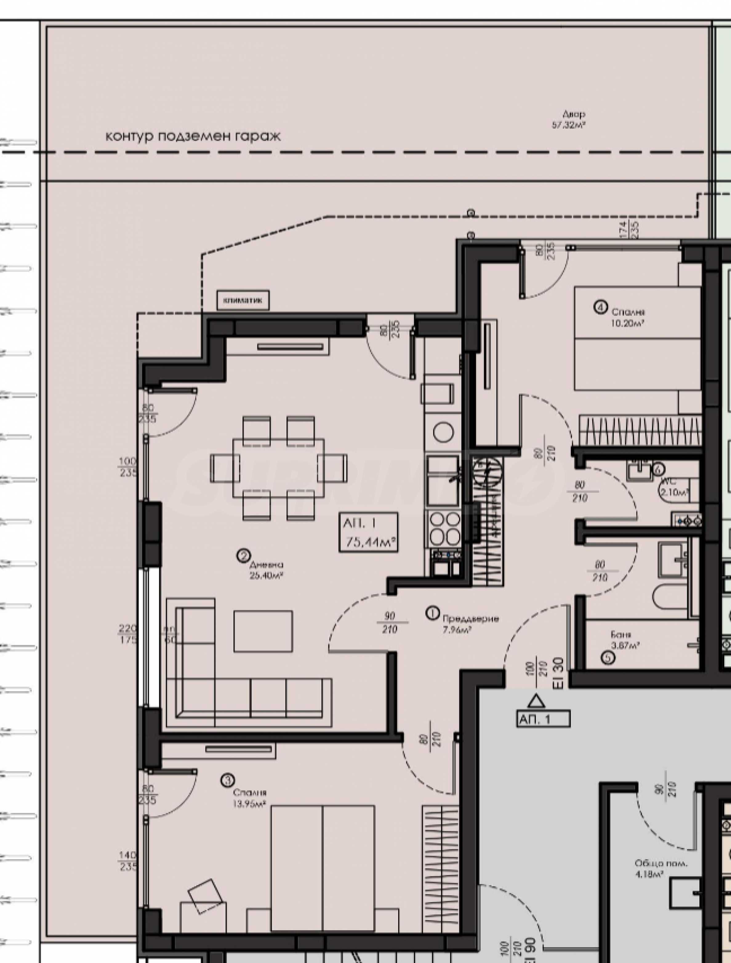 Prezentujemy komfortowe, dwupokojowe mieszkanie w nowym, nowoczesnym kompleksie składającym się z dwóch nowoczesnych budynków, położonym w jednej z najbardziej obiecujących i dynamicznie rozwijających się dzielnic Sofii – „Malinova Dolina”. Okolica wyróżnia się doskonałą infrastrukturą, dogodnym połączeniem z każdą częścią miasta oraz zrównoważonym, miejskim otoczeniem, zapewniającym poczucie spokoju i komfortu.