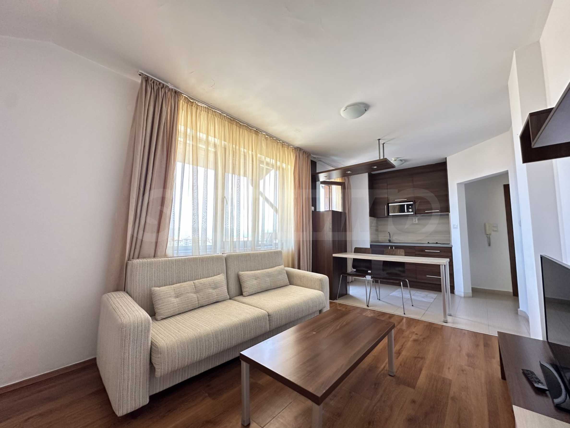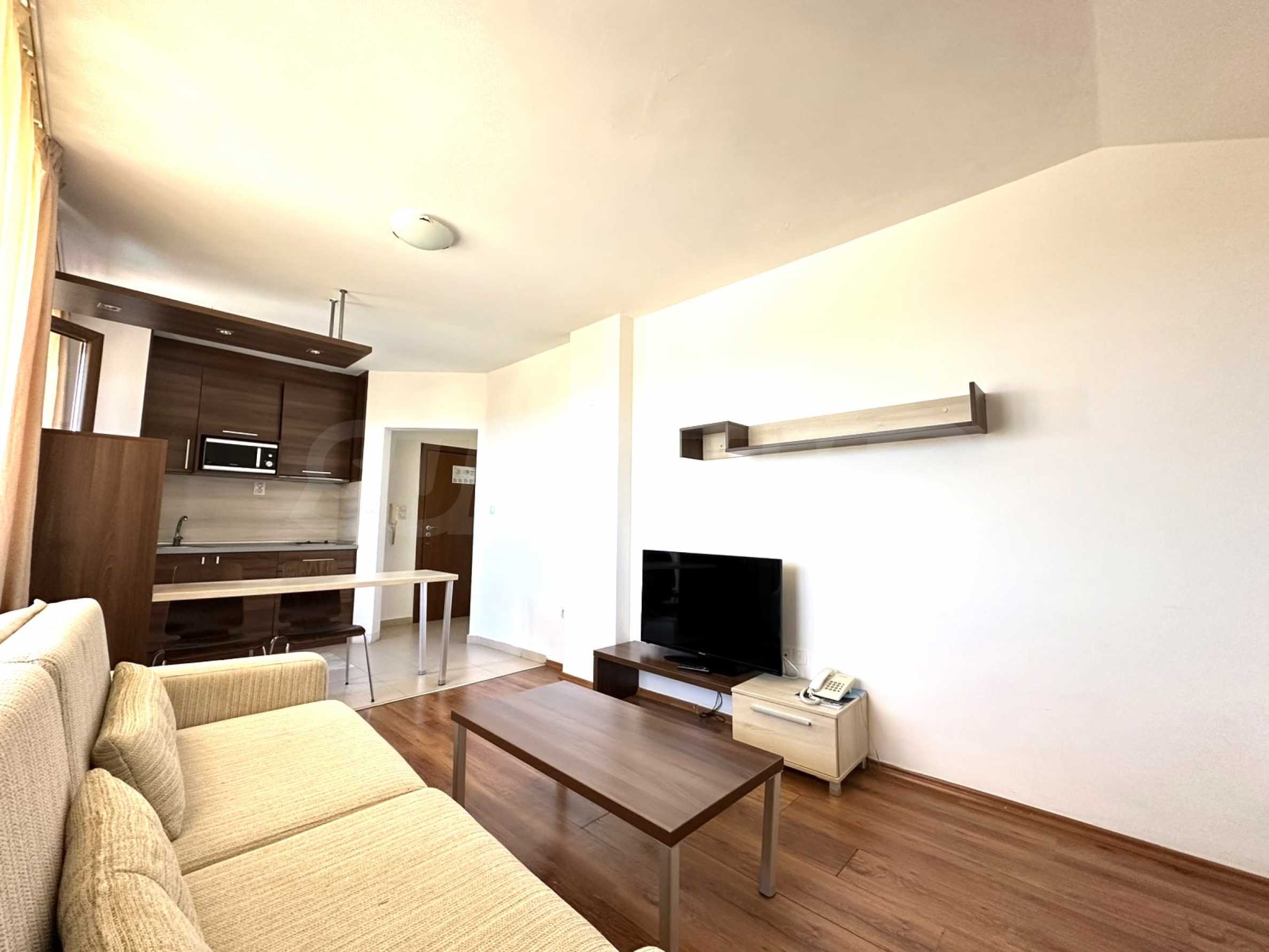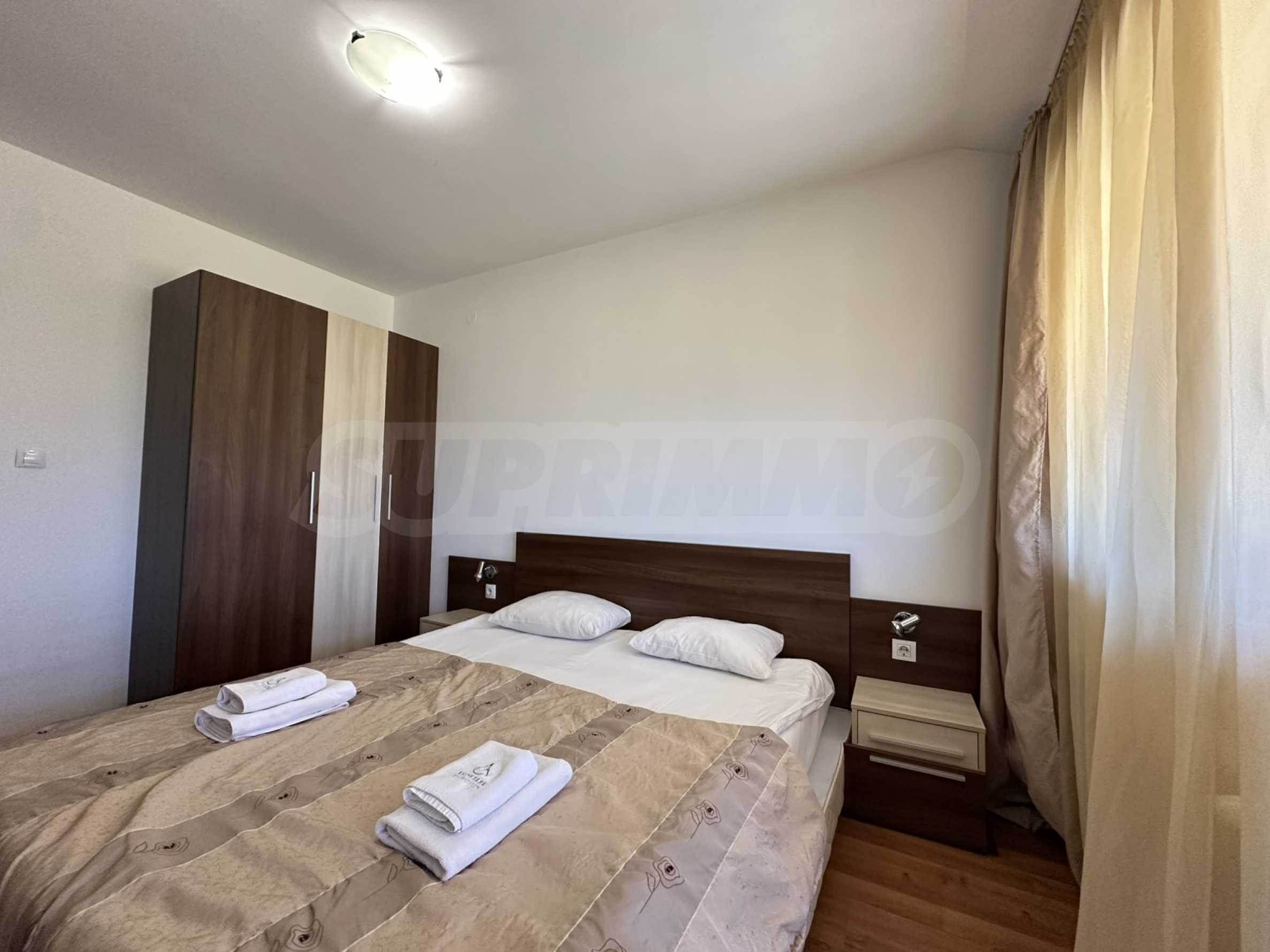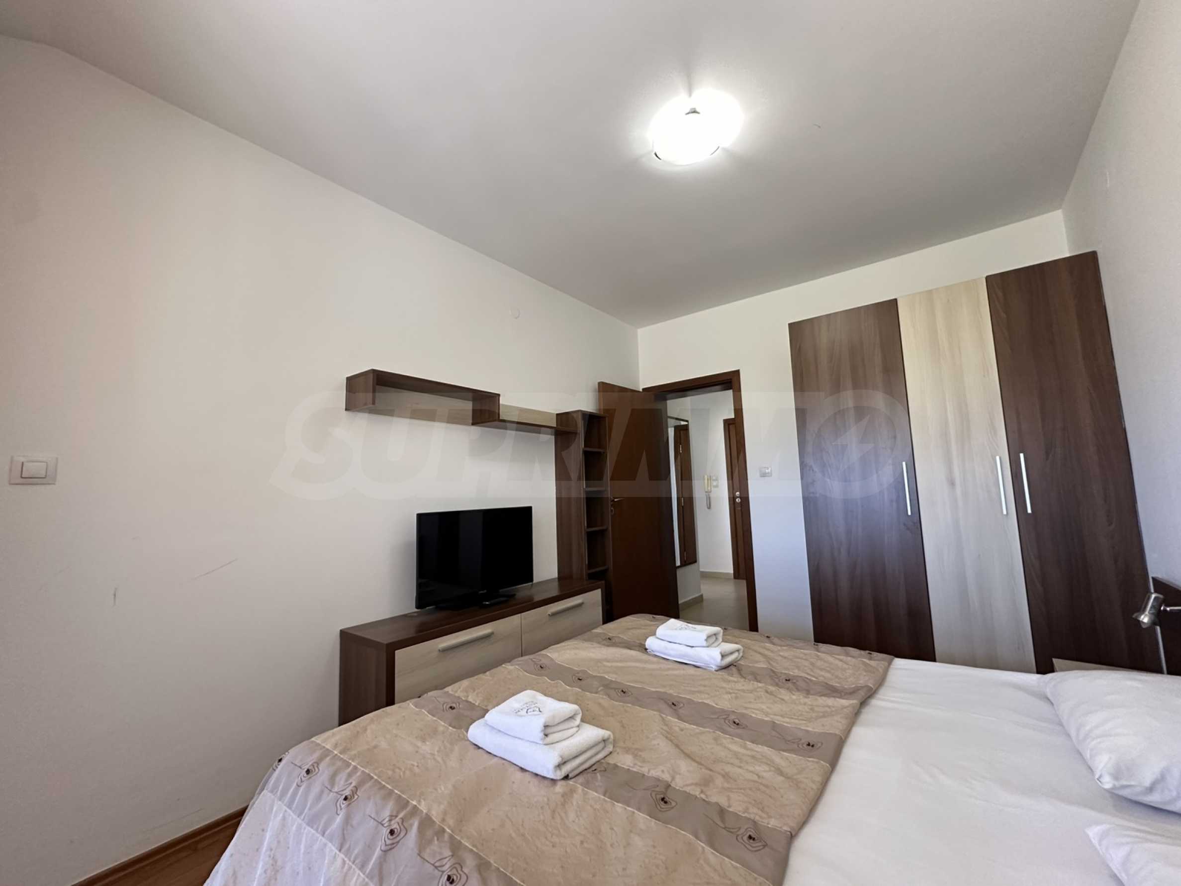 Prezentujemy nowoczesny, dwupokojowy apartament z komfortowym umeblowaniem i niezbędnym wyposażeniem, będący częścią luksusowego, strzeżonego kompleksu „Belvedere Holiday Club”.