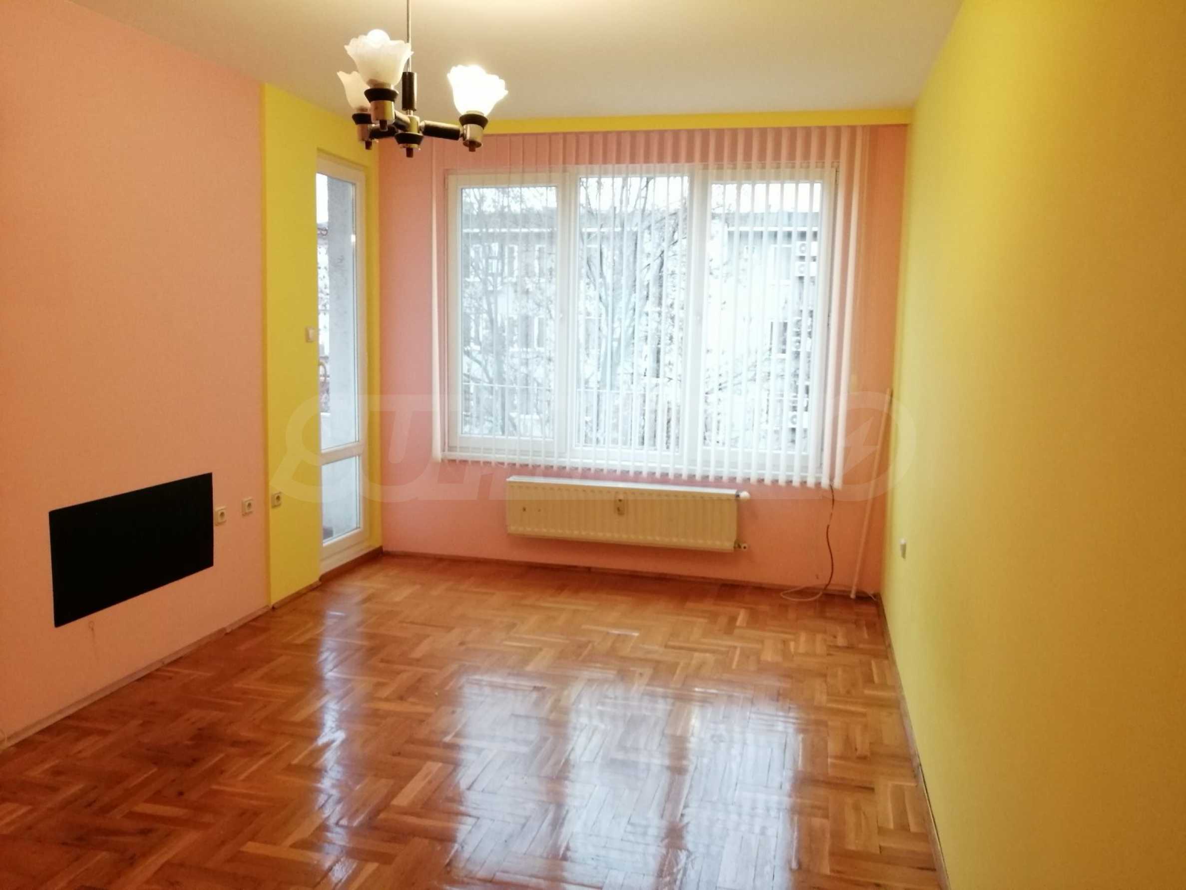 Prezentujemy słoneczne i przytulne mieszkanie z jedną sypialnią, z pełną ekspozycją południową, położone przy cichej i zamkniętej ulicy w preferowanej dzielnicy „Geo Milev”.