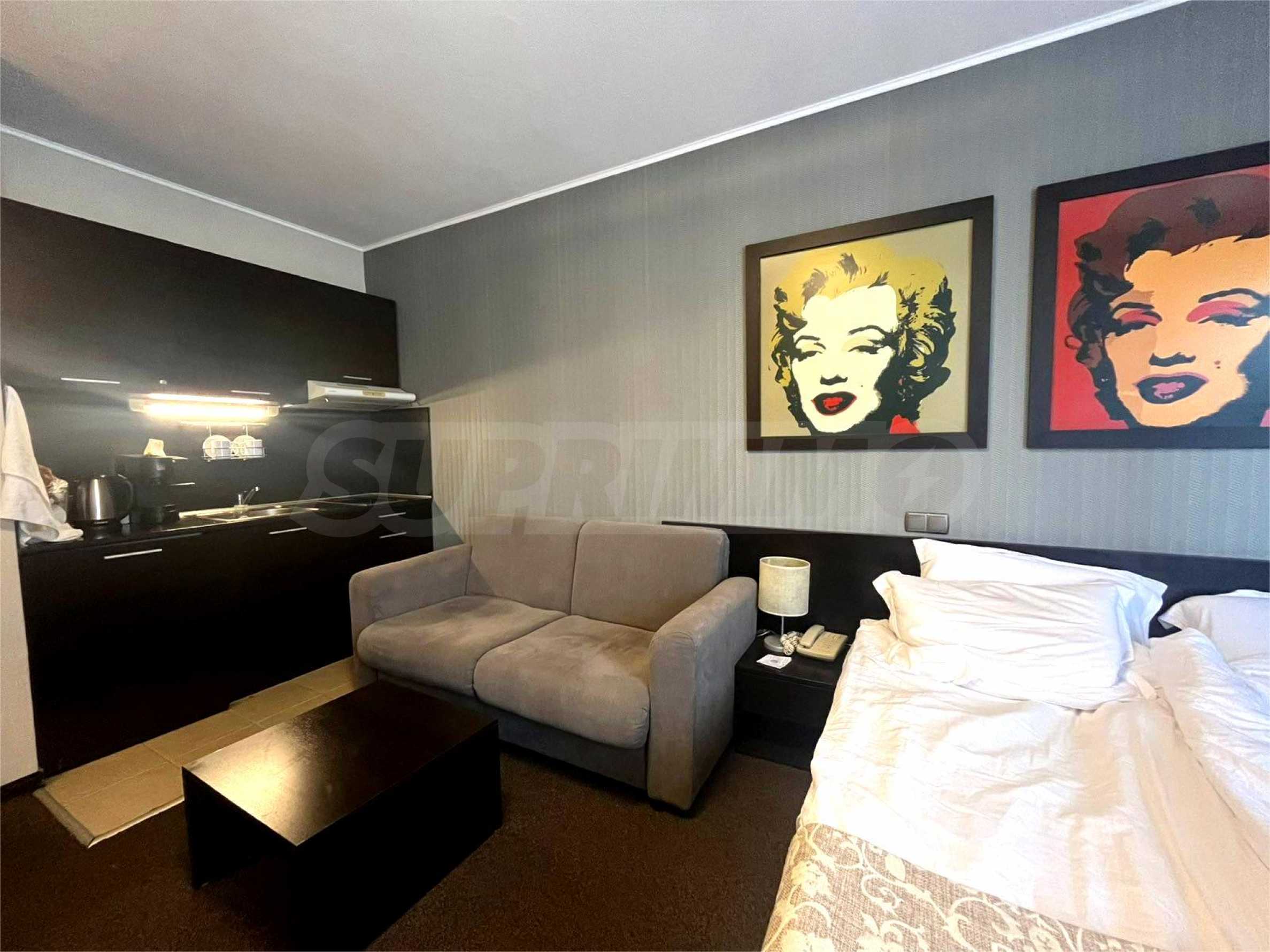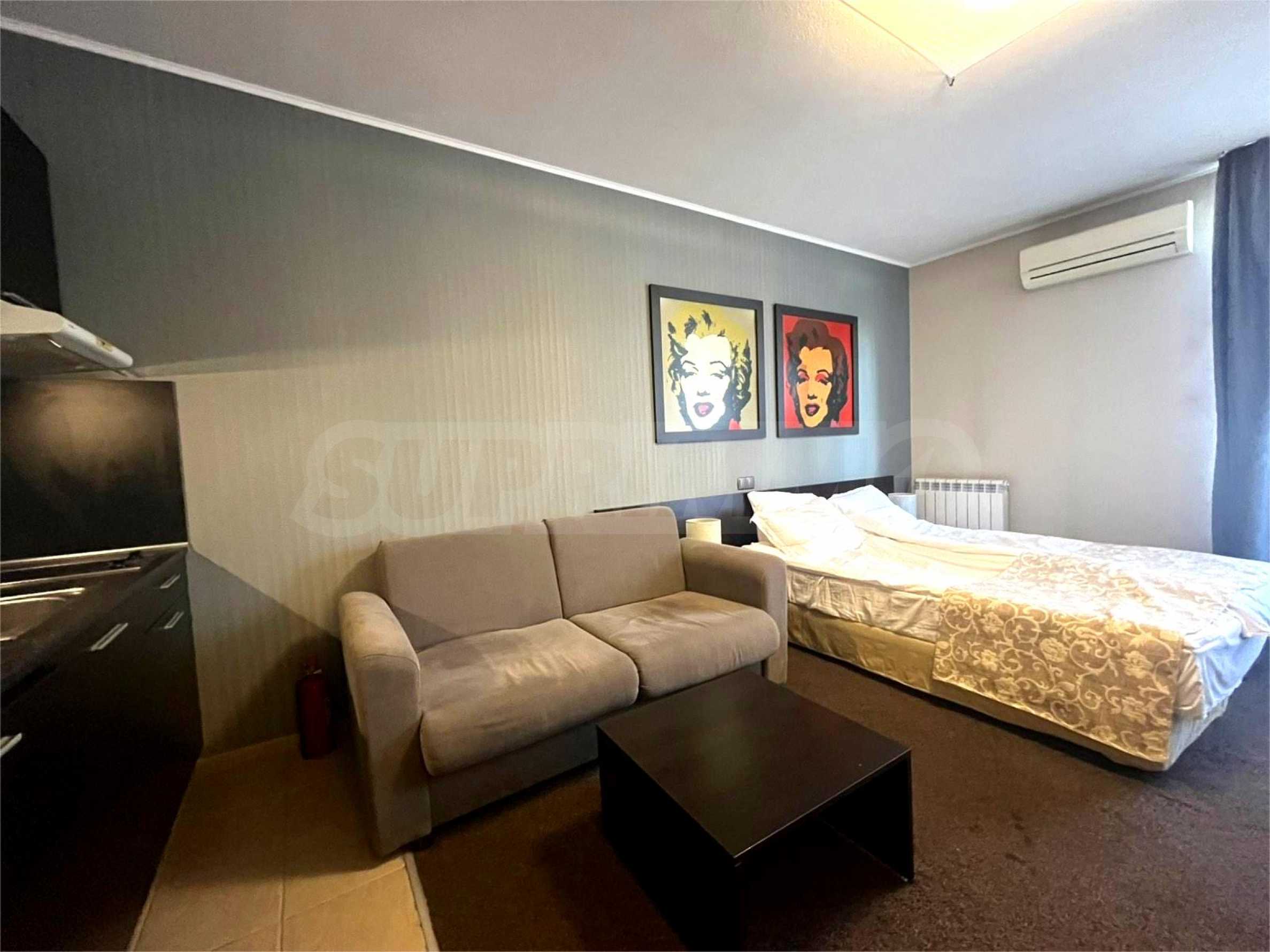 Oferujemy studio zlokalizowane na drugim piętrze w jednym z najpopularniejszych apartamentów w Bansko – Lucky Bansko.