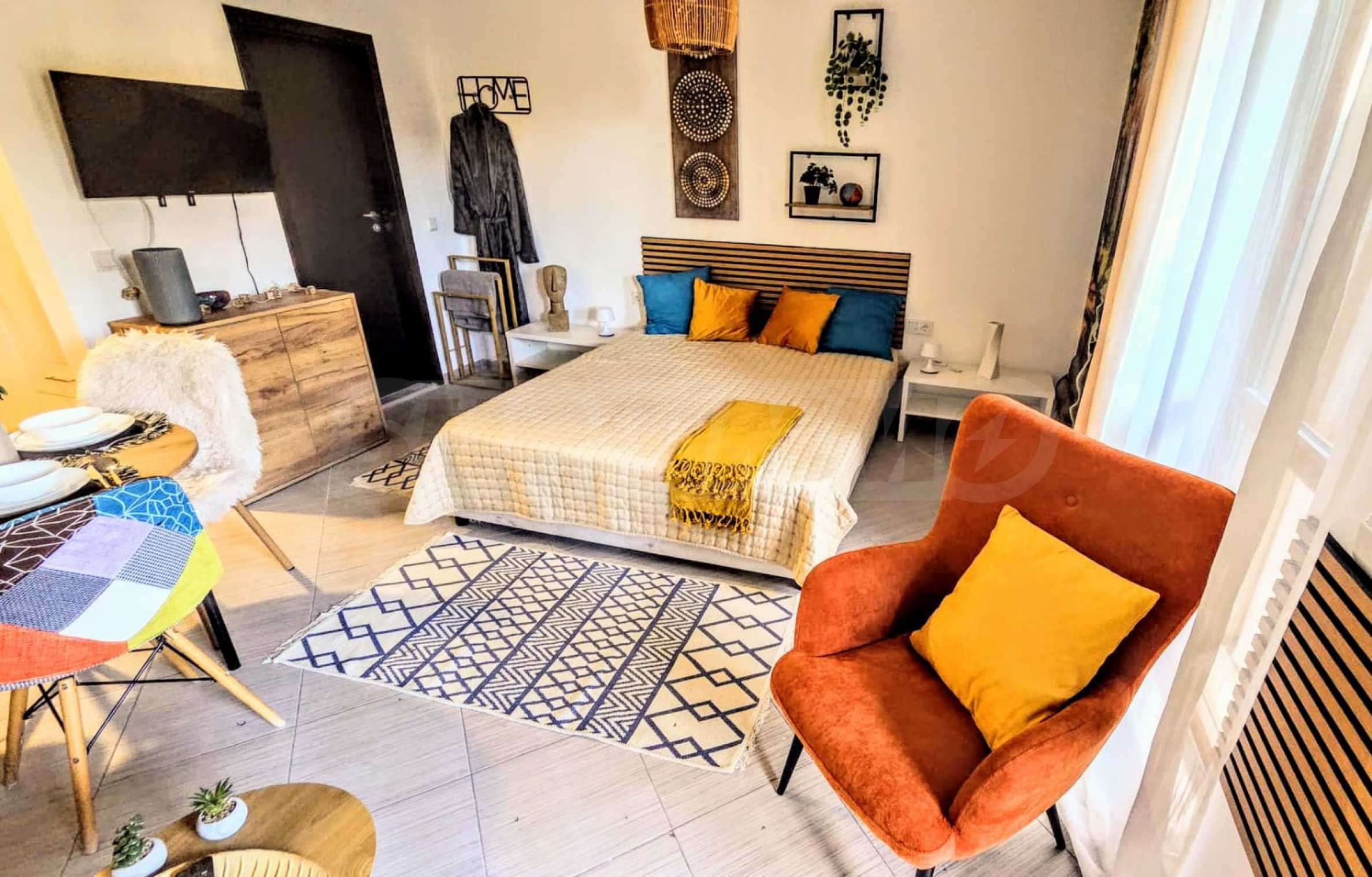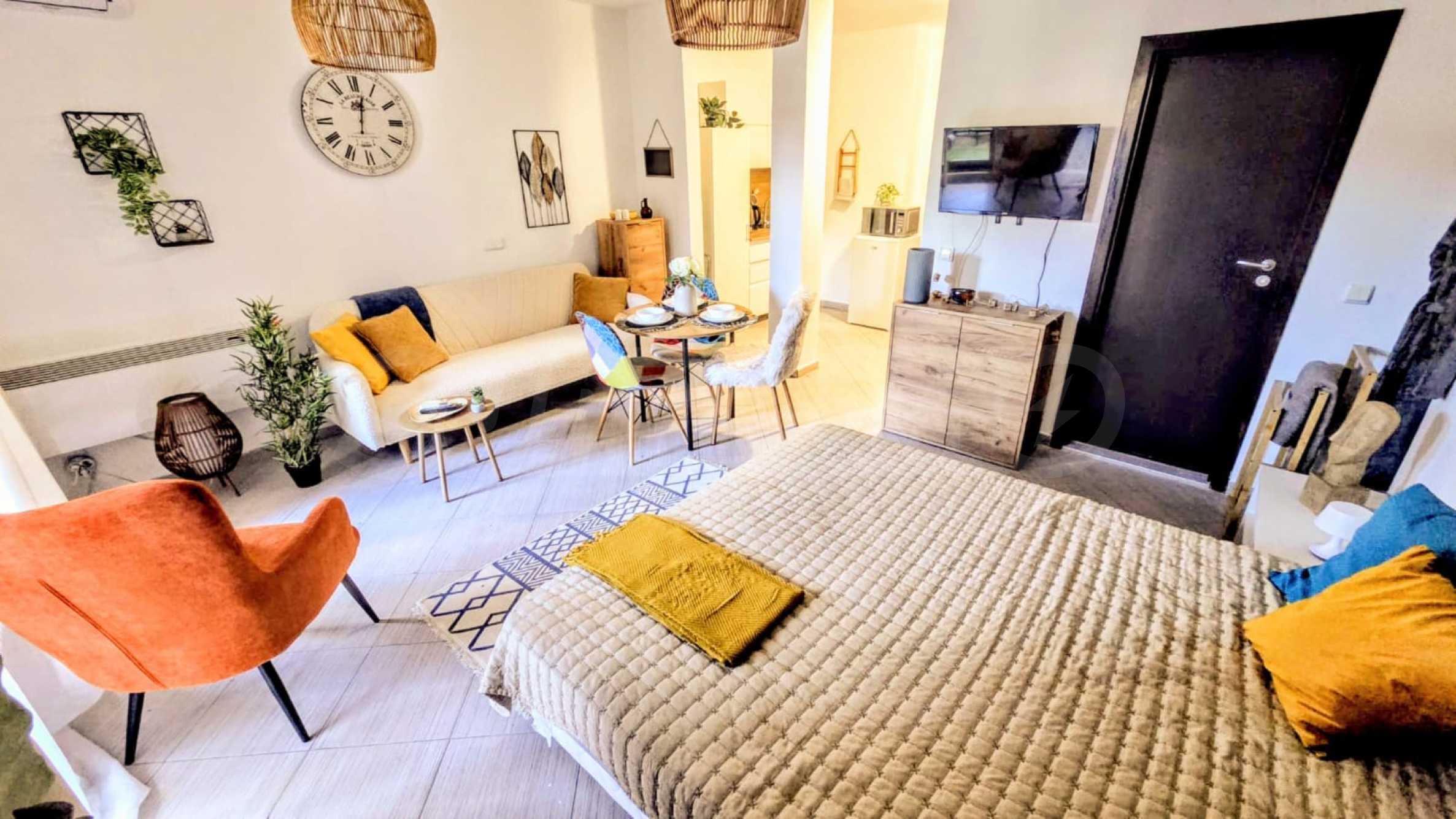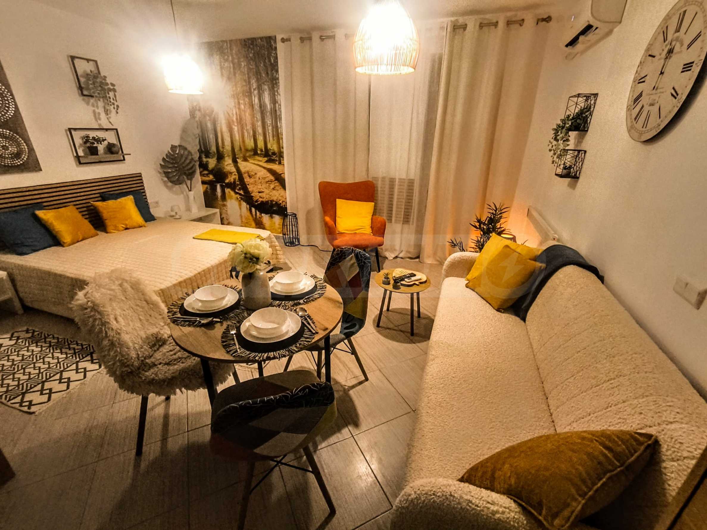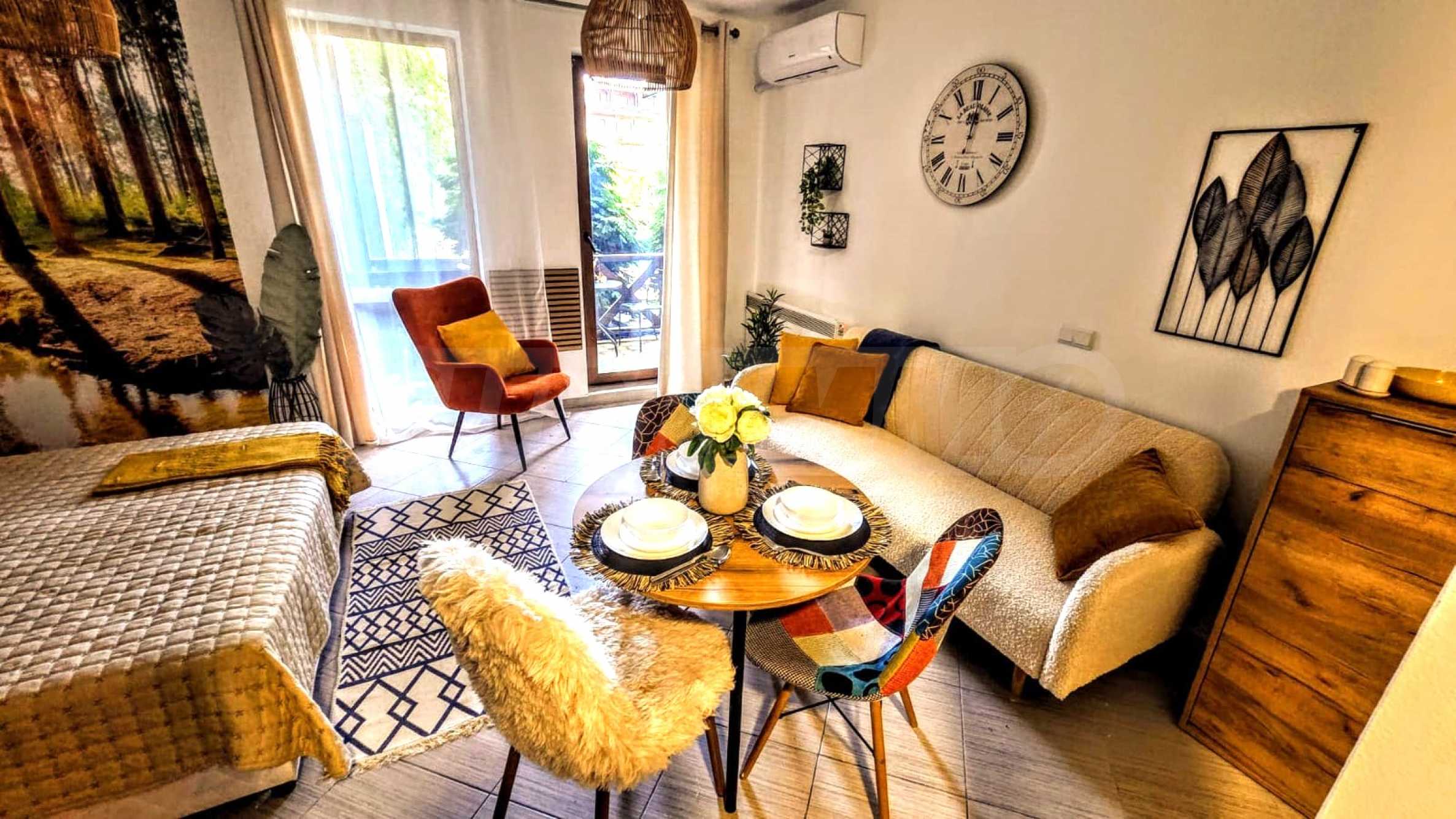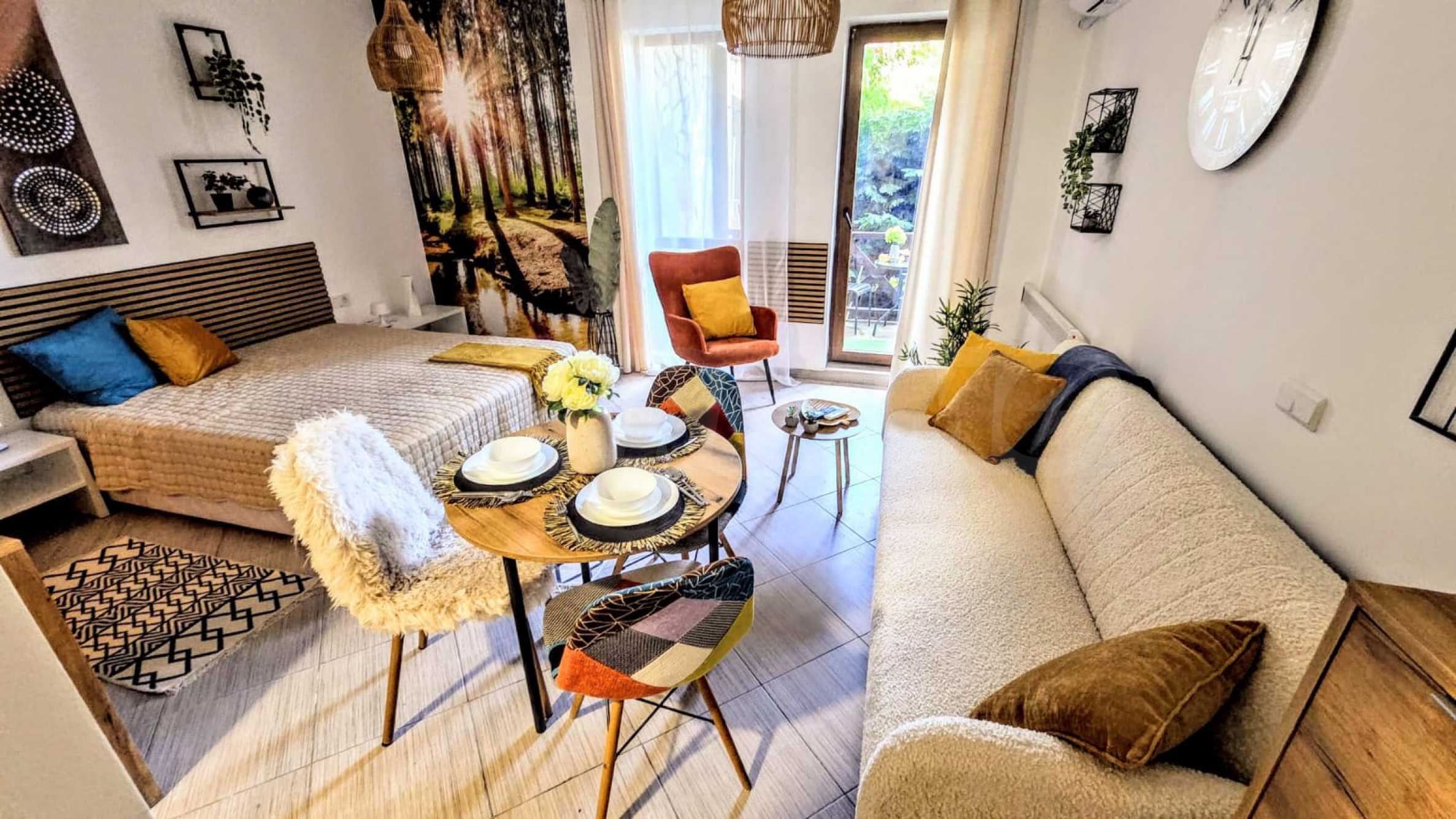 Prezentujemy przestronny i jasny apartament z jedną sypialnią w zamkniętym kompleksie, położonym pośród malowniczej przyrody na granicy Parku Pirin i 400 m od stacji początkowej kolejki gondolowej w popularnym górskim kurorcie Bansko.