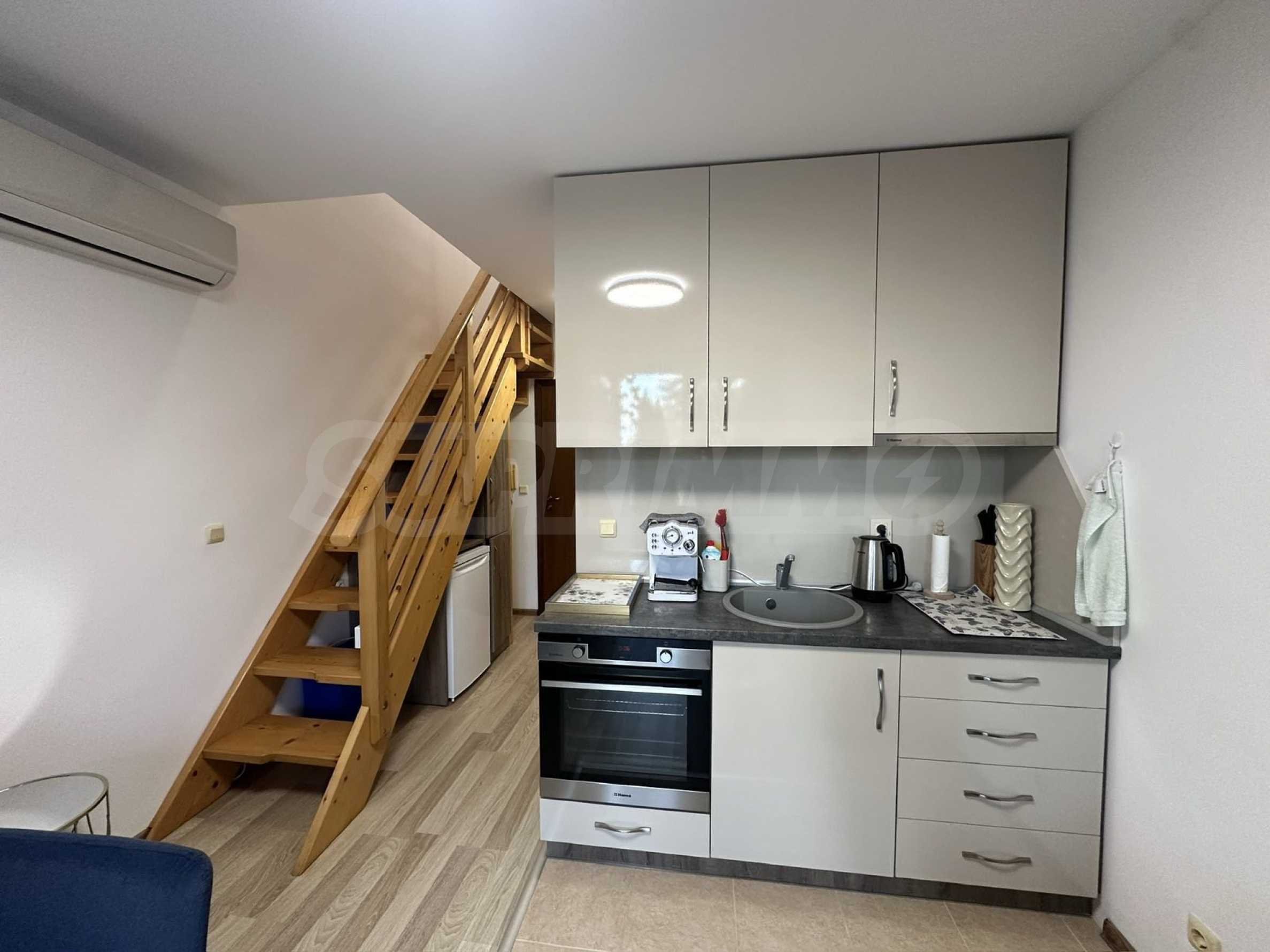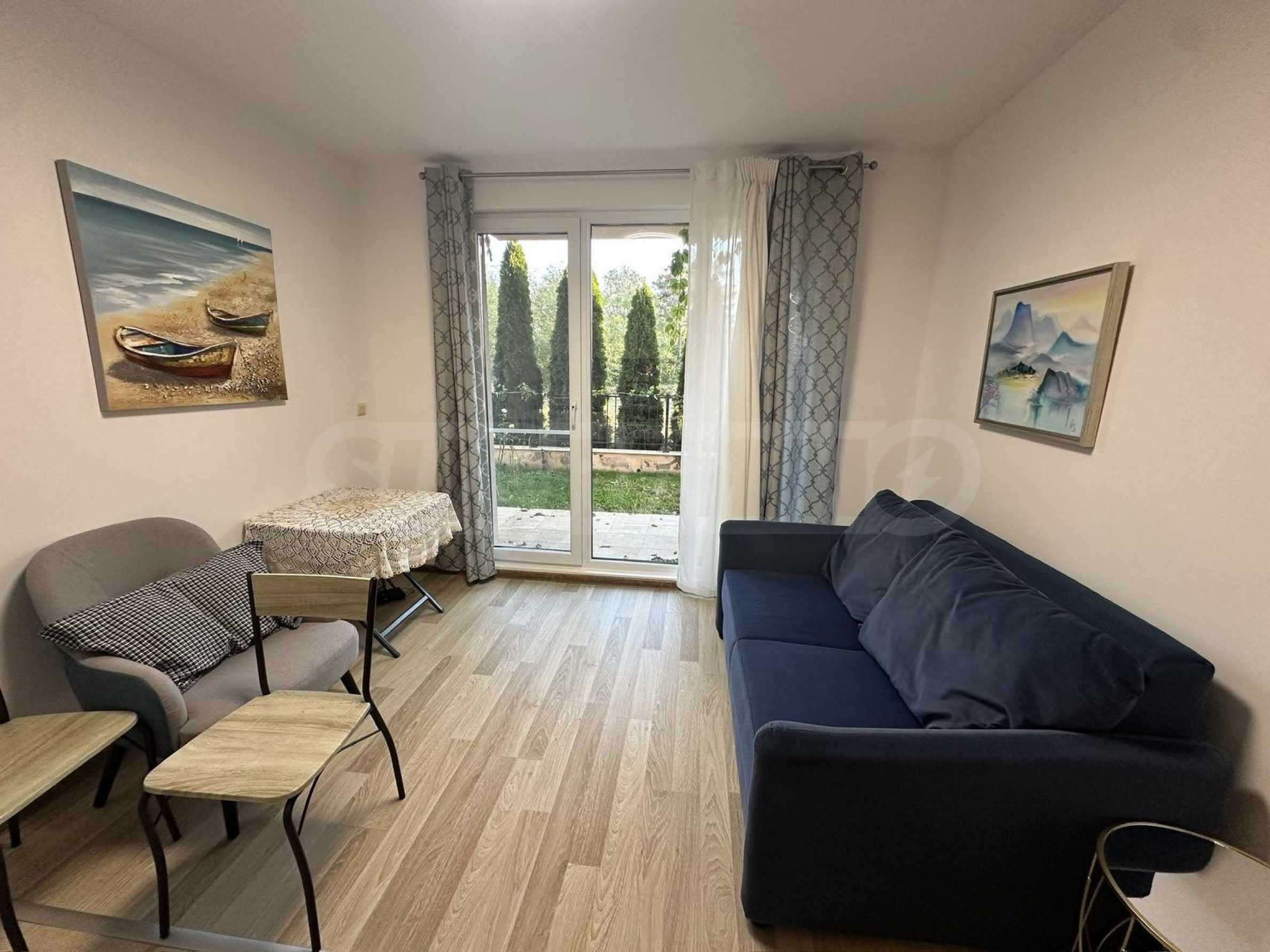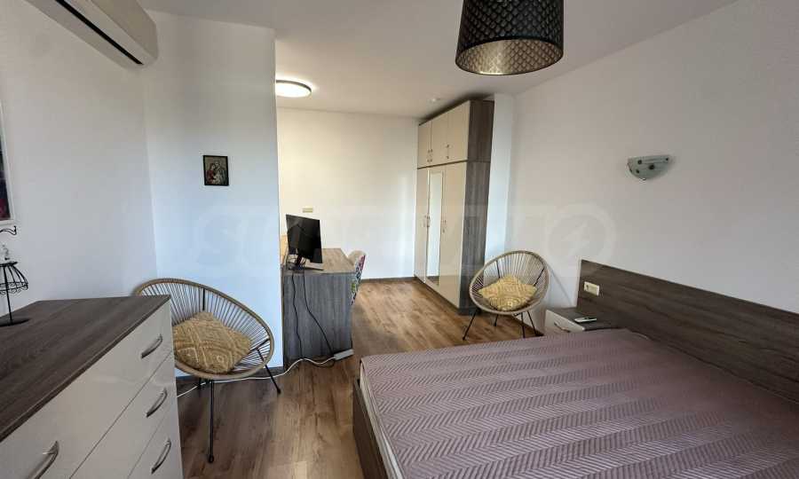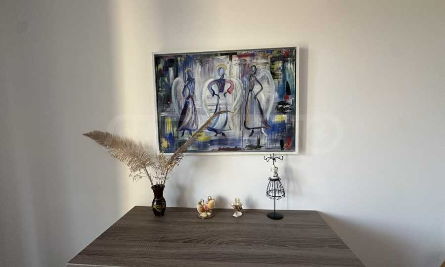 Apartament jest w pełni umeblowany i wyposażony z dbałością o szczegóły, a także posiada wszystko, co niezbędne do życia, takie jak meble i sprzęt AGD. Oferuje przytulność, komfort i niesamowity widok na morze.