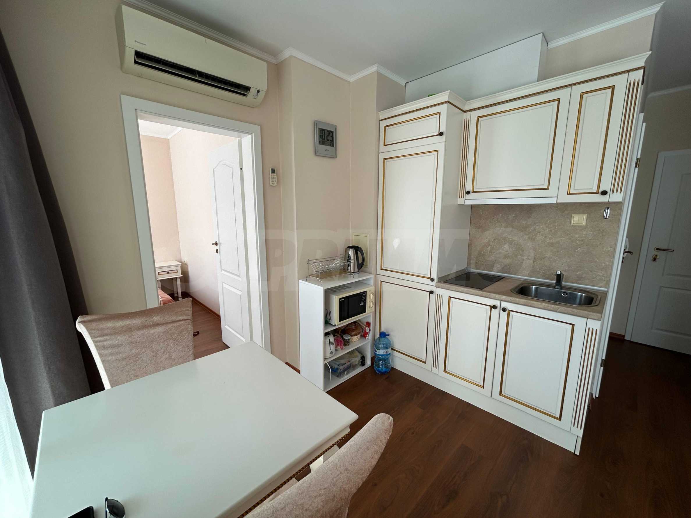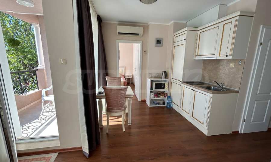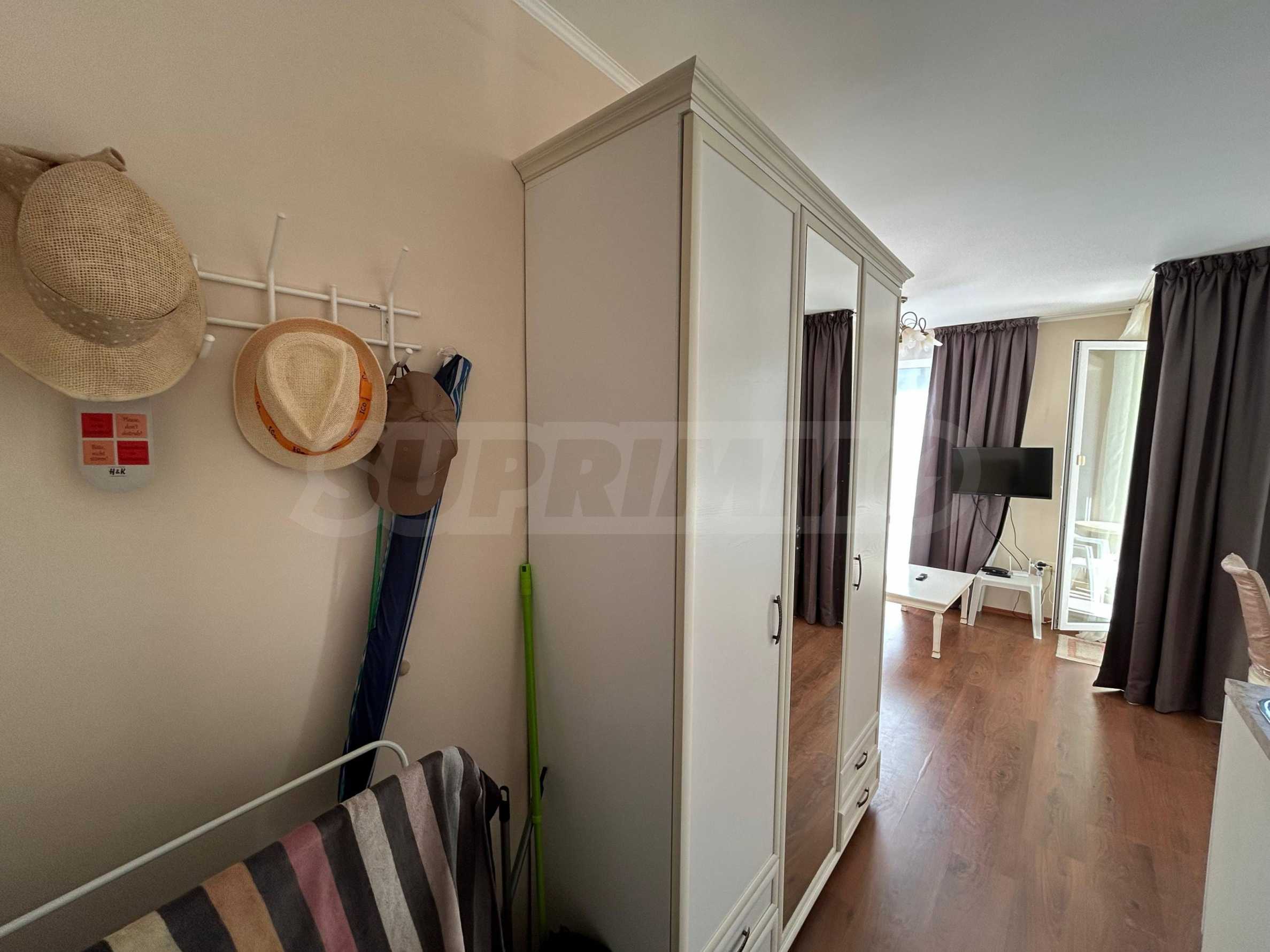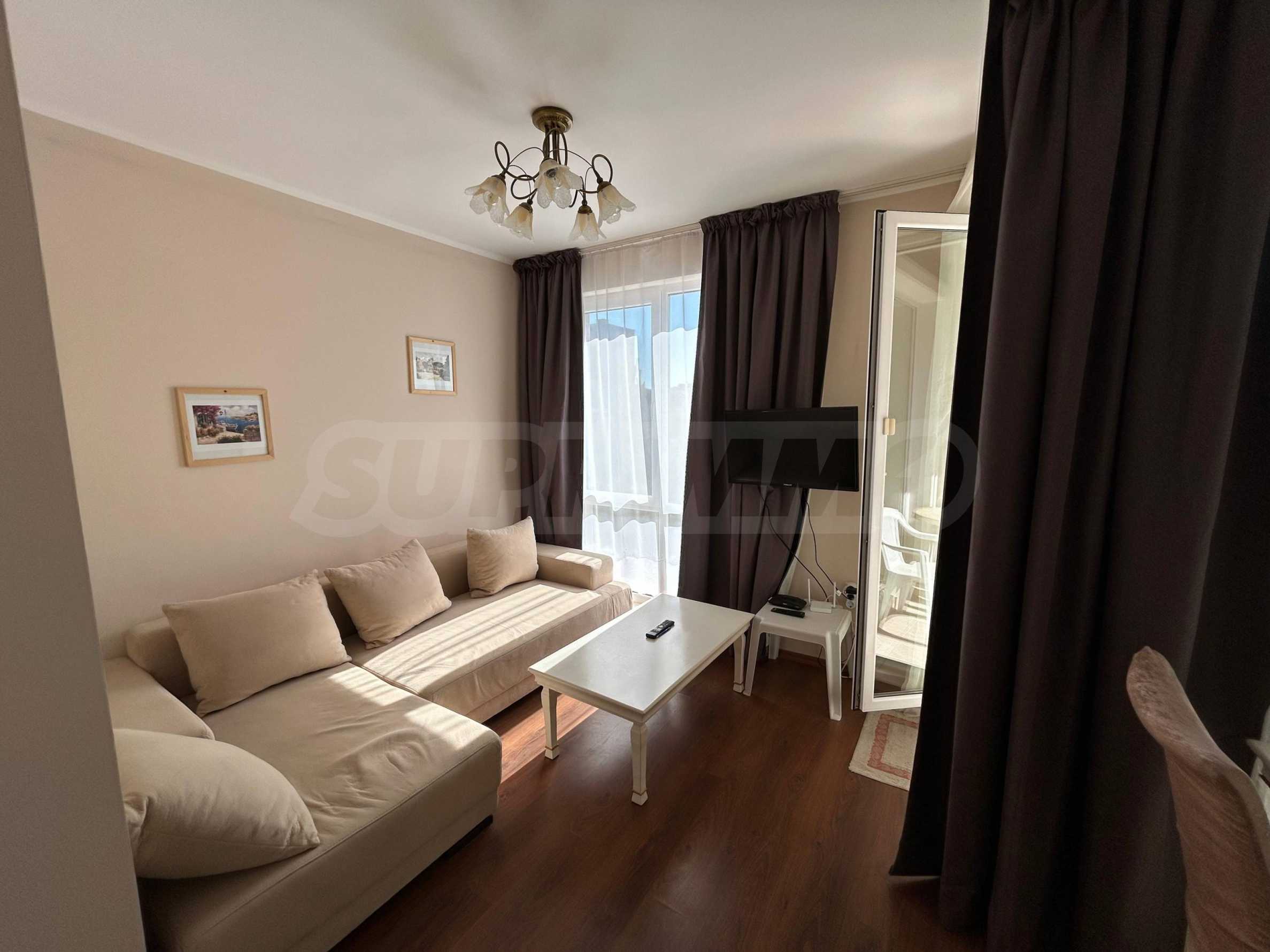 Oferujemy do sprzedaży mieszkanie jednopokojowe na ogrodzonym osiedlu, 200 metrów od aquaparku i 10 minut spacerem od plaży Słonecznego Brzegu.