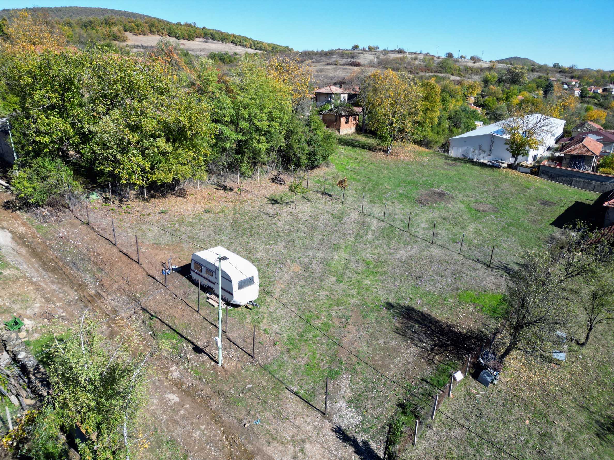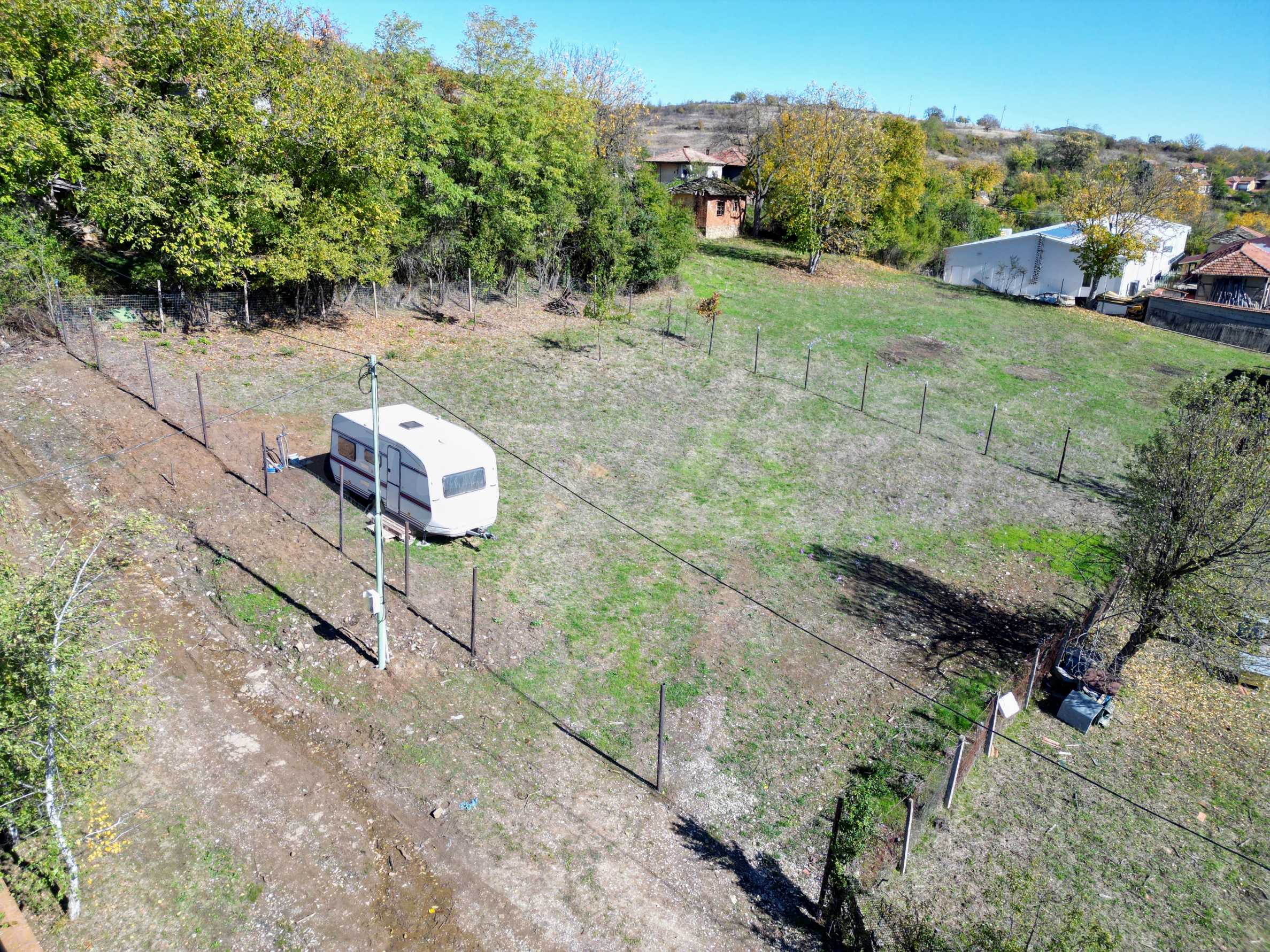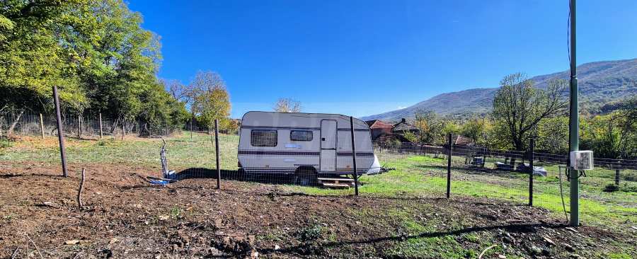 Nieruchomość jest całkowicie ogrodzona, na terenie znajduje się przyczepa kempingowa - odpowiednia do tymczasowego pobytu.