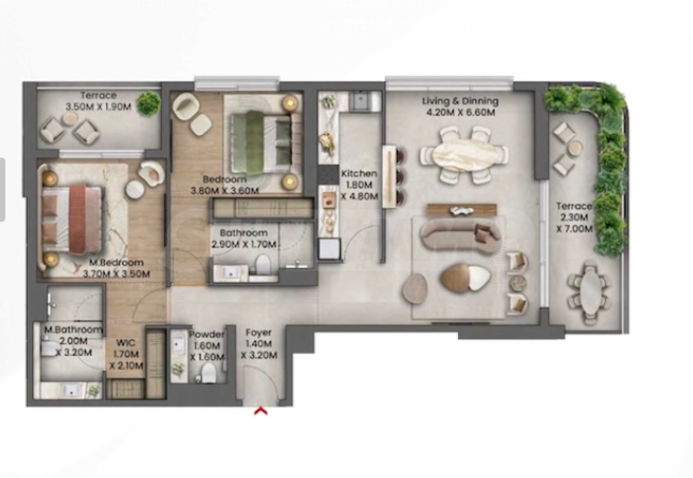 Przedstawiamy przestronny, dwupokojowy apartament w Talea by Beyond – eleganckim budynku mieszkalnym stworzonym jako miejsce do życia, odpoczynku i rozrywki, gdzie każdy element inspirowany jest naturą i jej bogactwem, a tempo życia dyktuje jej płynny i nieustanny rytm. Położony w jednej z najbardziej elitarnych lokalizacji w kosmopolitycznym Dubaju, budynek oferuje zachwycające widoki na morze w połączeniu ze spokojną, rodzinną atmosferą.