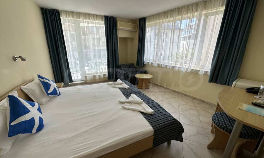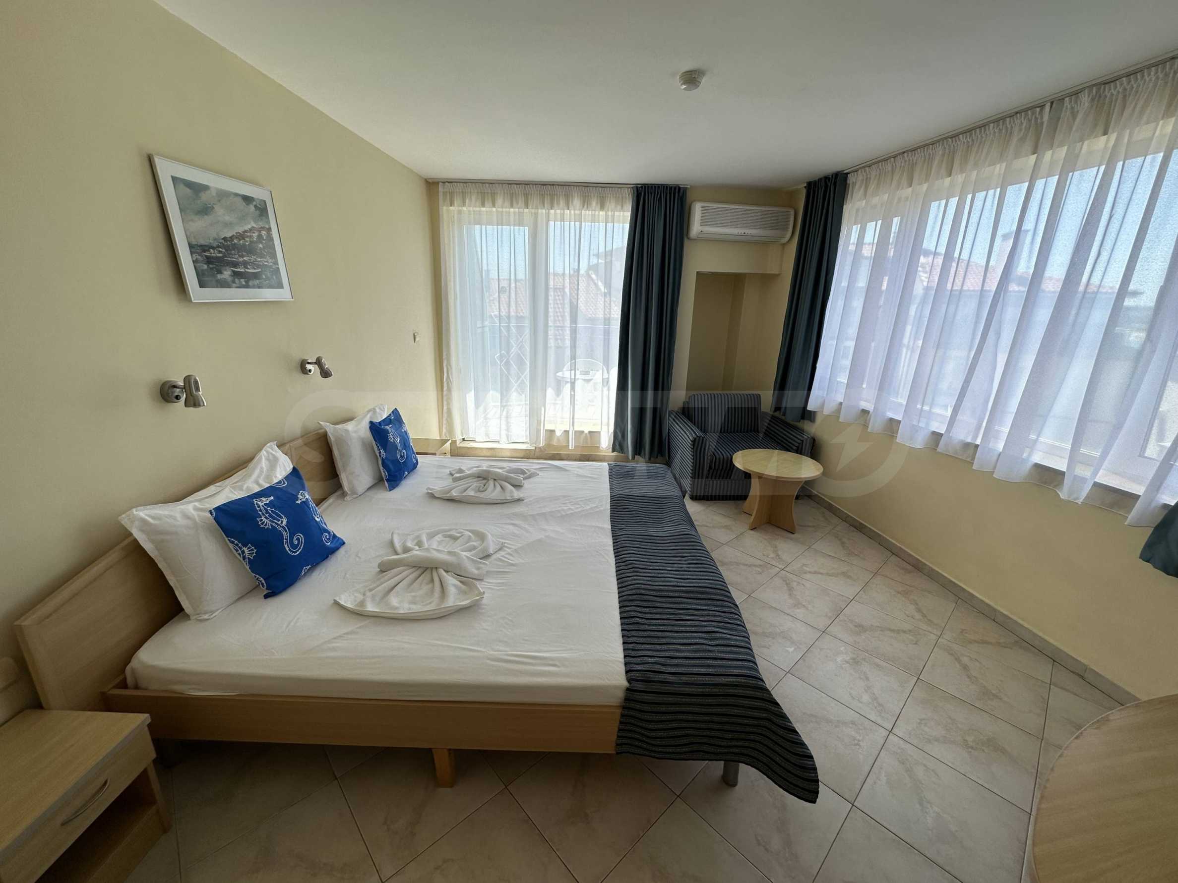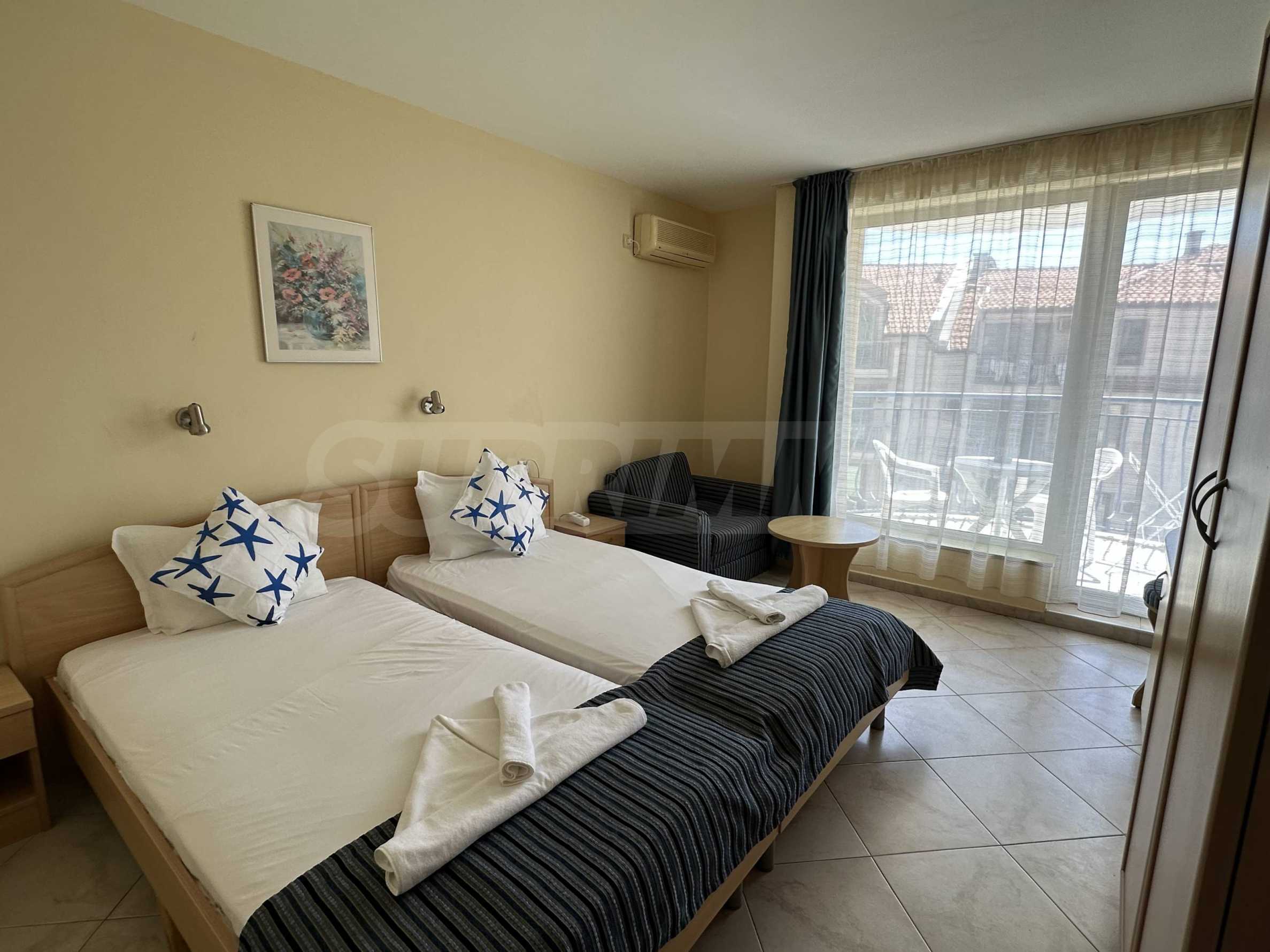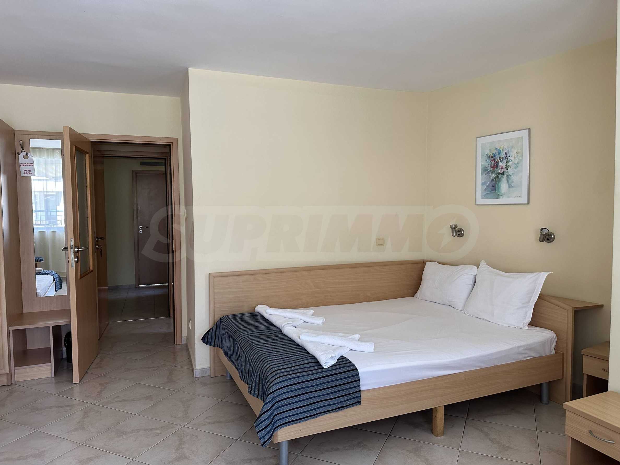 • studio z oddzielną sypialnią, rozkładaną sofą i widokiem na morze;