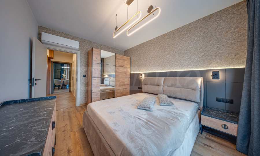 Prezentujemy nowoczesny, przestronny apartament z dwiema sypialniami w elitarnym budynku OKINAWA Boutique Residence, zaprojektowanym przez inwestorów z TASKOV&STOYANOV i zrealizowanym przez lidera w luksusowym budownictwie ELITE BUILDING COMPANY. Apartament znajduje się w jednej z najbardziej strategicznych lokalizacji w dzielnicy Malinova Dolina, w pobliżu supermarketu Fantastico, restauracji, siłowni, uniwersytetów i wielu udogodnień.